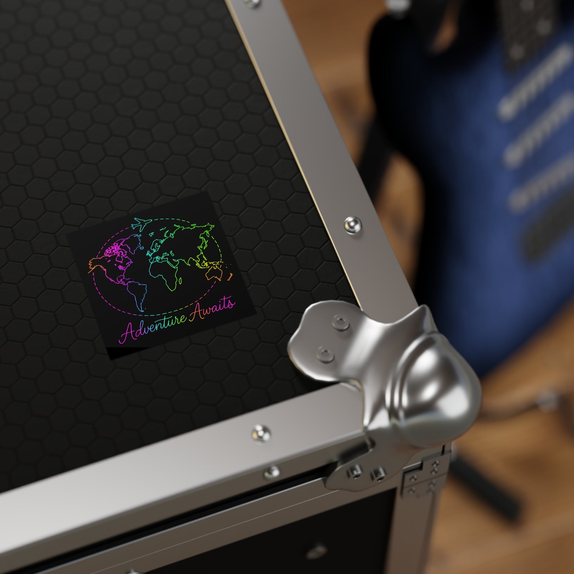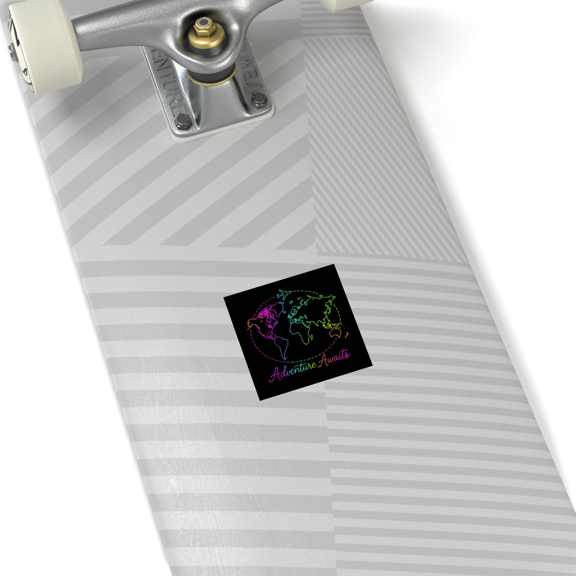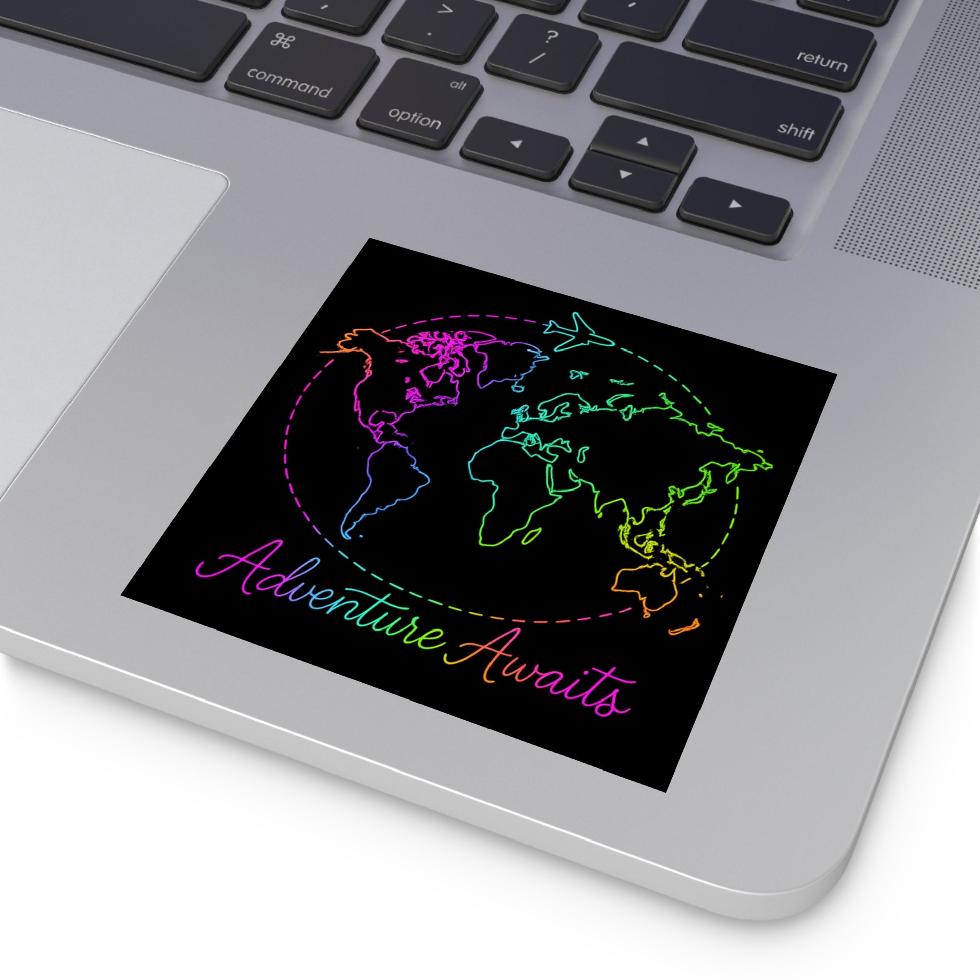 Adventure Awaits Neon Travel Sticker - Y2K Rainbow World Map Vinyl Decal for Luggage, Laptop and Water Bottle - Wanderlust Aesthetic