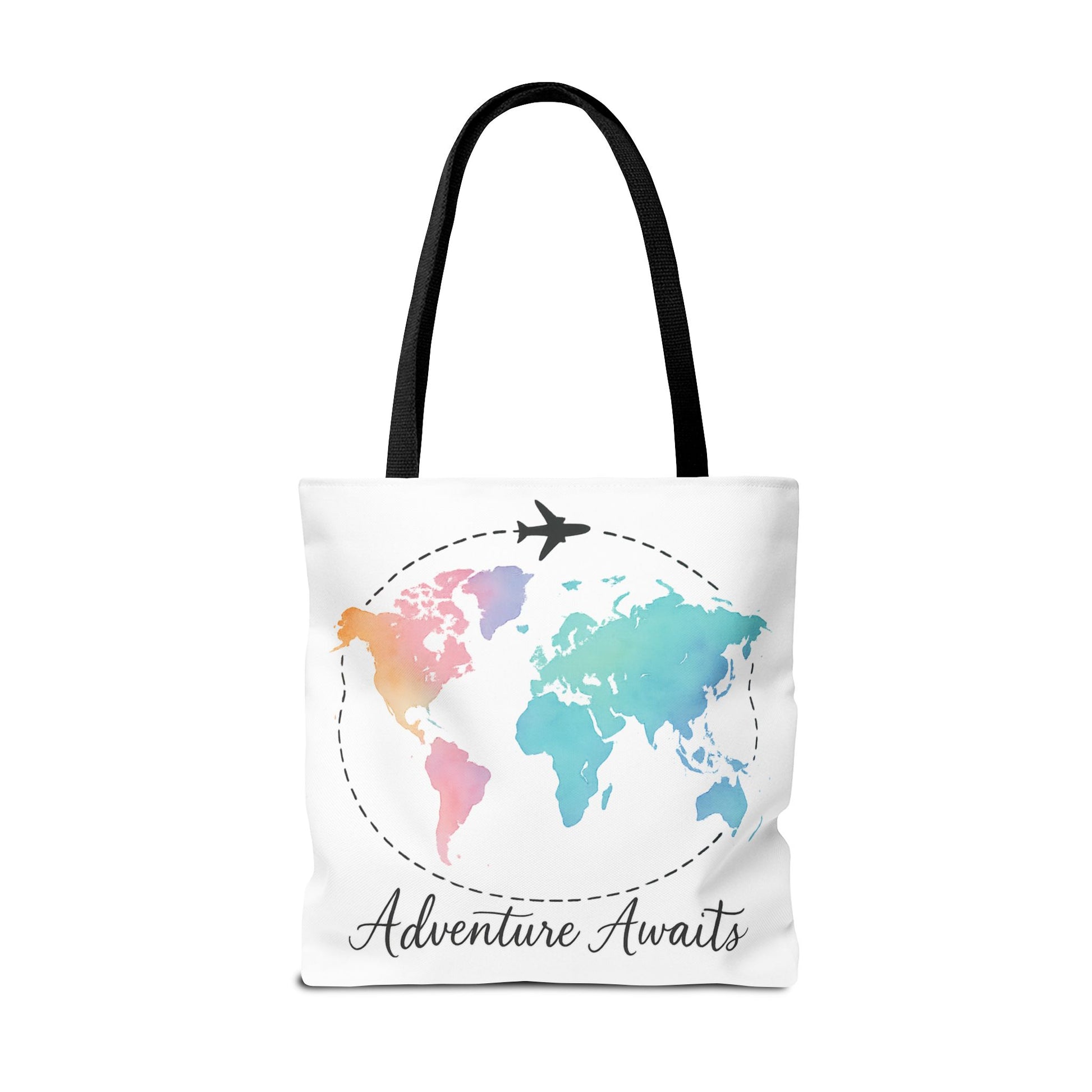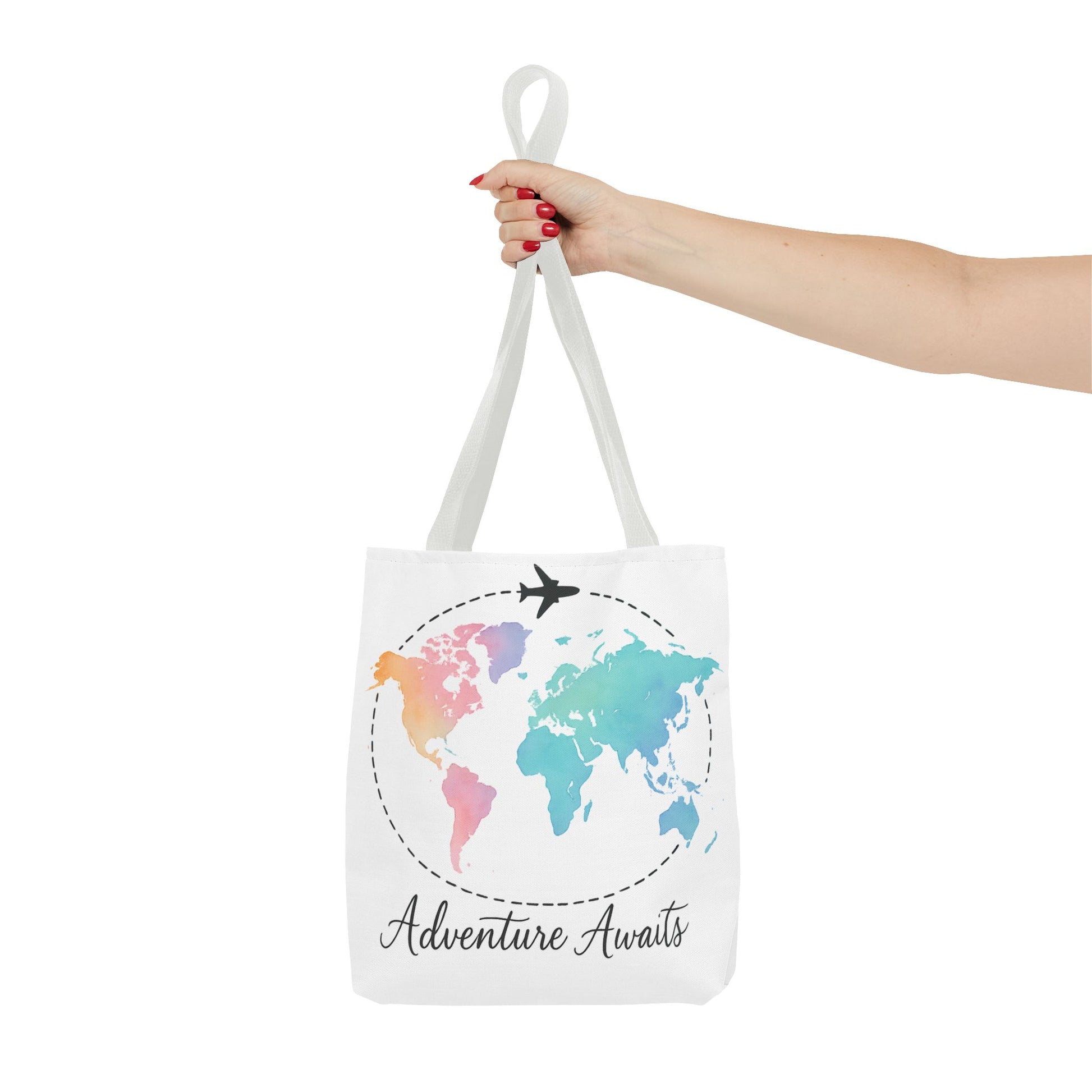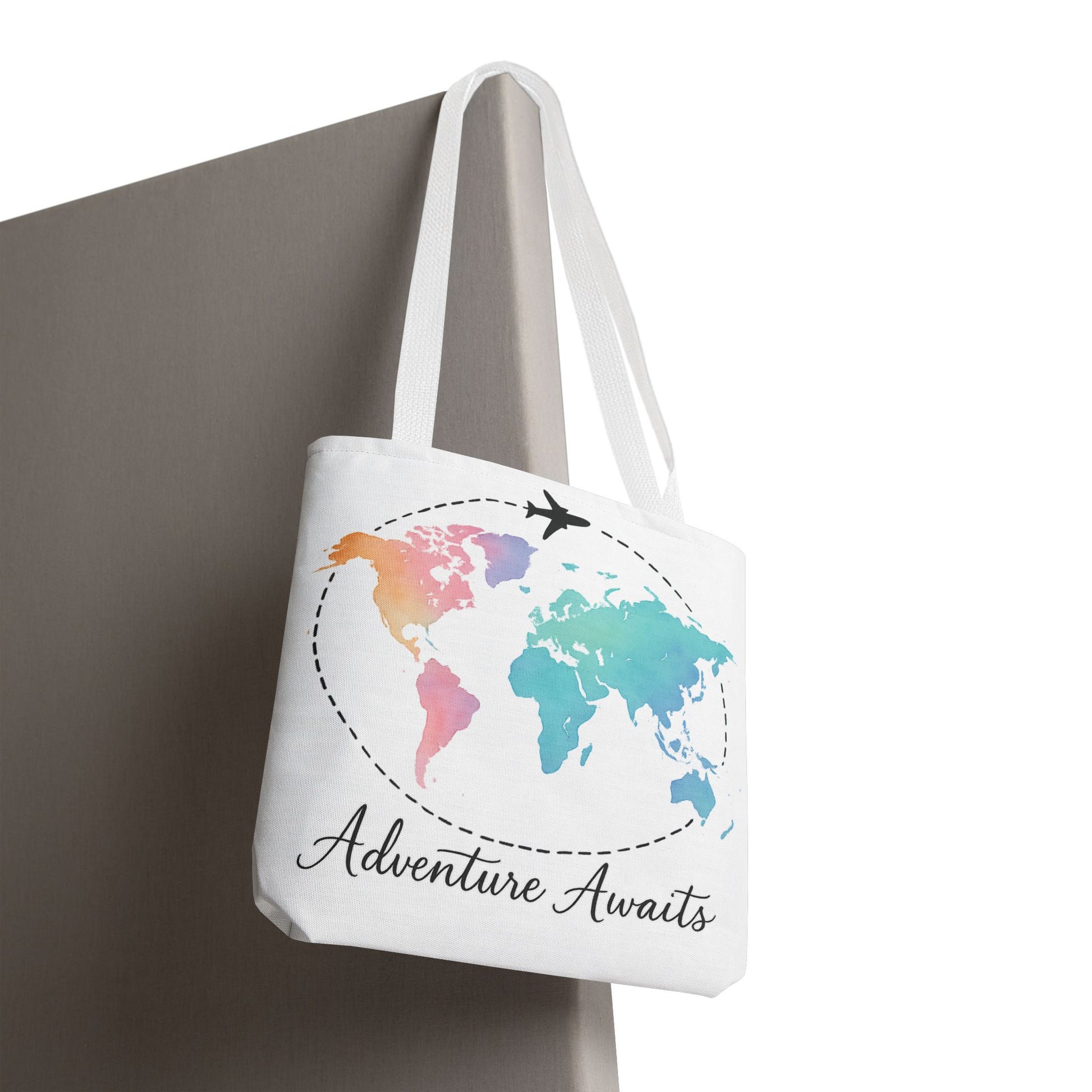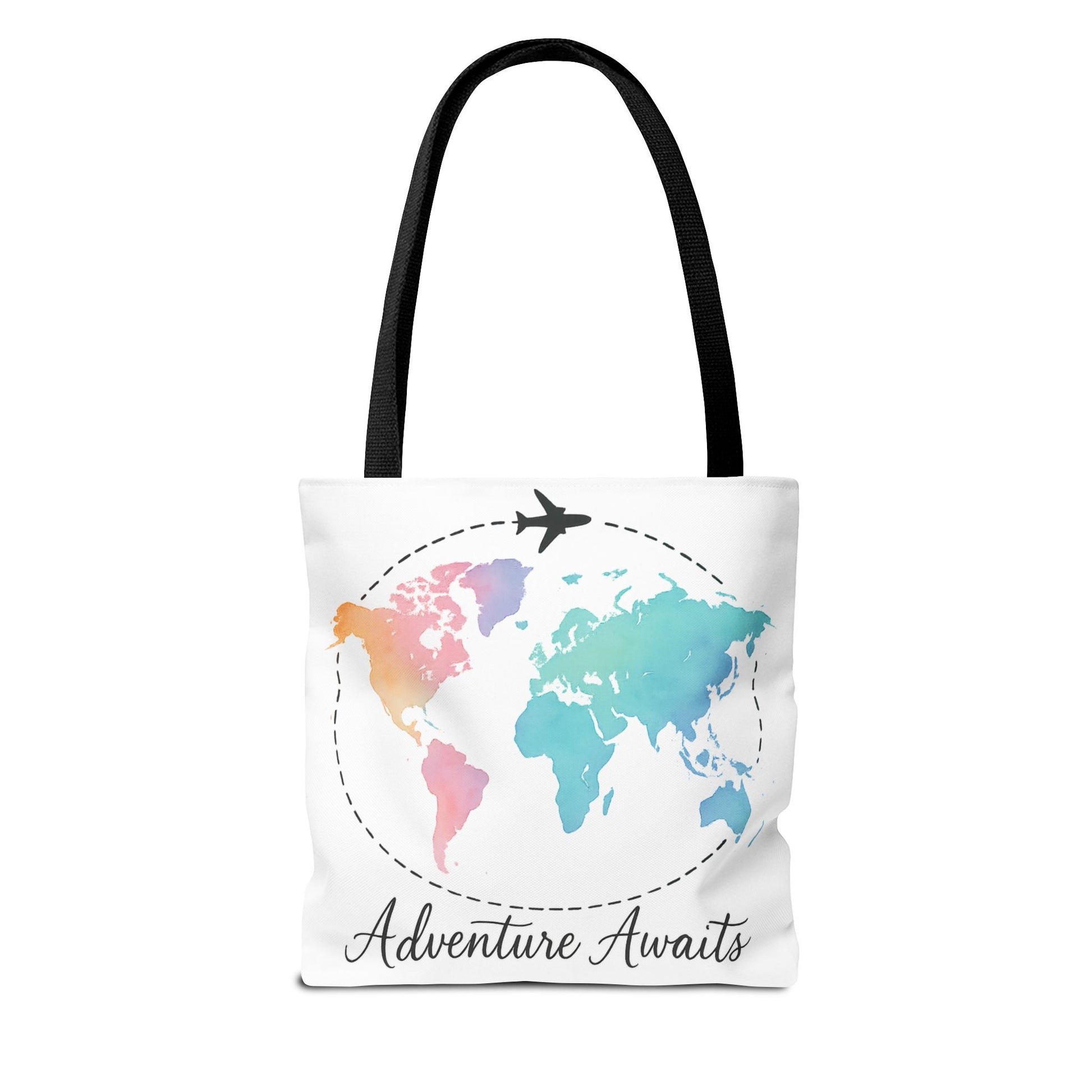 Adventure Awaits Watercolor World Map Tote Bag | Travel Canvas Tote | Wanderlust Gift, Beach, Camping, Airport Carryall, Eco-Friendly