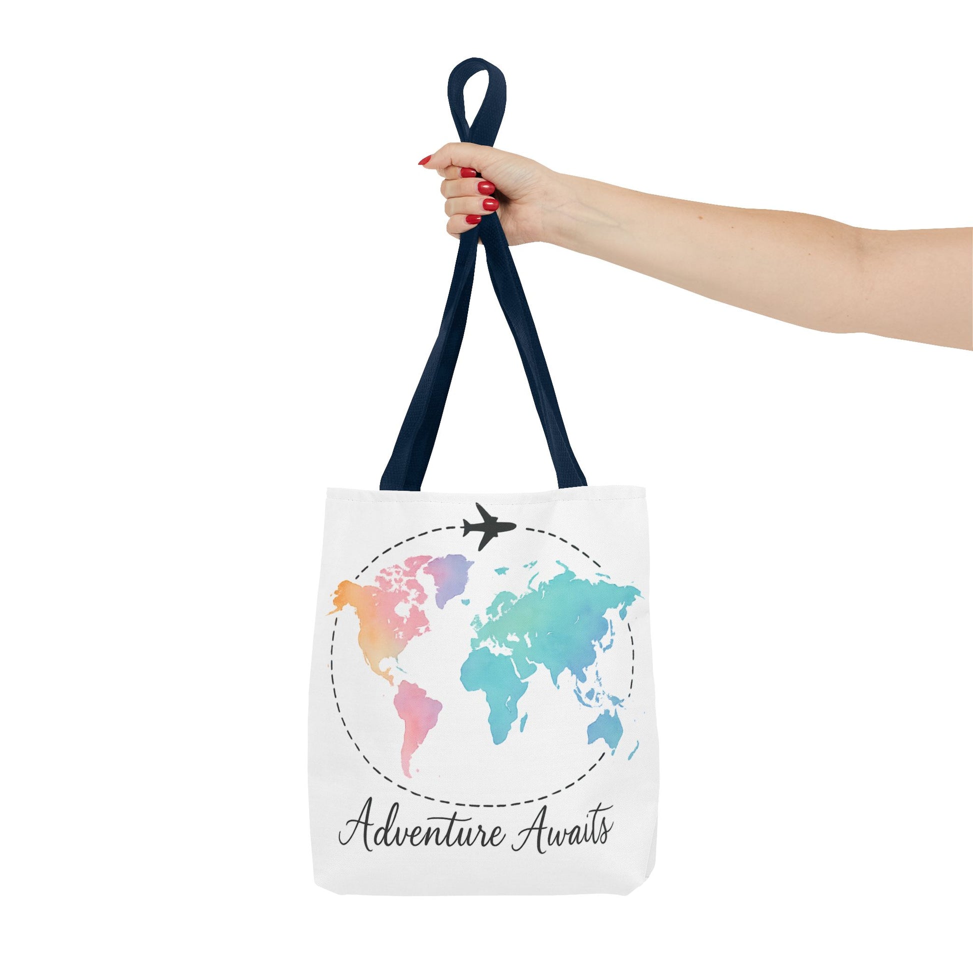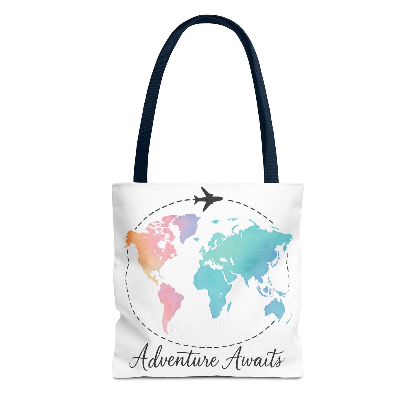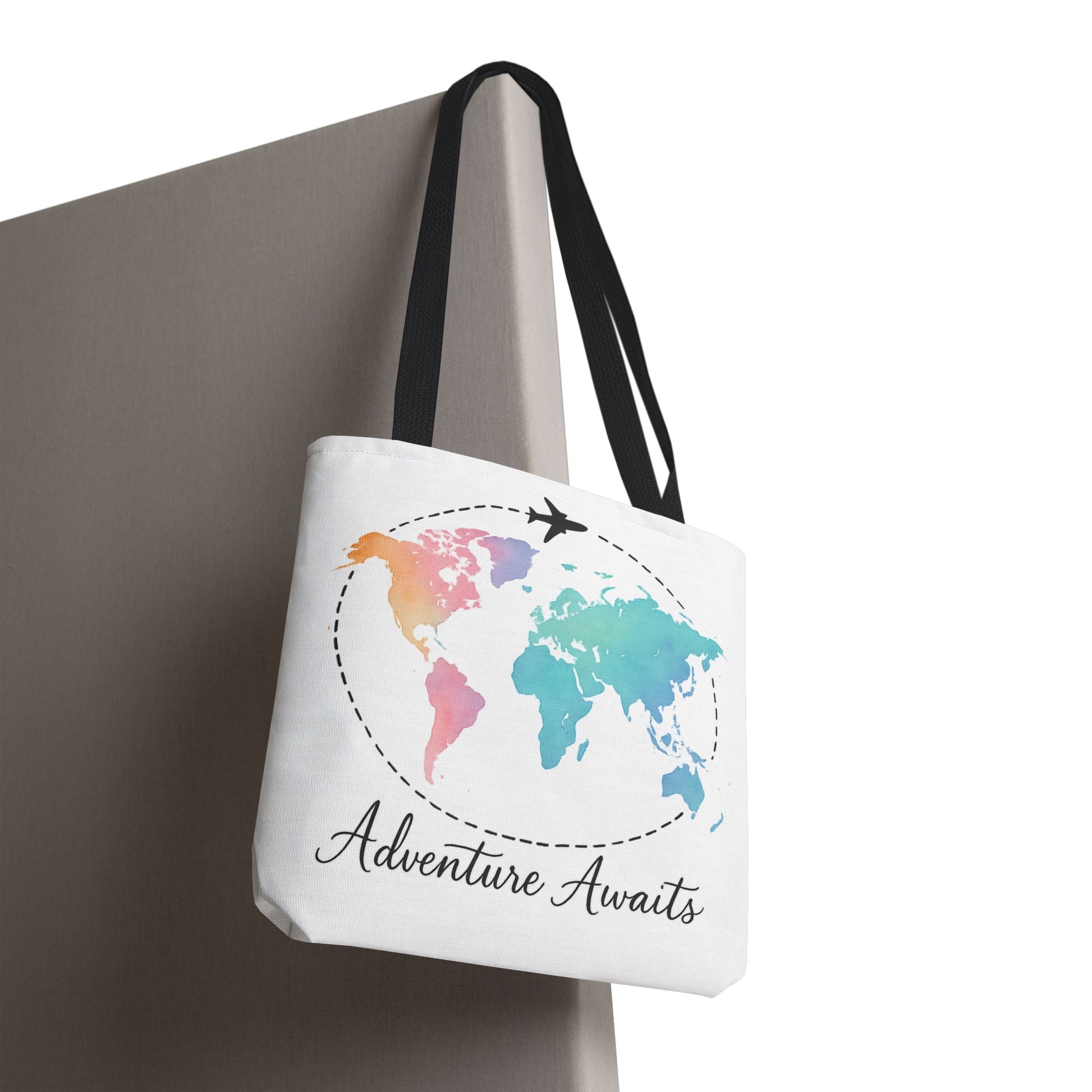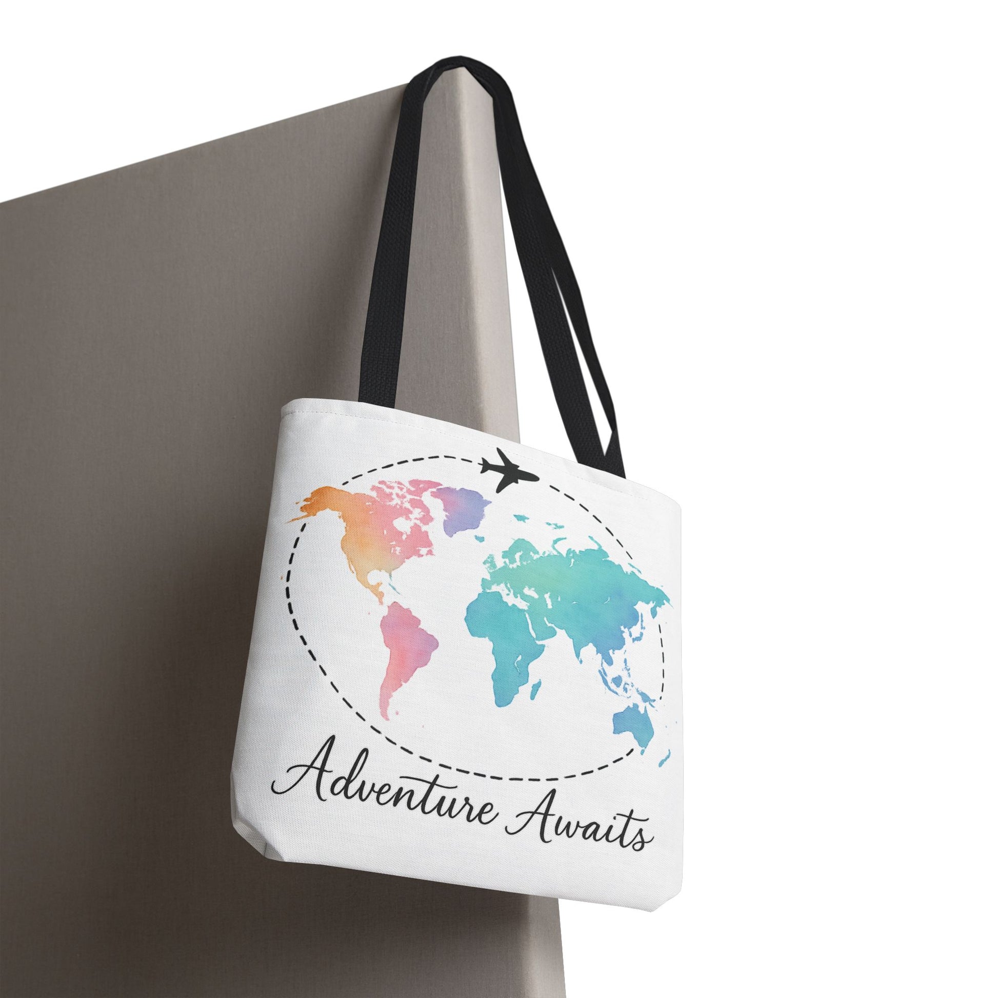 Adventure Awaits Watercolor World Map Tote Bag | Travel Canvas Tote | Wanderlust Gift, Beach, Camping, Airport Carryall, Eco-Friendly