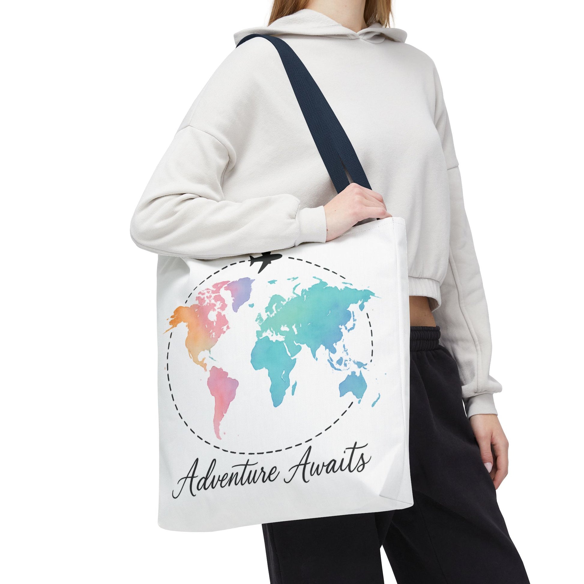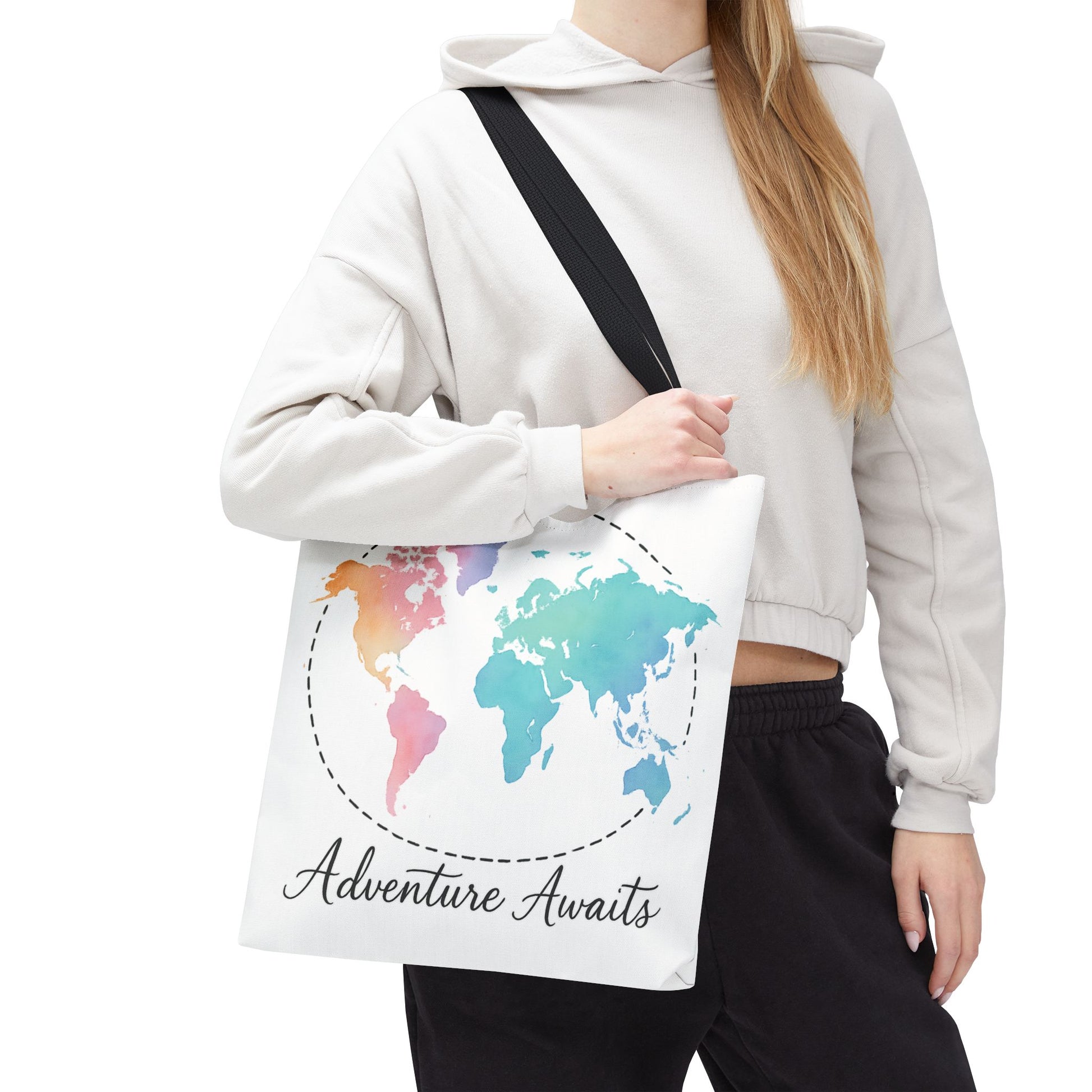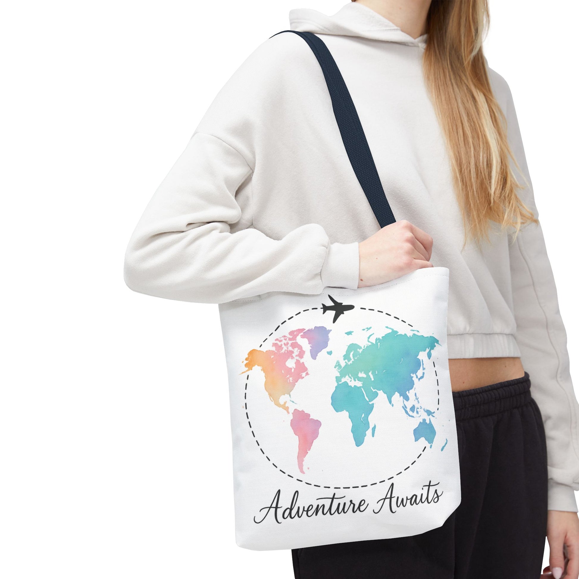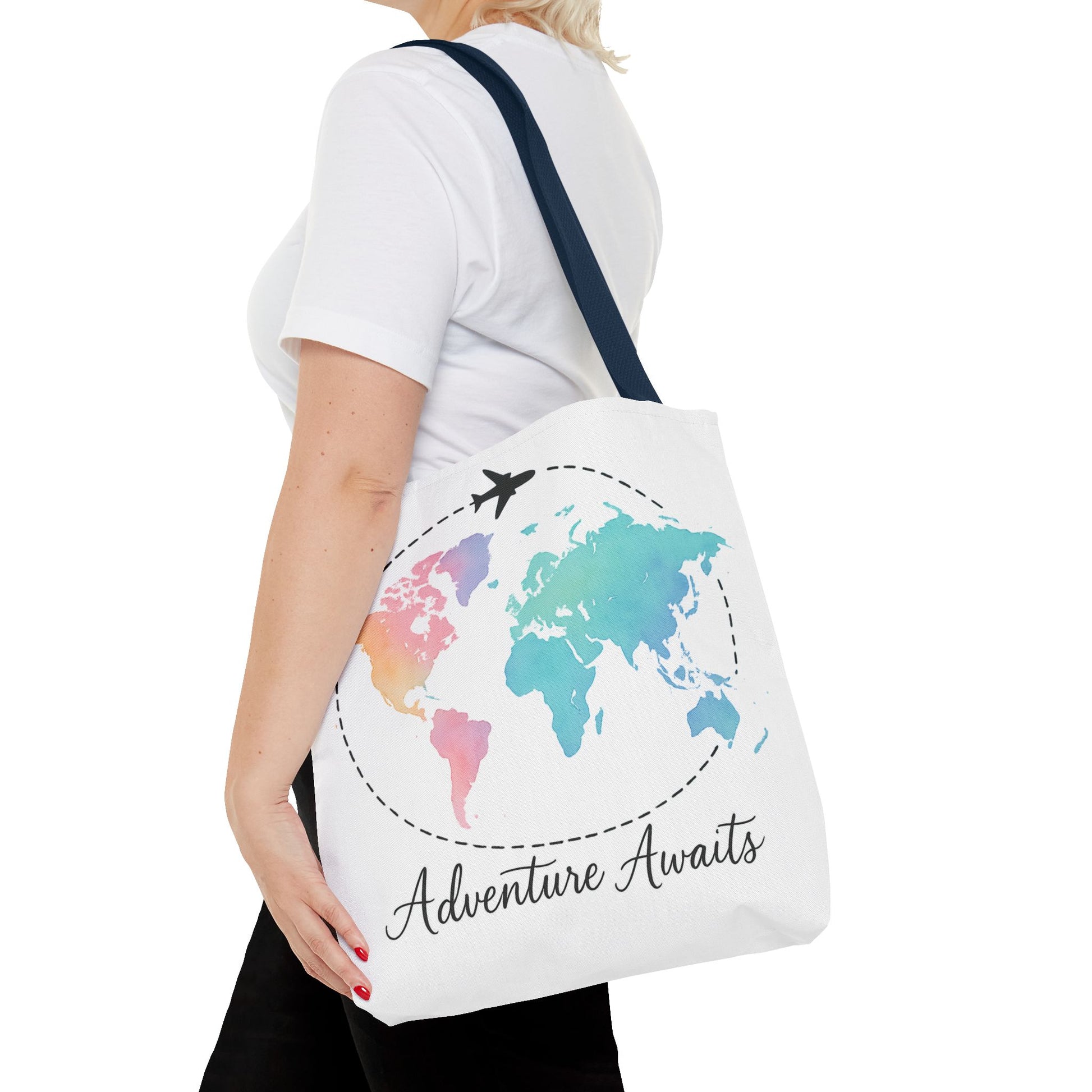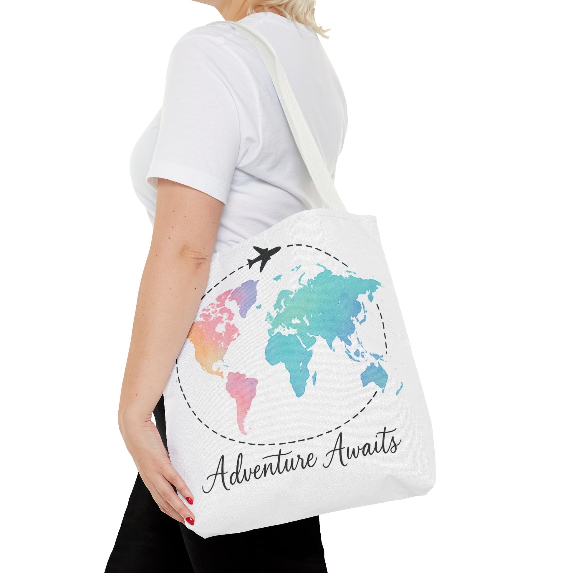Adventure Awaits Watercolor World Map Tote Bag | Travel Canvas Tote | Wanderlust Gift, Beach, Camping, Airport Carryall, Eco-Friendly