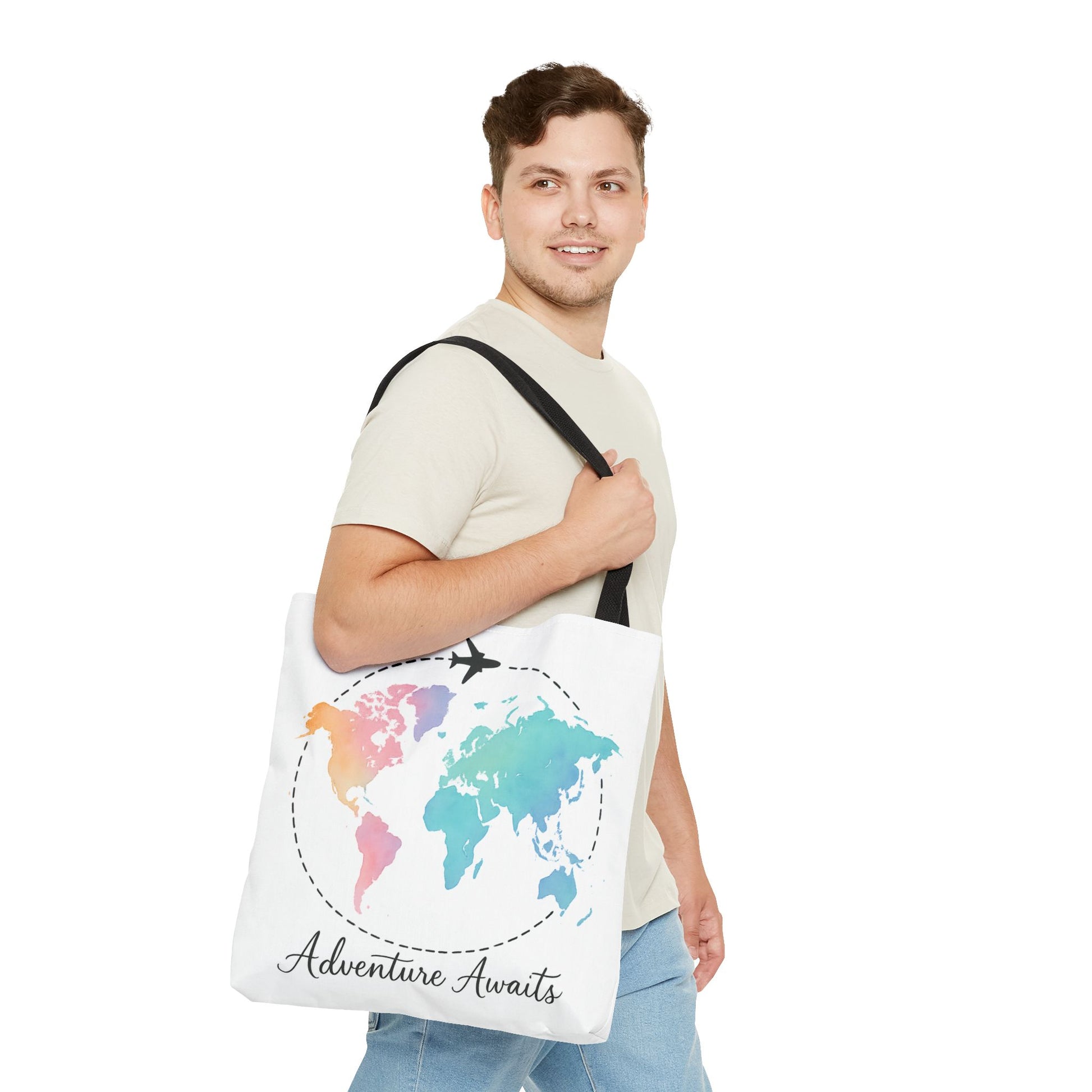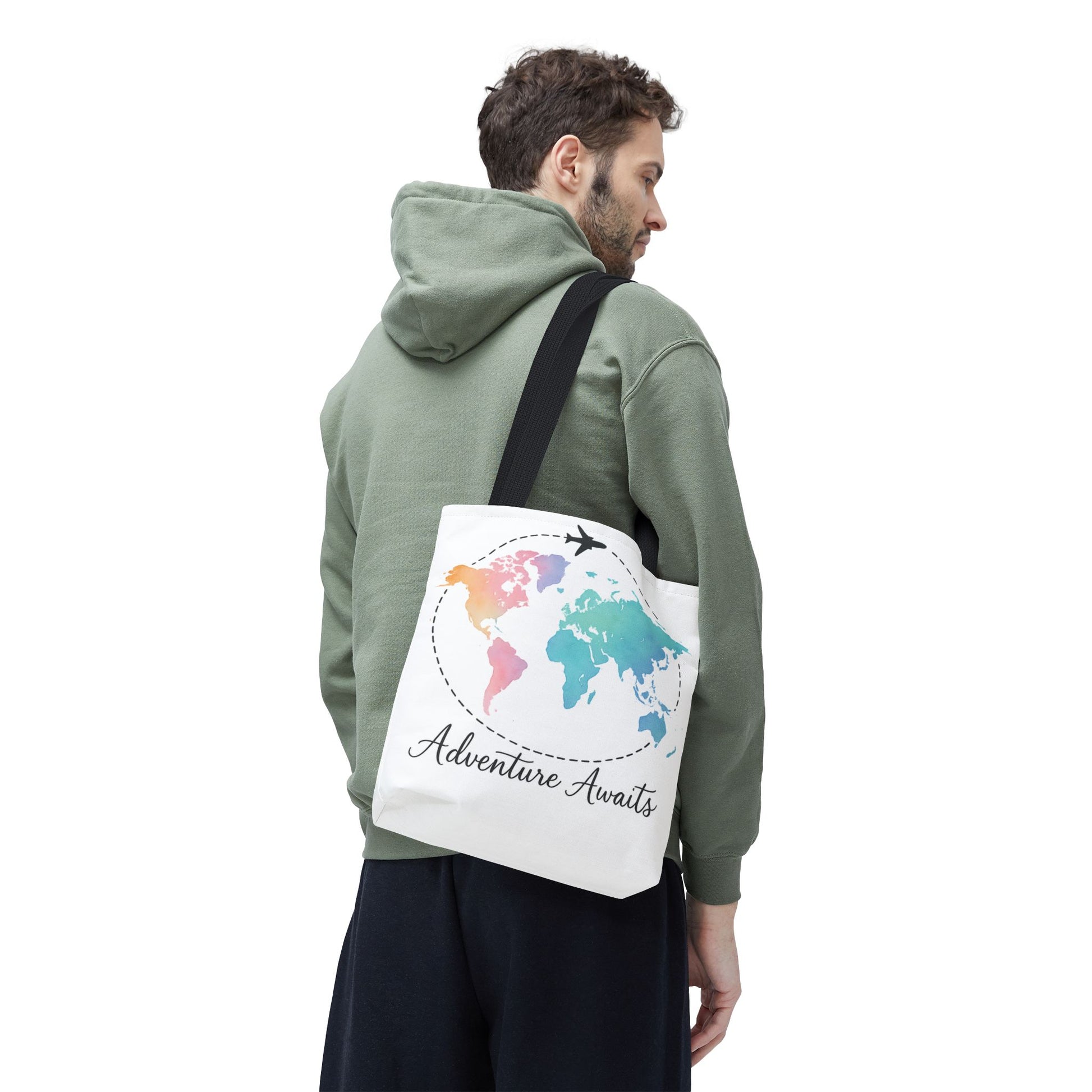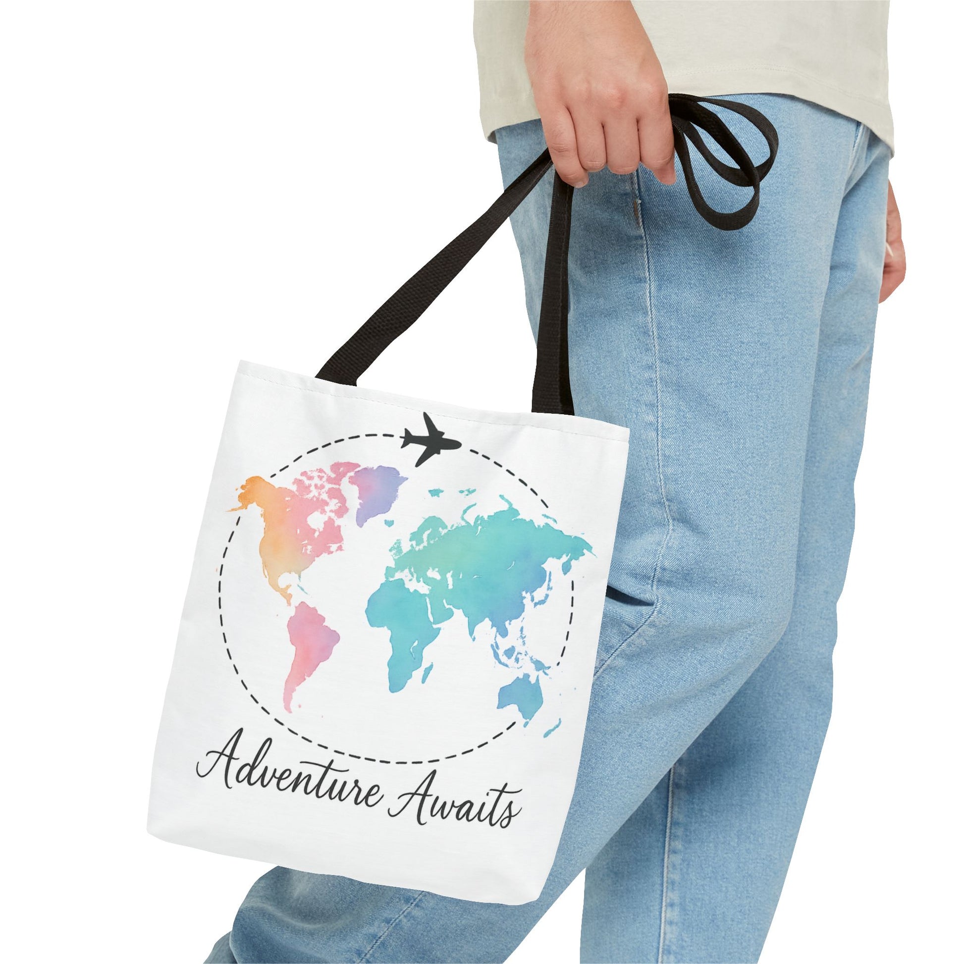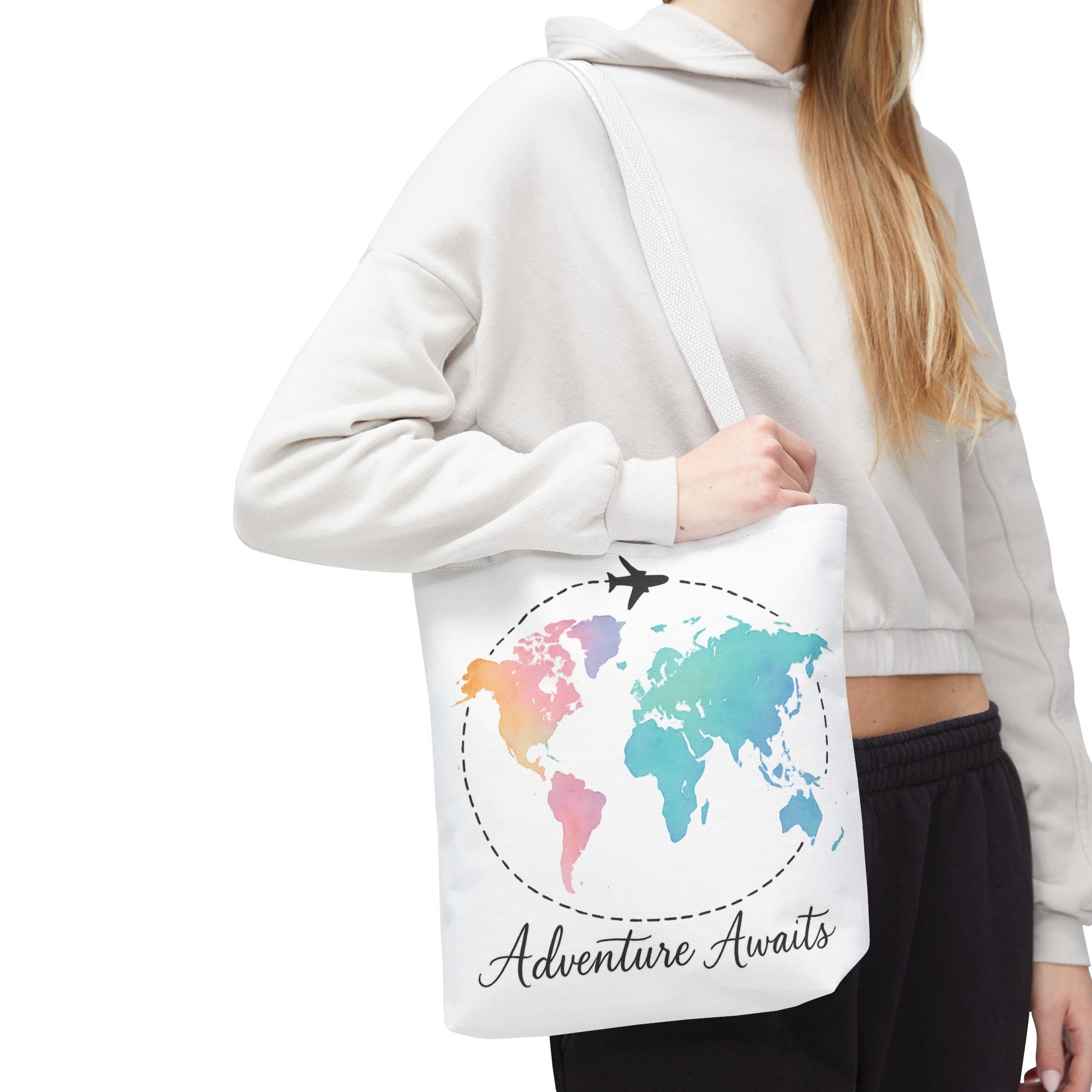 Adventure Awaits Watercolor World Map Tote Bag | Travel Canvas Tote | Wanderlust Gift, Beach, Camping, Airport Carryall, Eco-Friendly