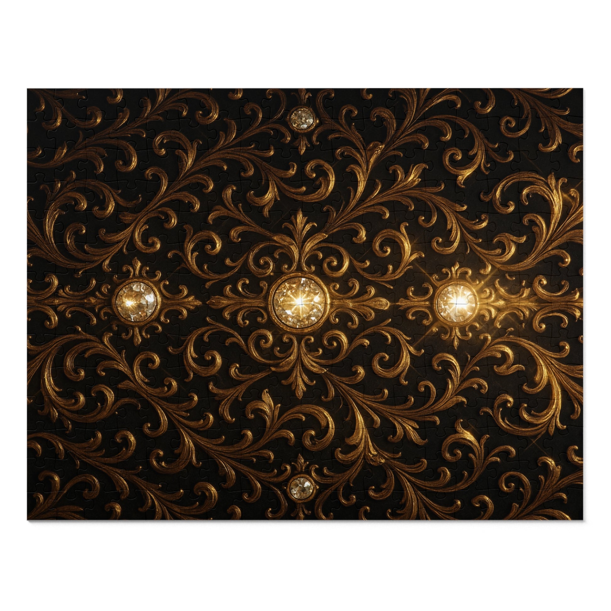 Baroque Gold Jigsaw Puzzle Elegant Gothic Puzzle for Adults, Black Ornate Scroll Pattern, Luxury Brain Game, Dark Aesthetic Gift Idea