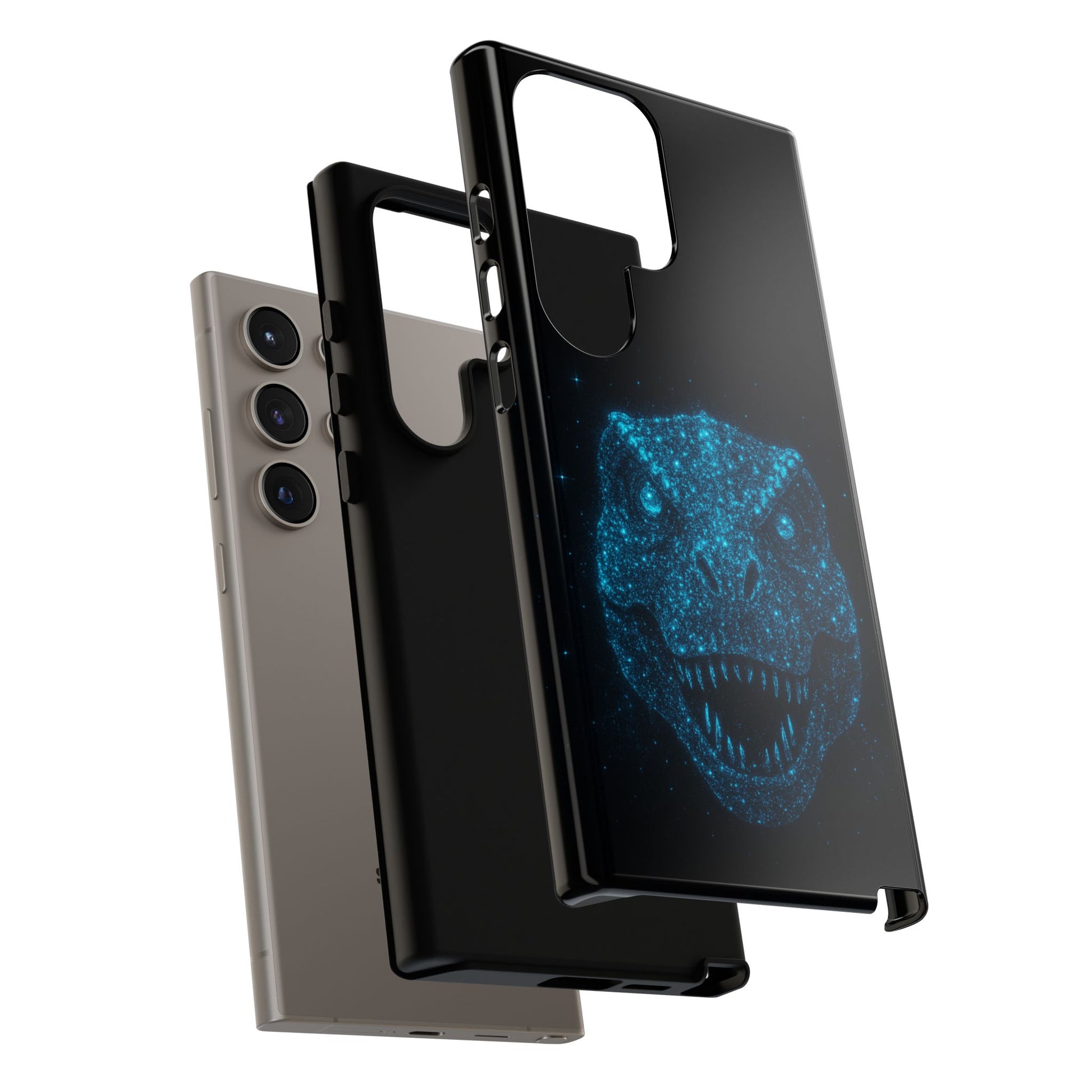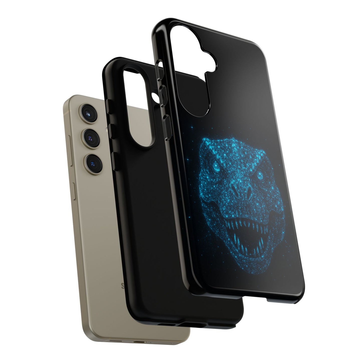 Bioluminescent T-Rex Samsung Case - Galaxy Tough Dual-Layer Cover, Cosmic Dino Particle Design, S25 S24 S23 Gift