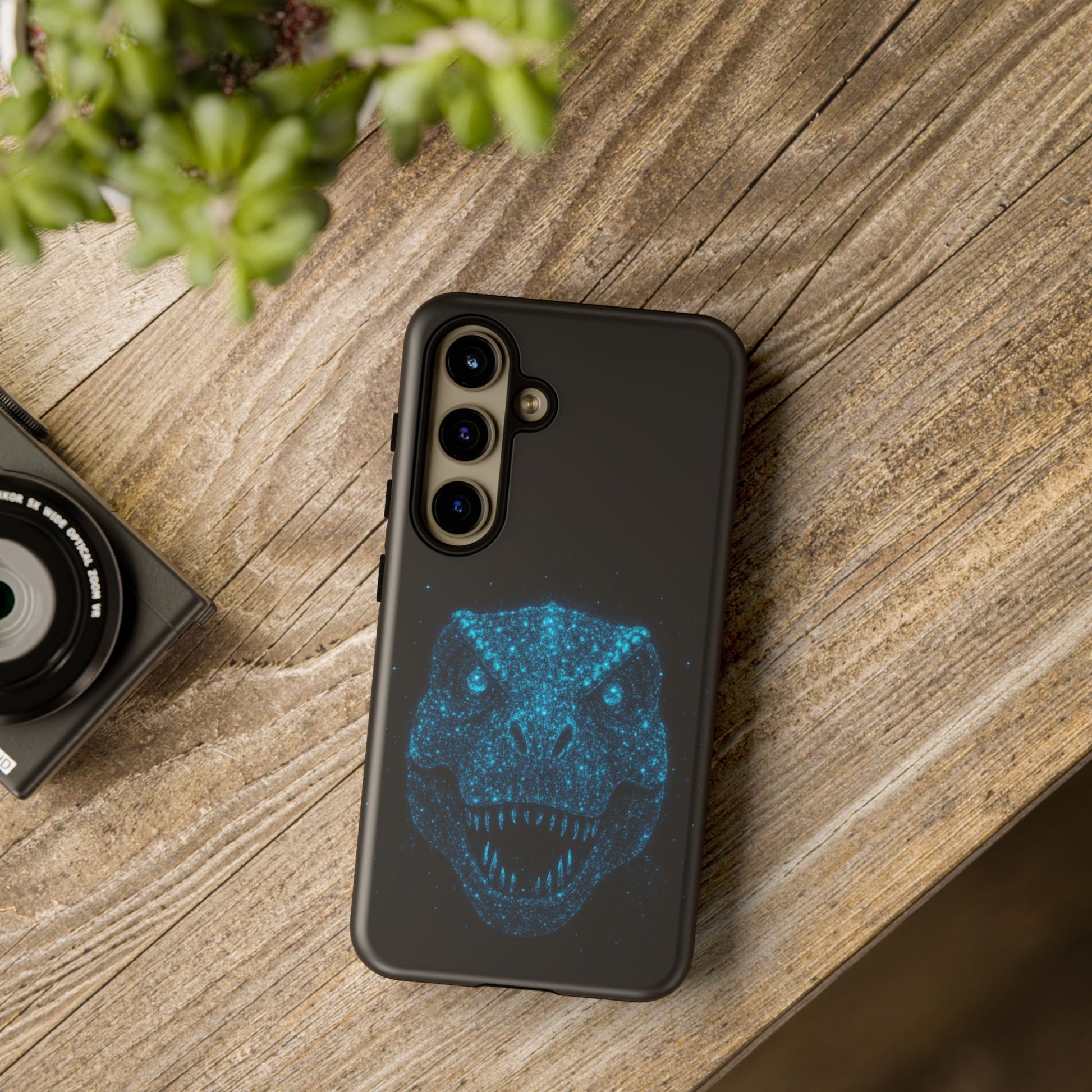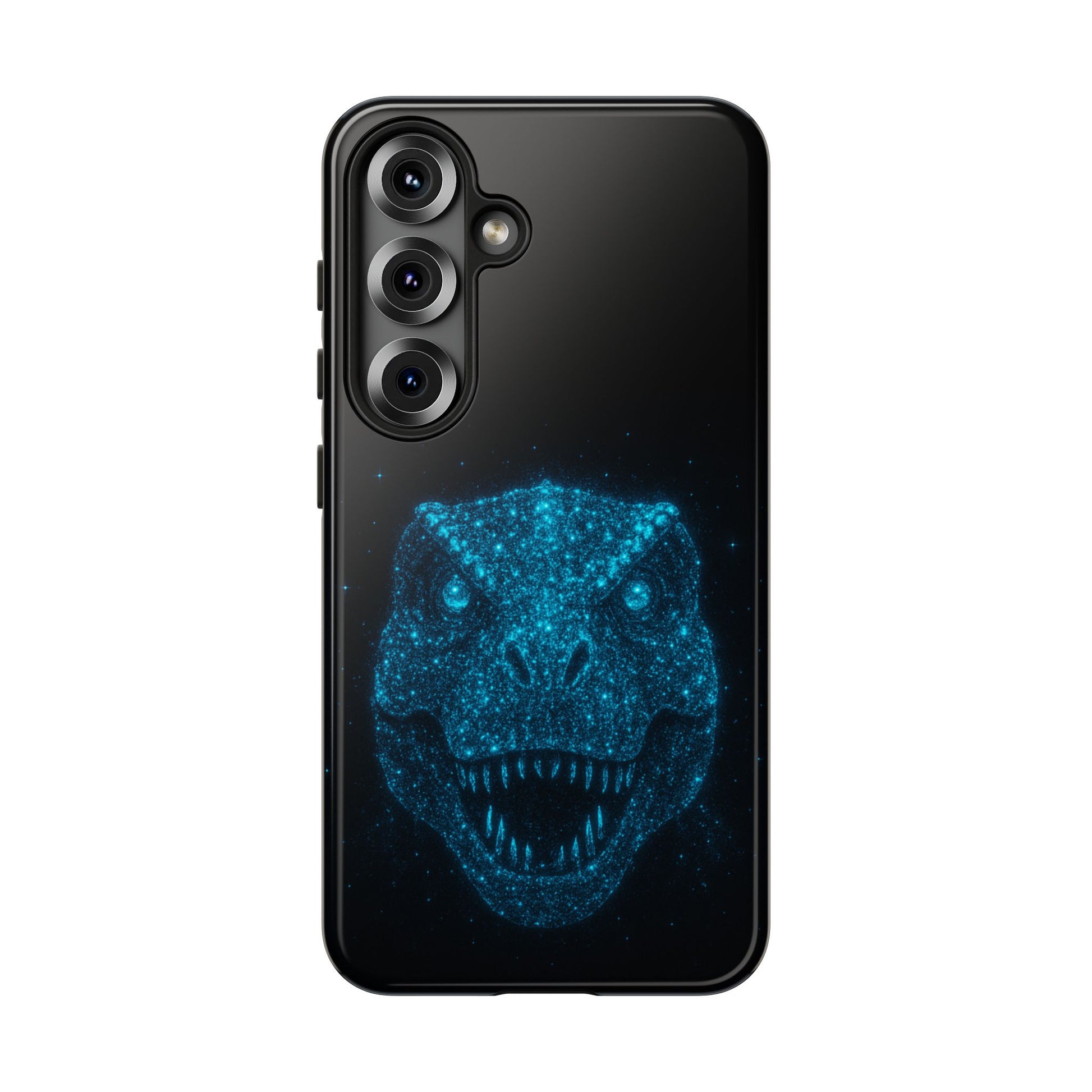 Transform your Samsung Galaxy into a cosmic prehistoric masterpiece with this Bioluminescent T‑Rex Samsung Case. The striking dinosaur head, composed of bioluminescent-style particles, evokes a mesmerizing starry-night aesthetic without actual glow. Ideal for those who crave unique style and robust protection.