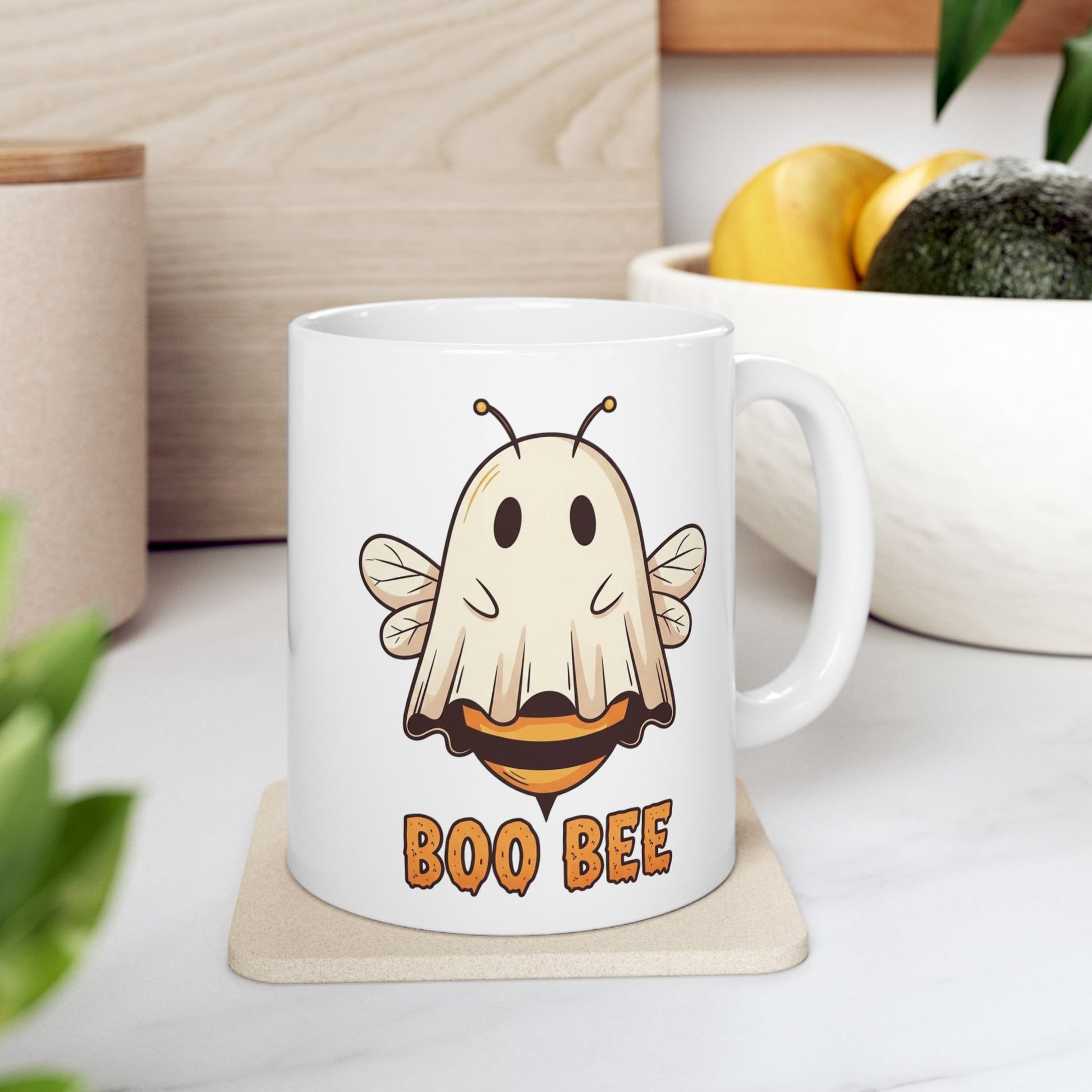 Boo Bee Halloween Mug - Funny Ghost Bee Coffee Cup, Spooky Season Pun Mug, Cute Fall Gift, 11oz and 15oz Ceramic Mug for Bee Lovers