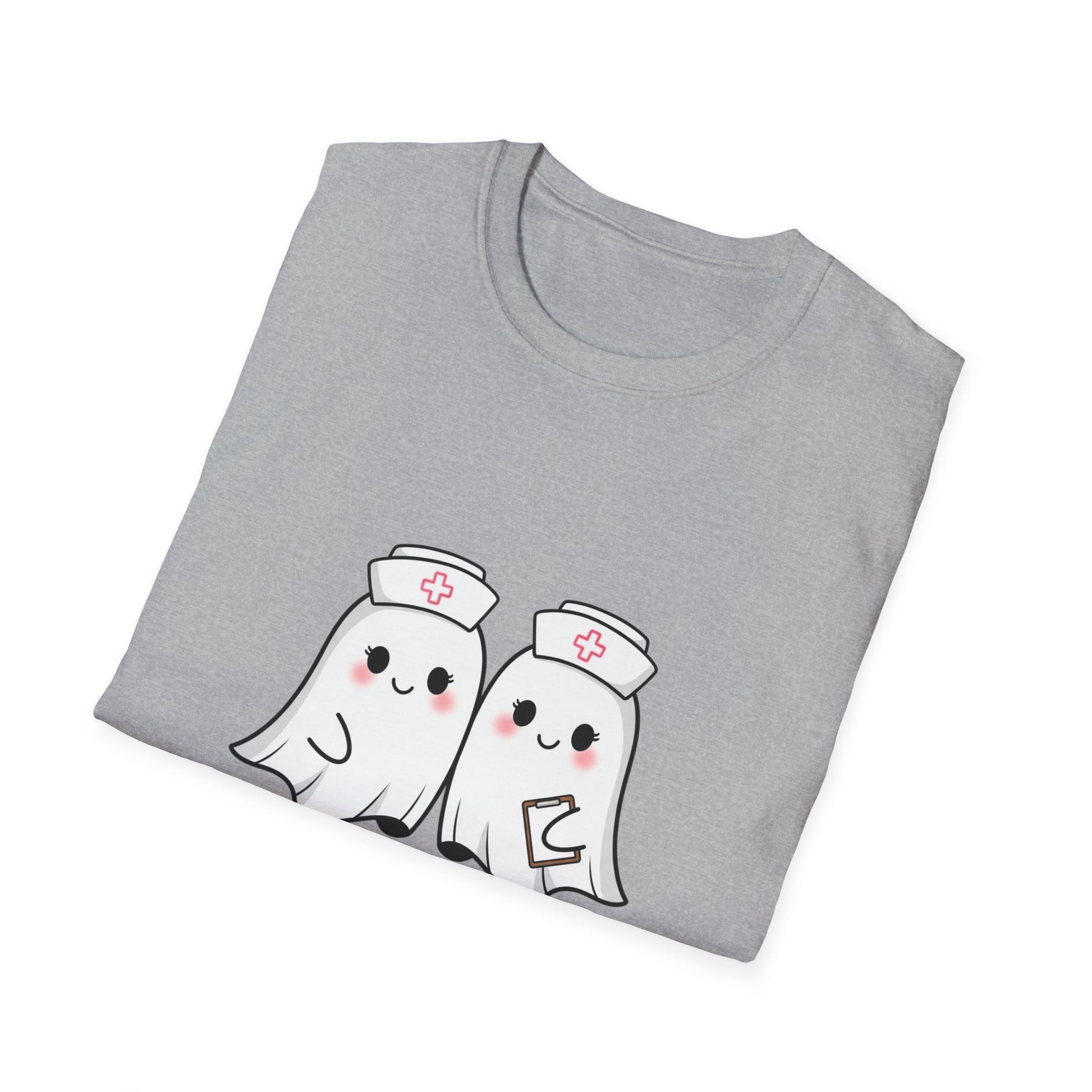 This funny medical ghost shirt features two smiling nurse‑ghosts, complete with nurse caps and bandage clipboard—ideal for nurses, EMTs, medical staff, or anyone who loves a bit of spooky humor. Made from soft, breathable fabric, it’s as cozy during your shift as it is on your day off.