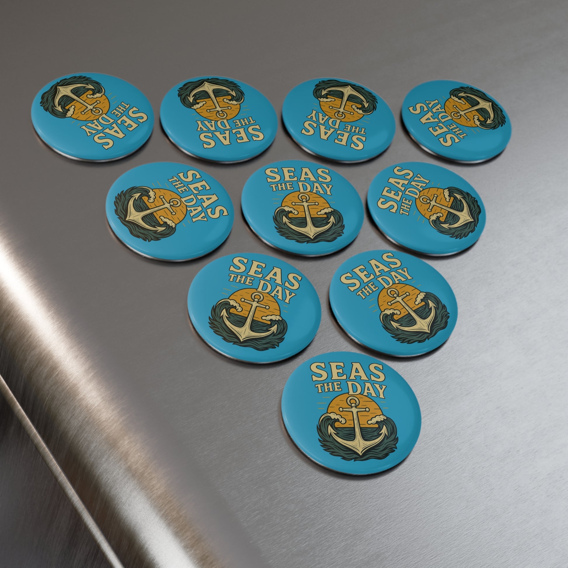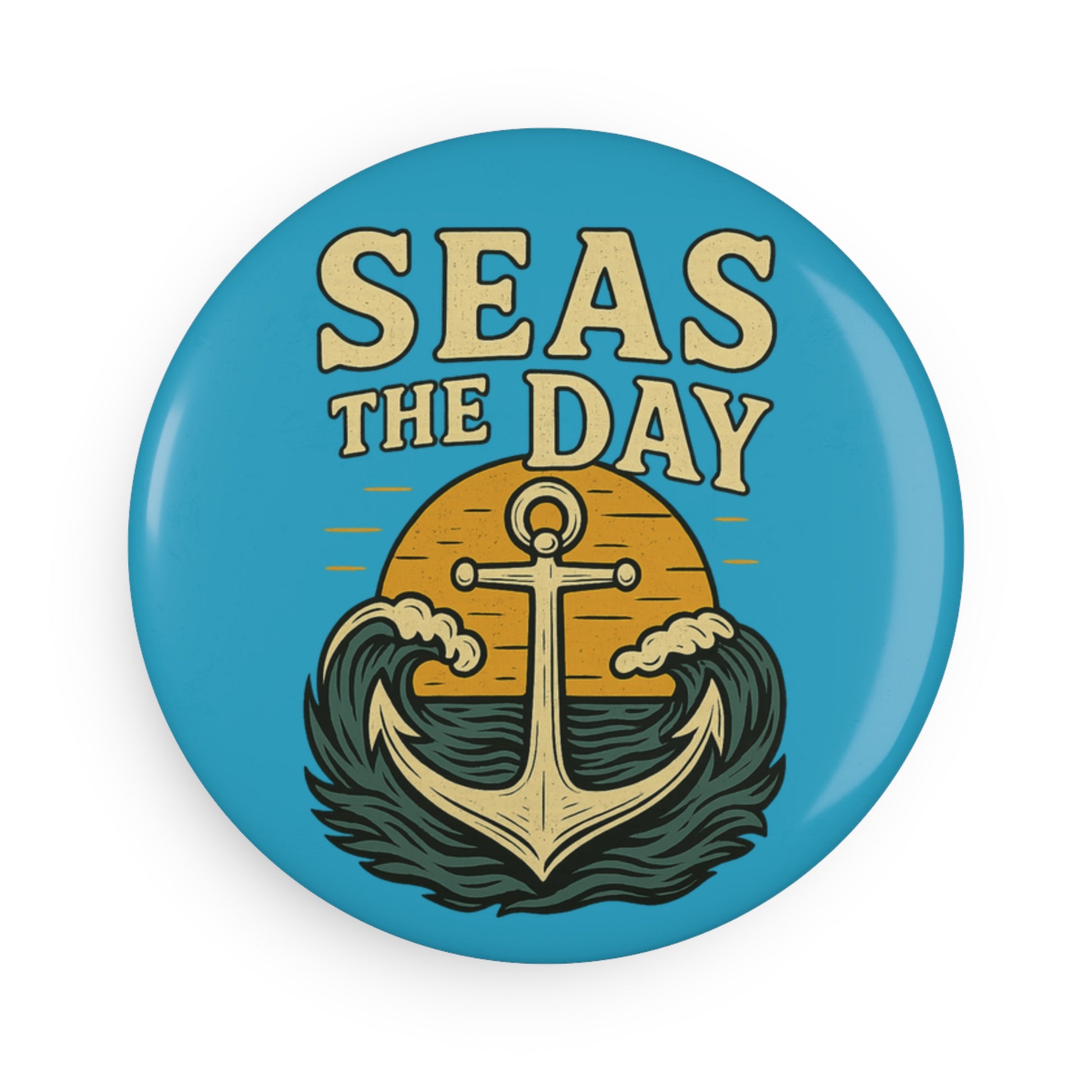 Button Magnet - Seas the Day Anchor Sunset Round Magnet Nautical Decor Inspirational Decoration for Positive Vibes