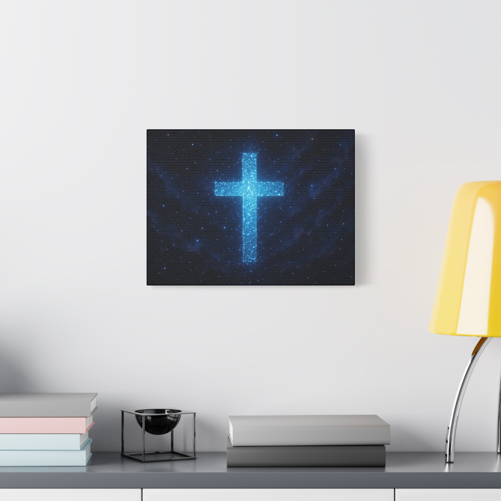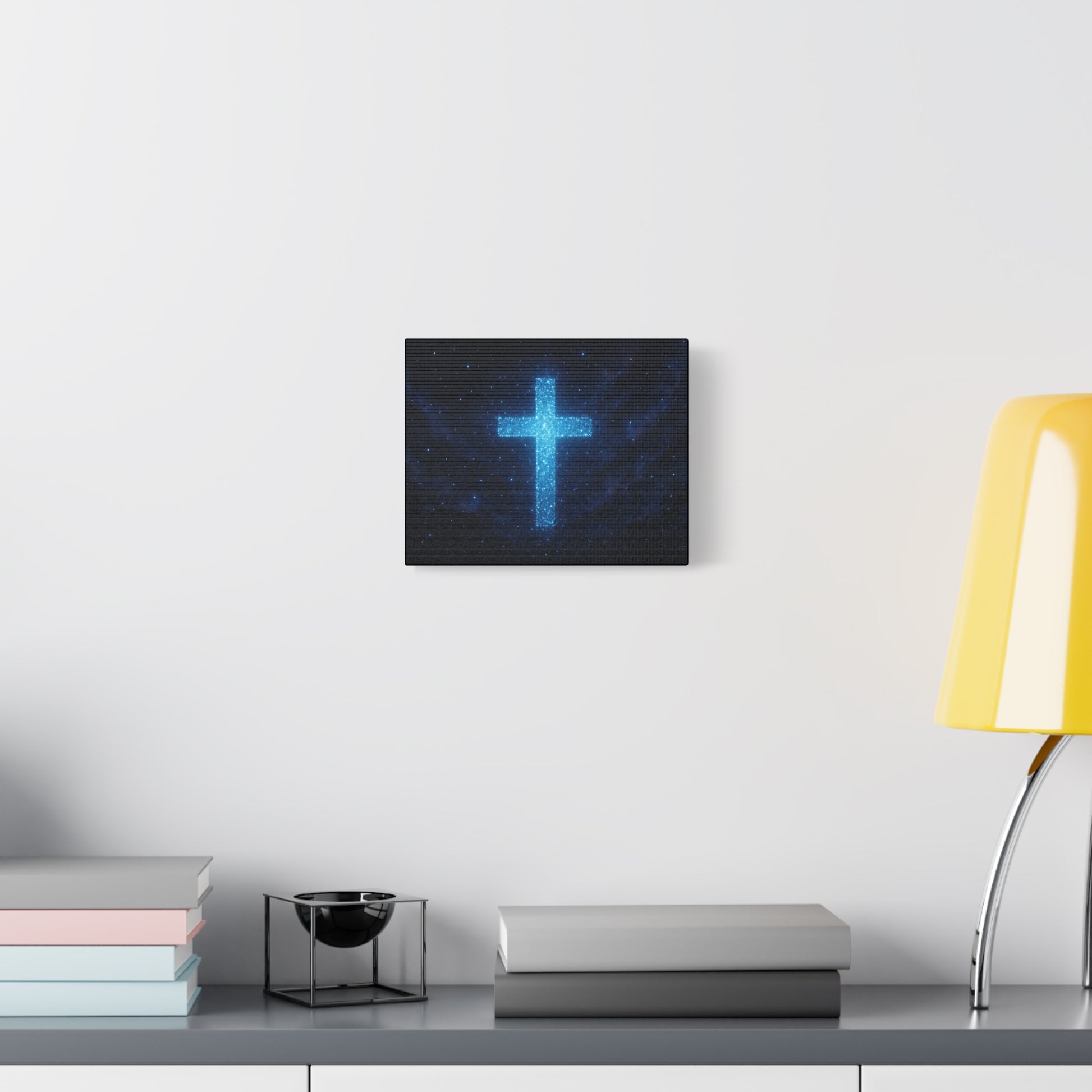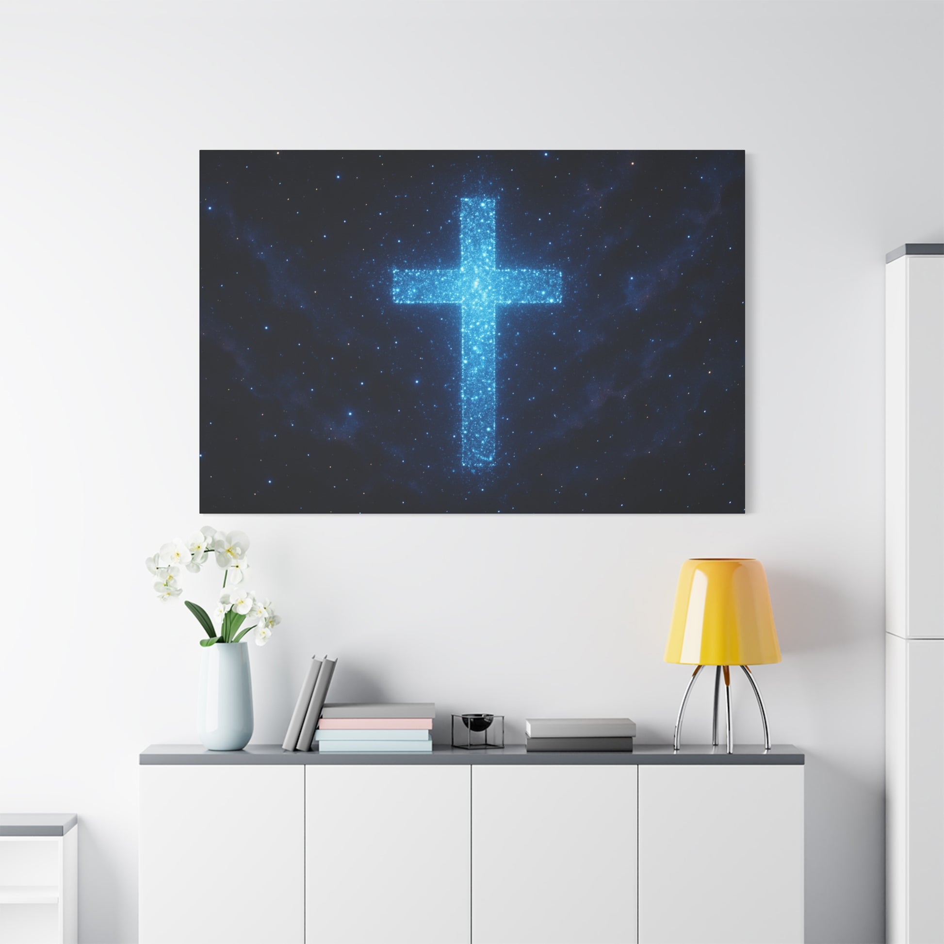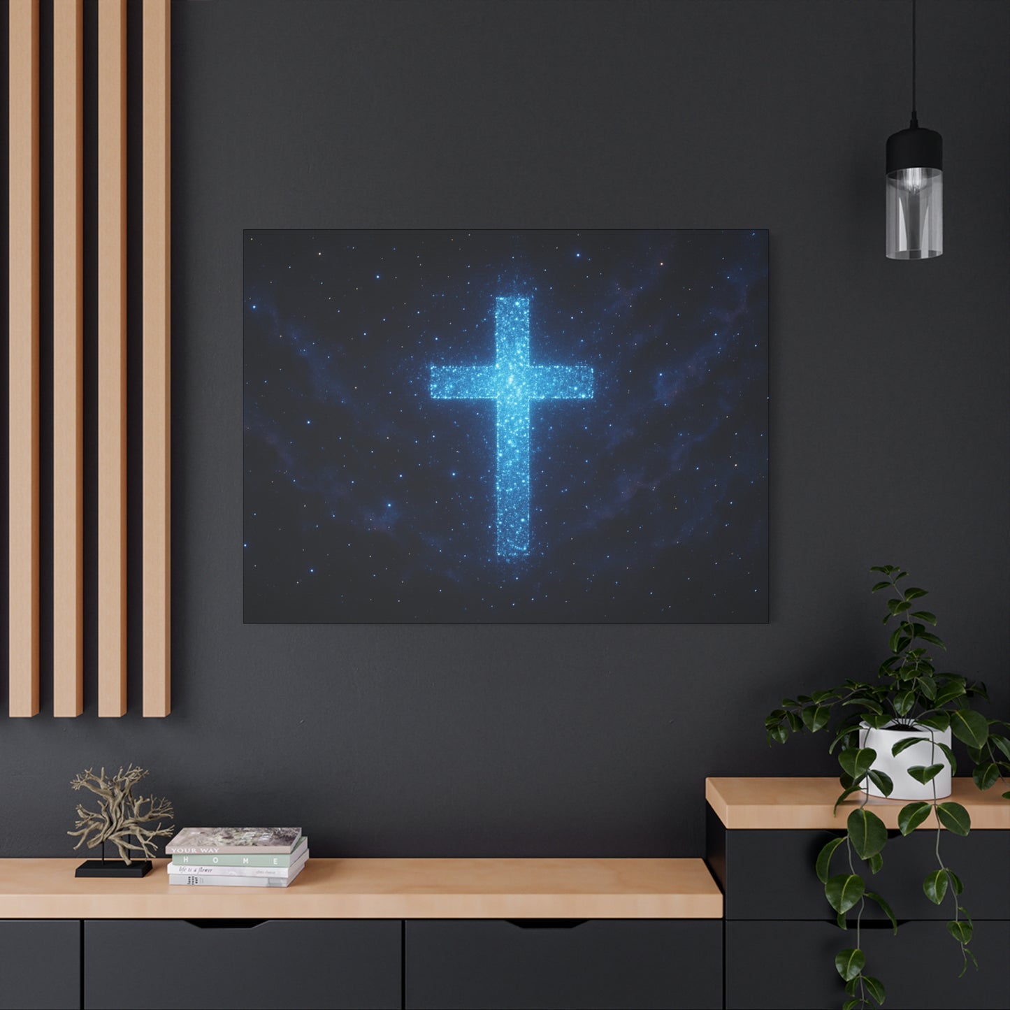 Canvas Wall Art - Bioluminescent Cross Design Spiritual Decor Christian Art Religious Canvas Gift for Believers