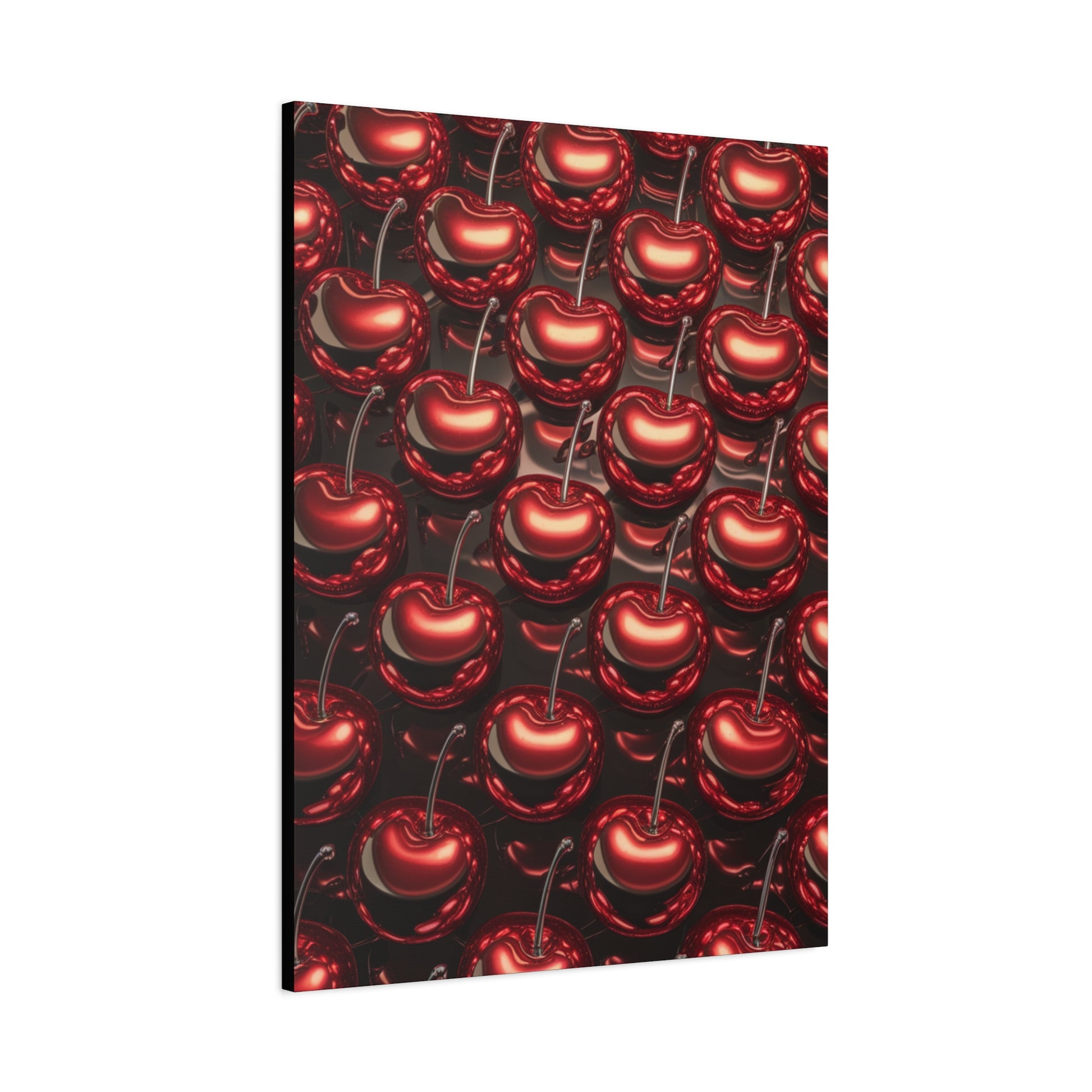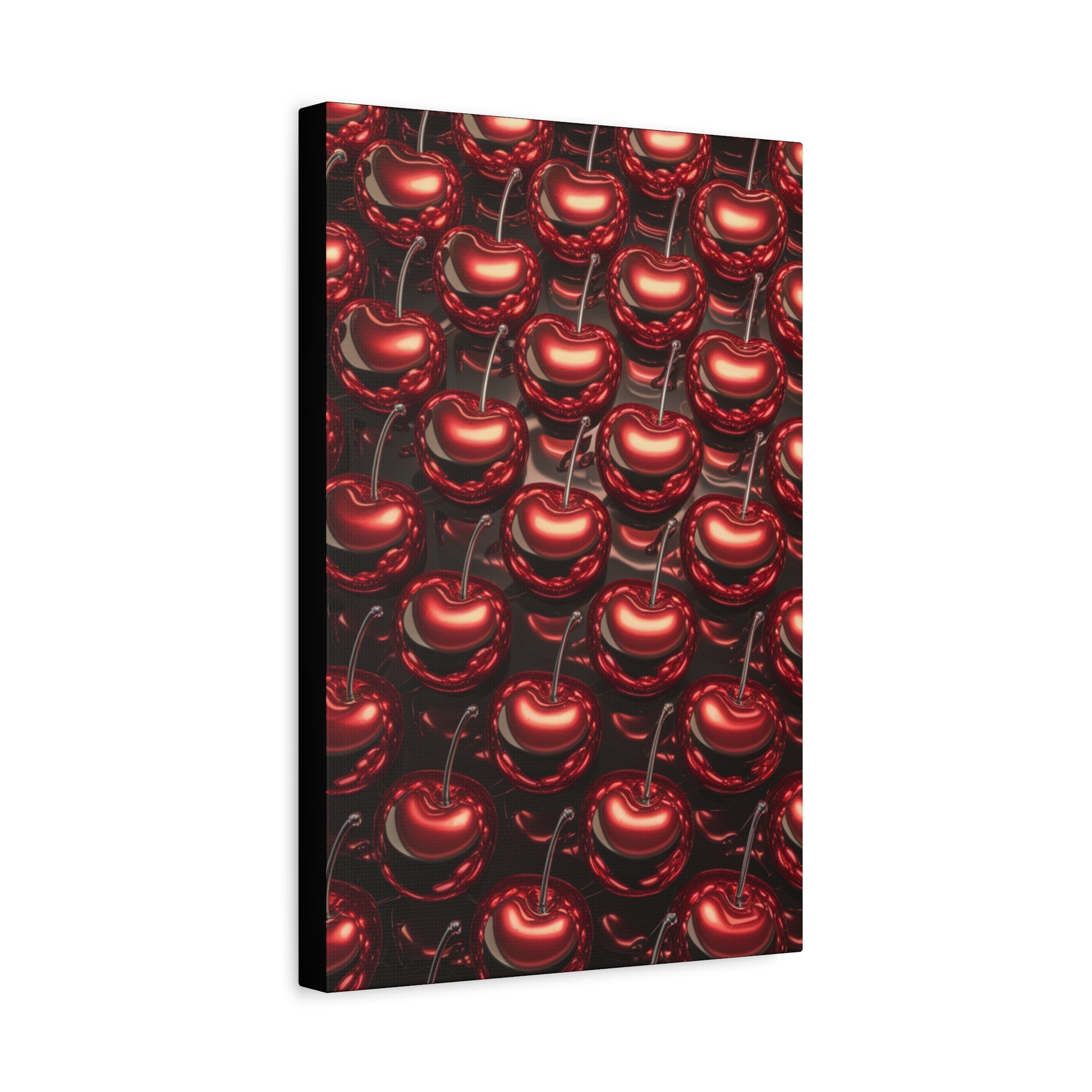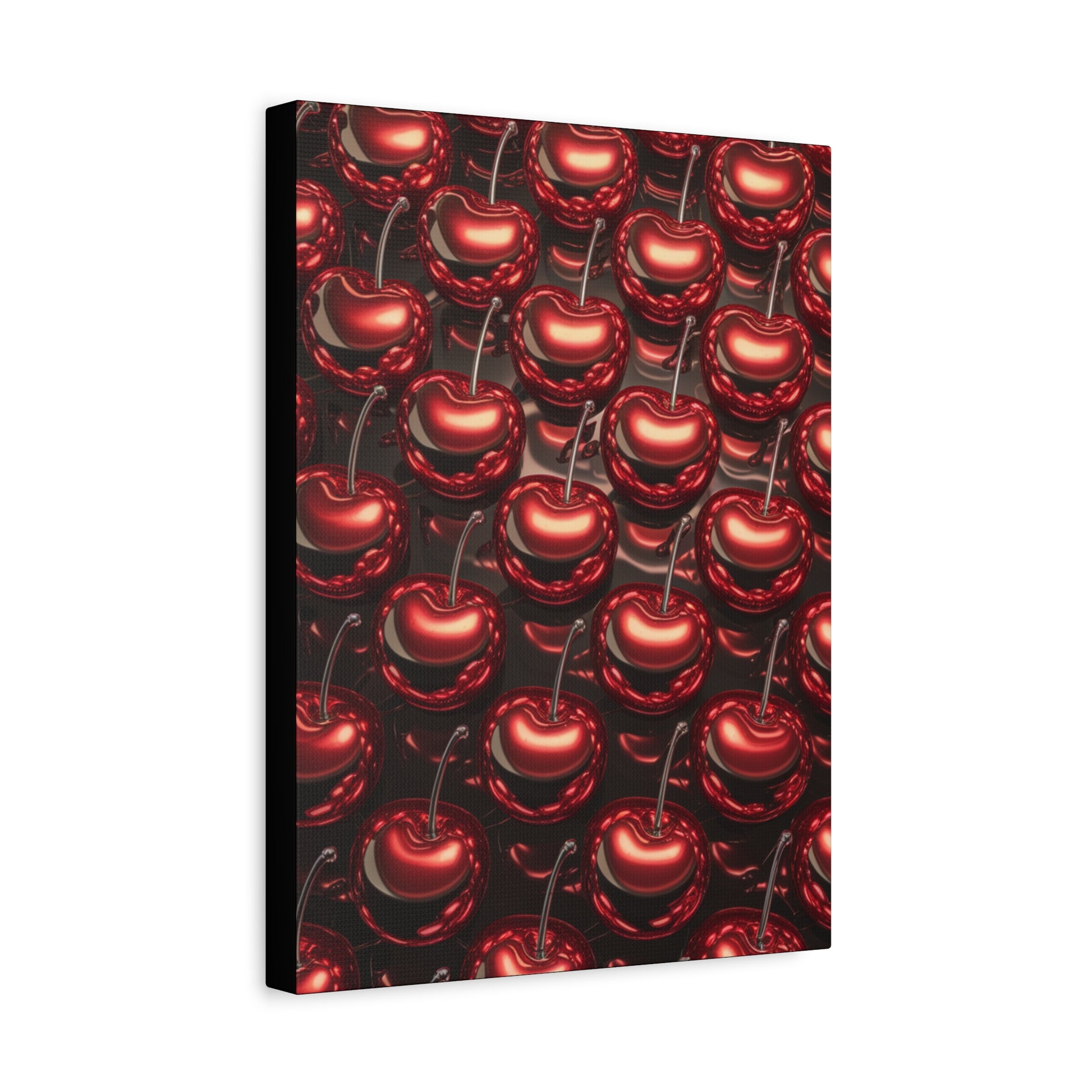 A fun canvas with colorful shiny cherries printed on it, adding a cheerful and vibrant touch to any room. Perfect for those looking to add a pop of color to their home decor or for fruit lovers. Ideal for kitchen, dining room, or living room decor. Great for summer decorating, picnics, and fruit-themed parties.