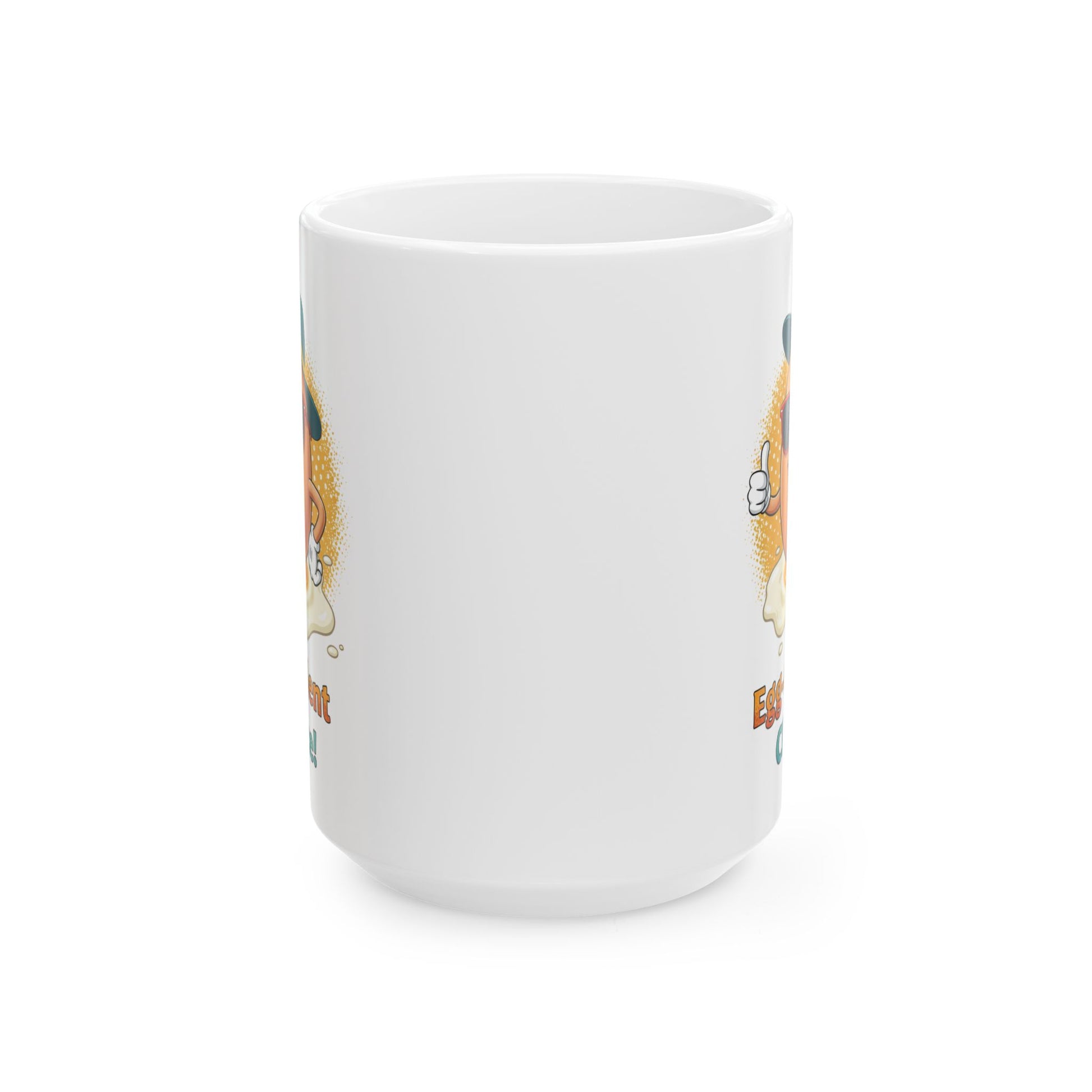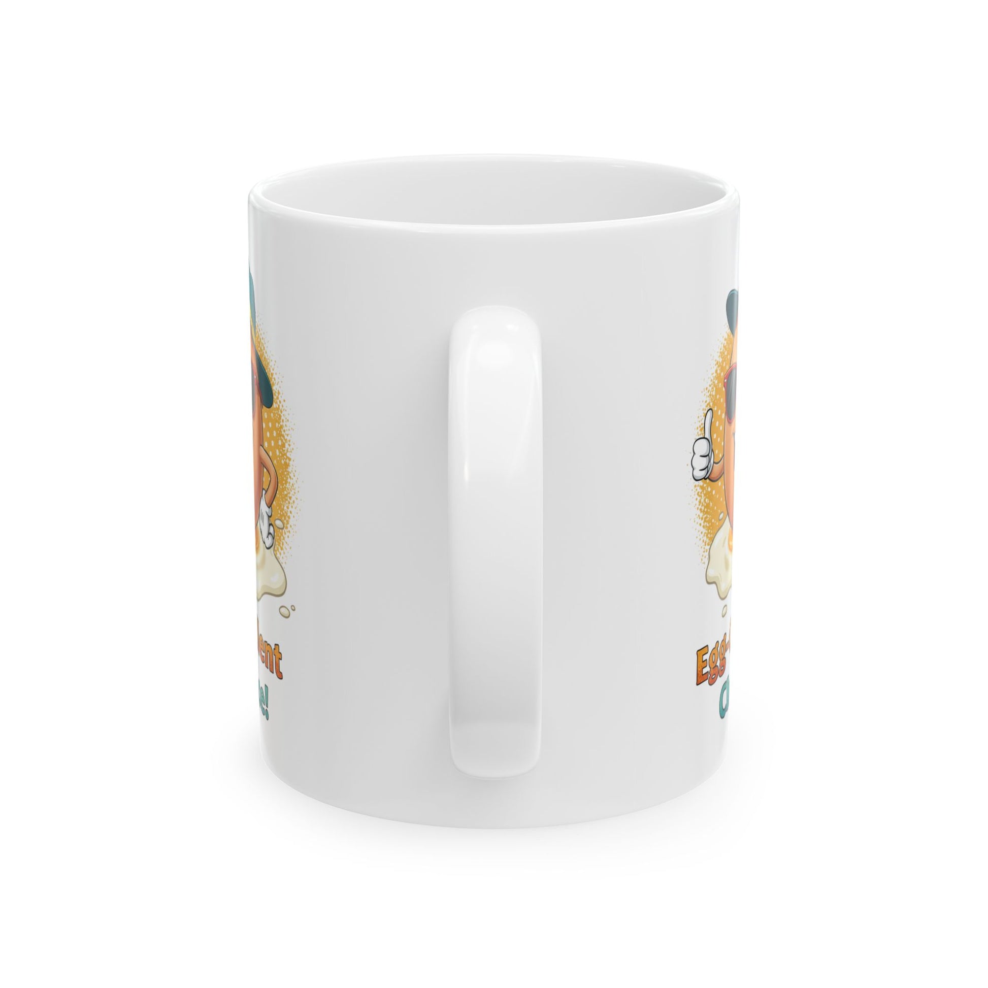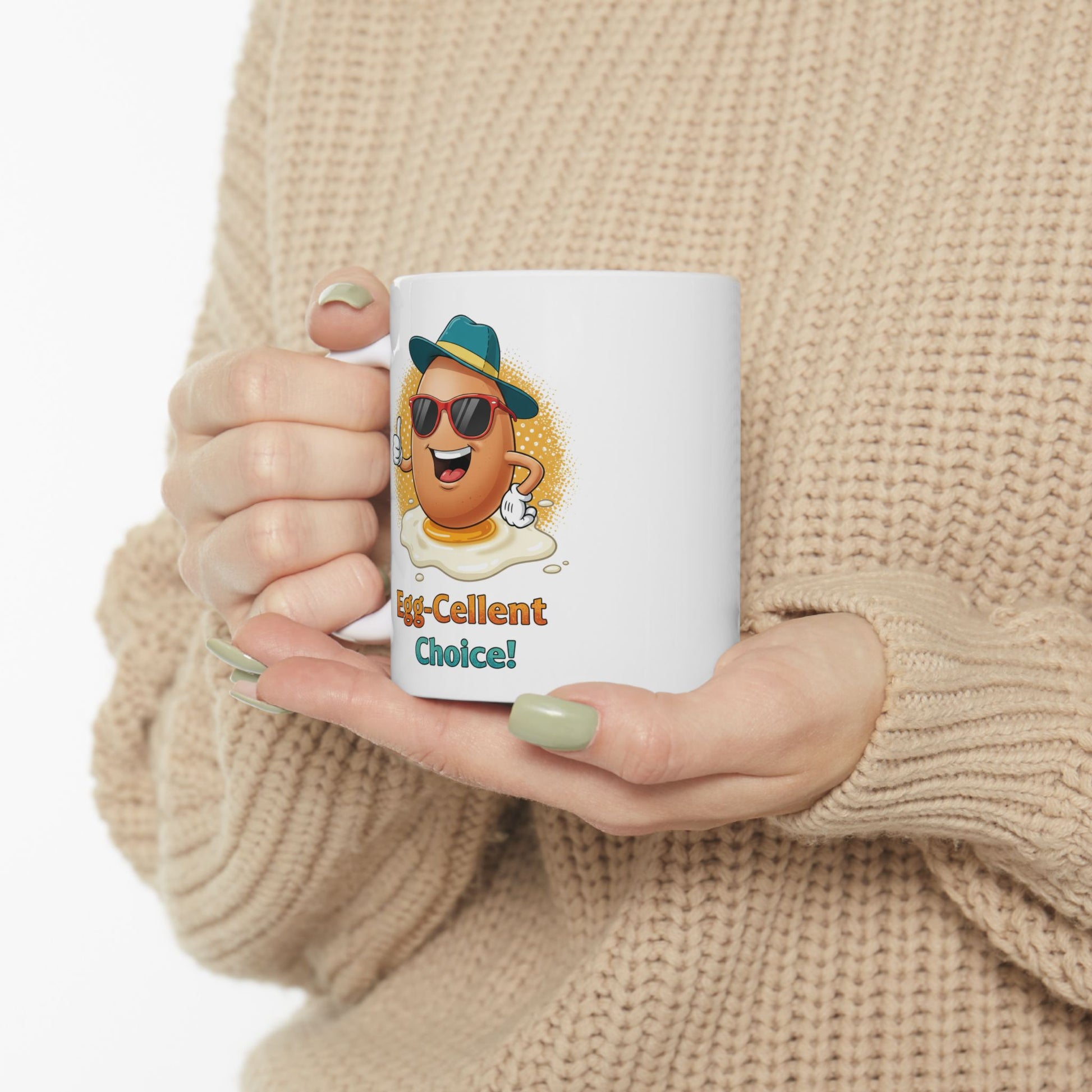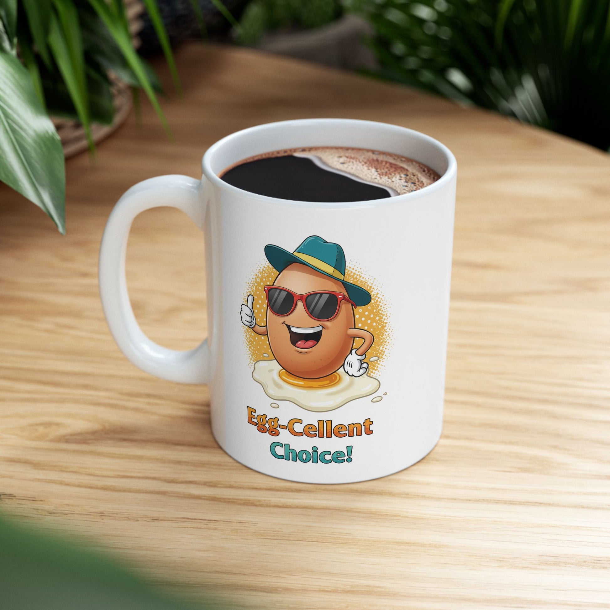 Egg-Cellent Choice! Funny Cartoon Egg Mug with Sunglasses & Hat – Cute Breakfast Ceramic Coffee Cup – Punny Gift for Egg Lovers