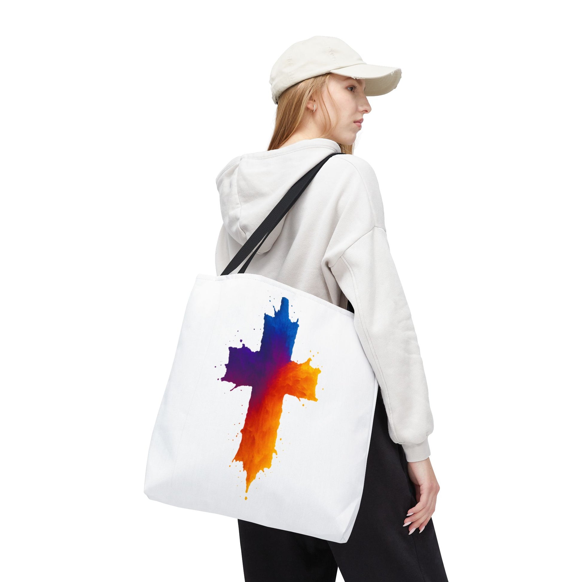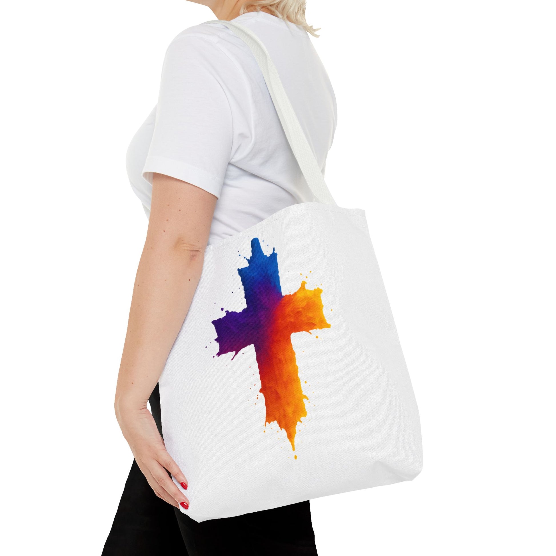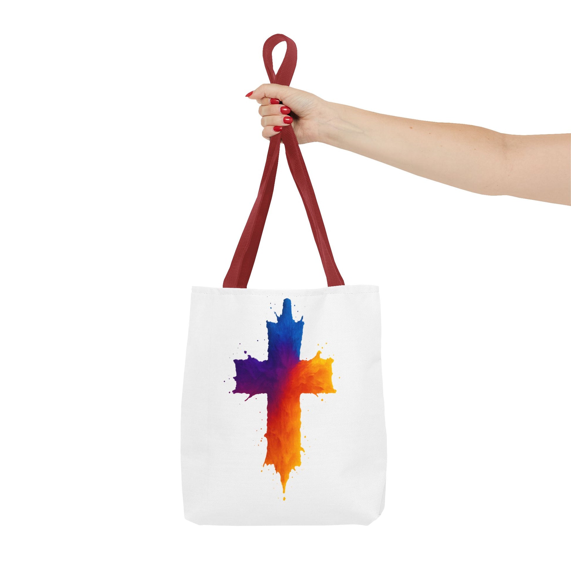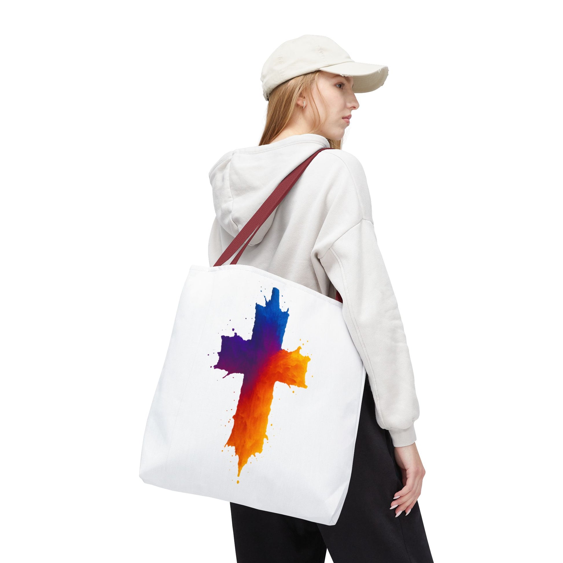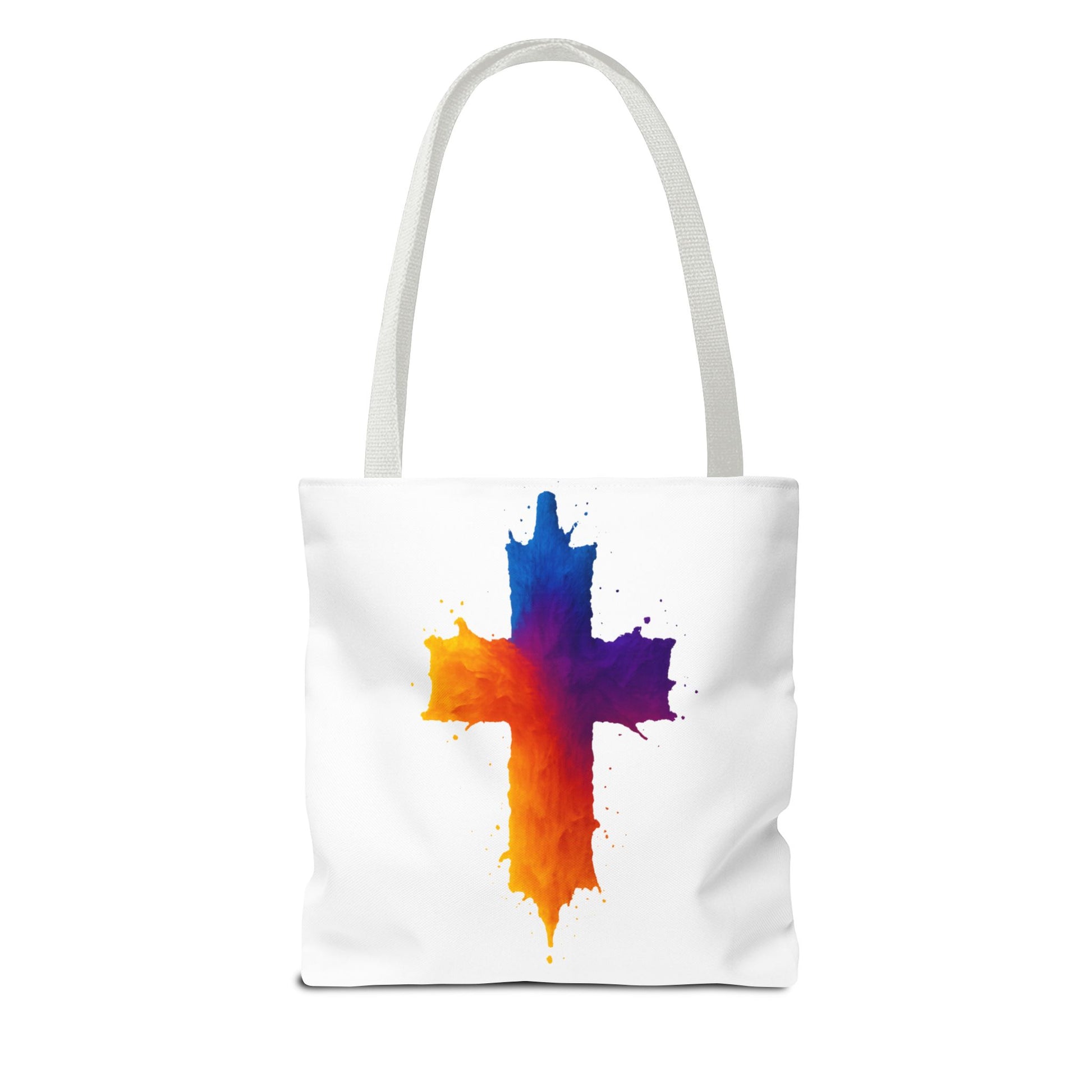 Carry your faith with color and confidence with the Watercolor Cross Tote Bag — a stunning blend of artistry and inspiration. Featuring a vivid watercolor-style cross in radiant orange, red, purple, and blue tones, this tote embodies hope and strength in a bold, modern design.