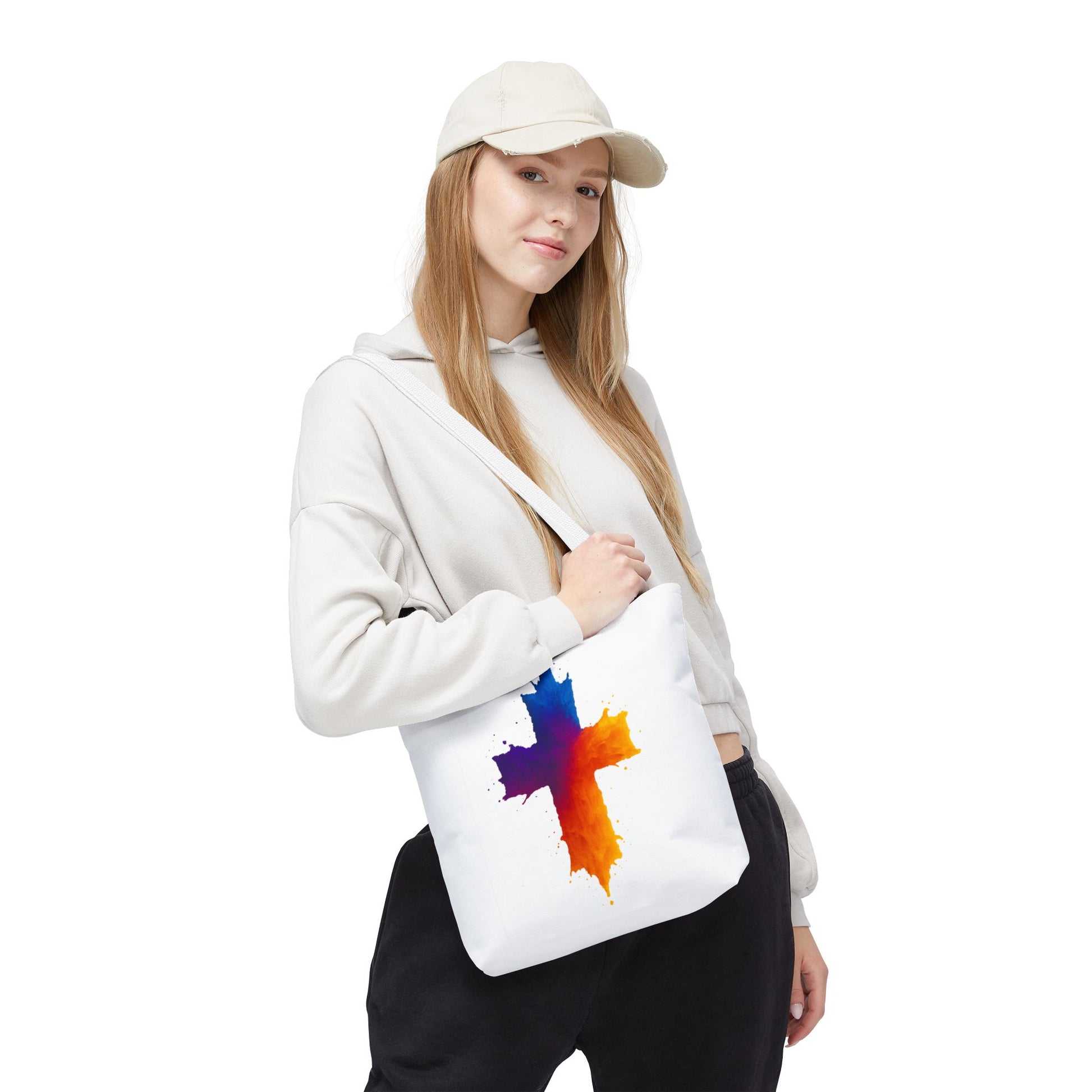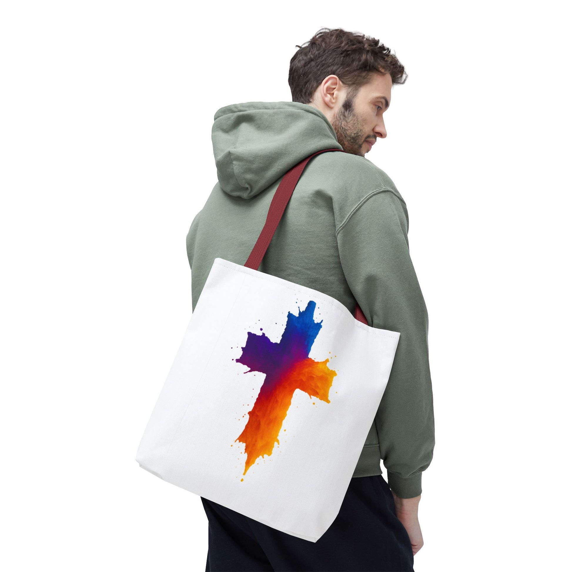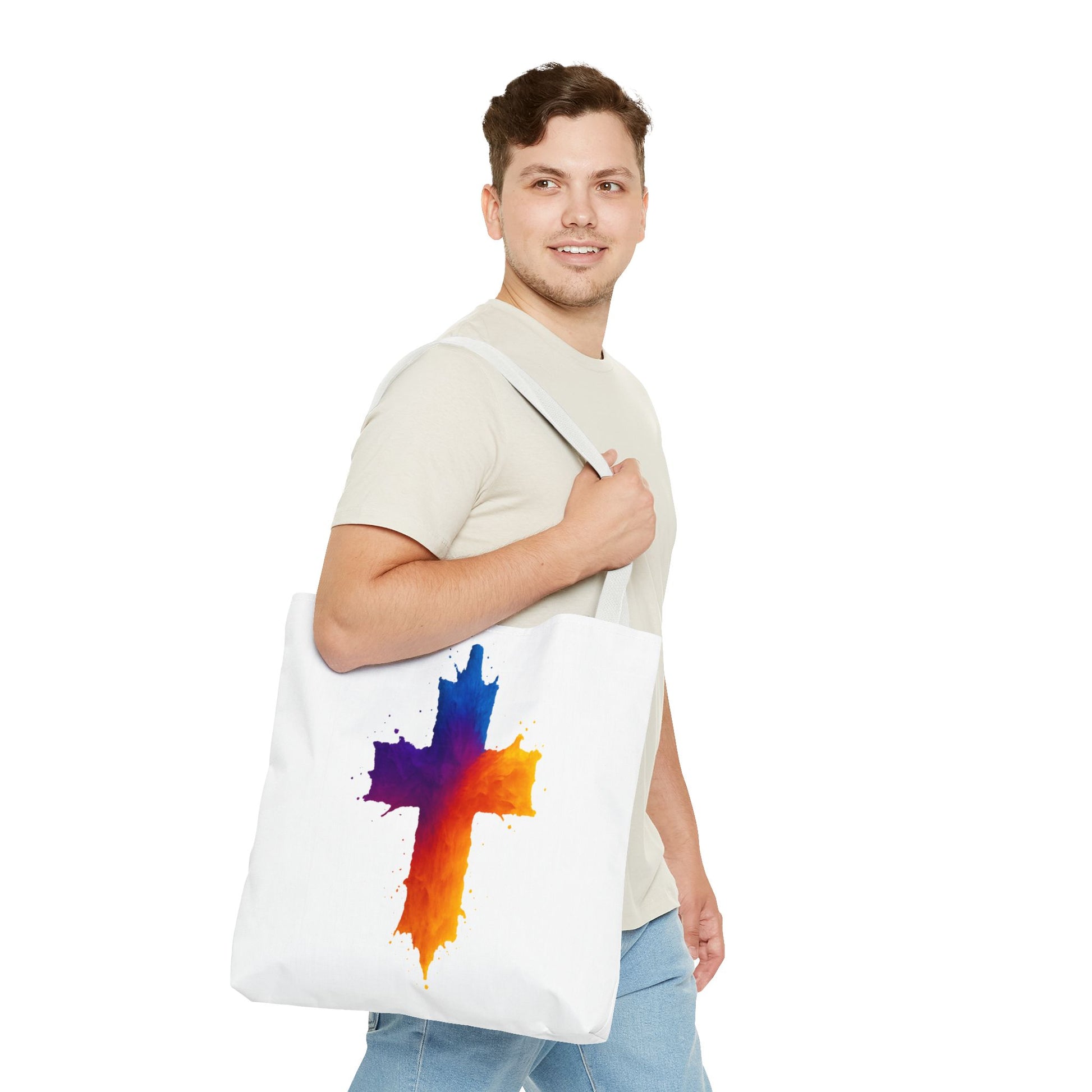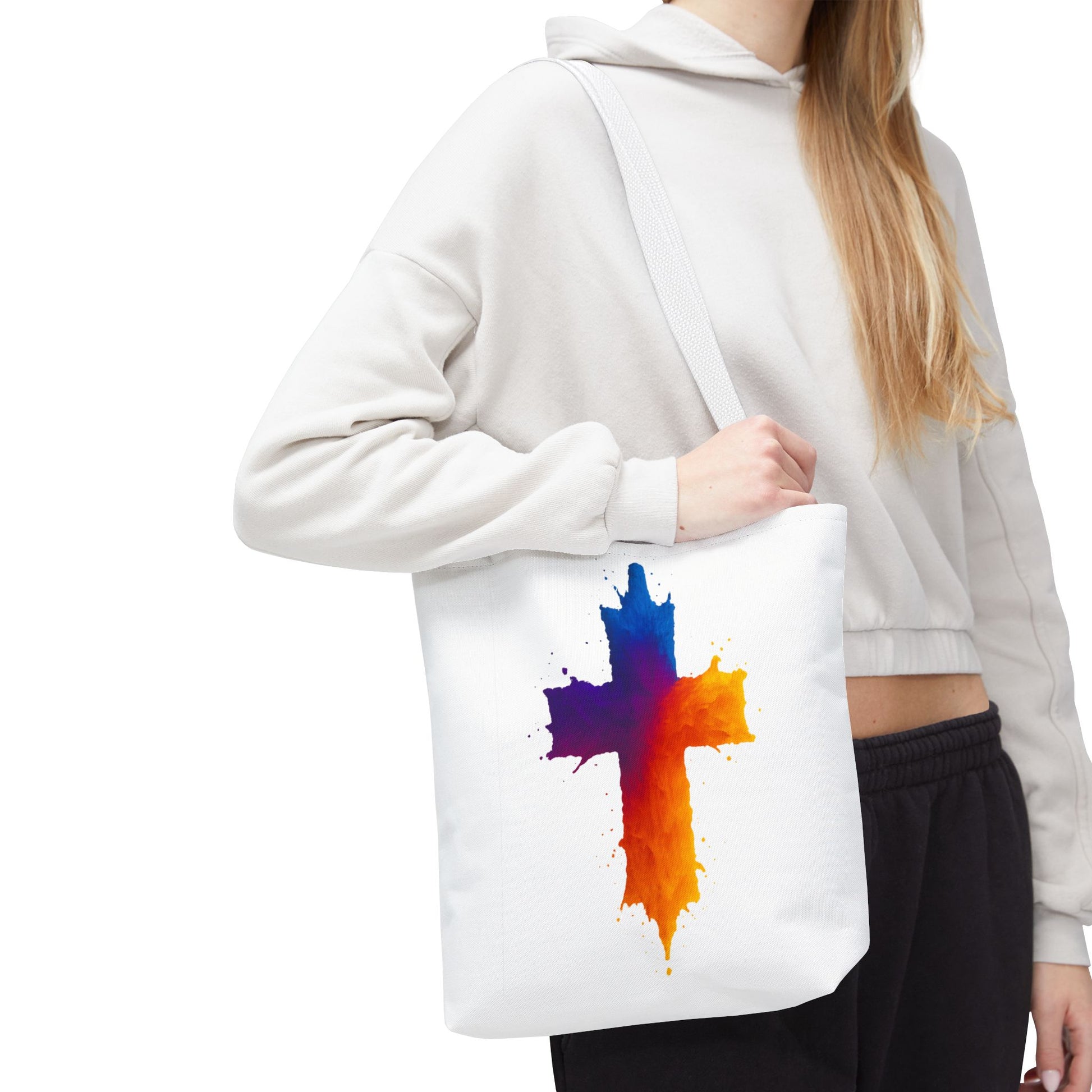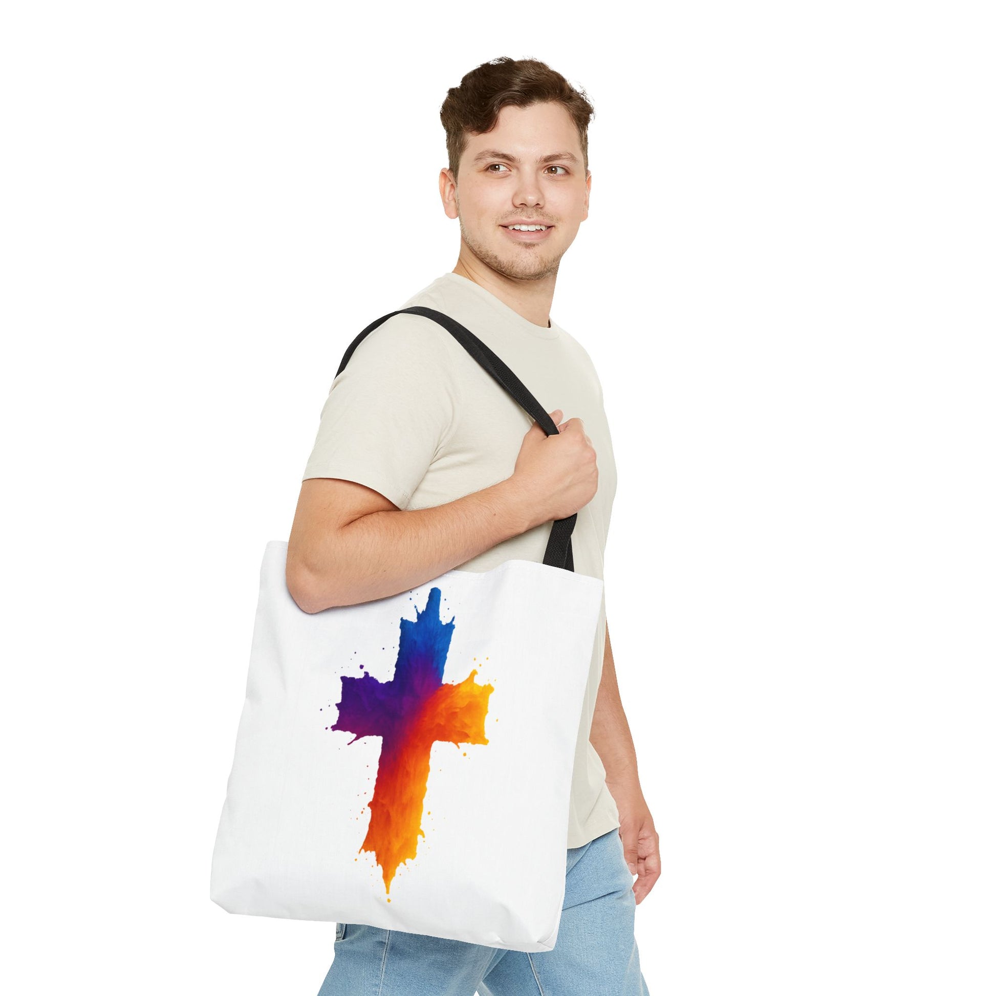 Carry your faith with color and confidence with the Watercolor Cross Tote Bag — a stunning blend of artistry and inspiration. Featuring a vivid watercolor-style cross in radiant orange, red, purple, and blue tones, this tote embodies hope and strength in a bold, modern design.
