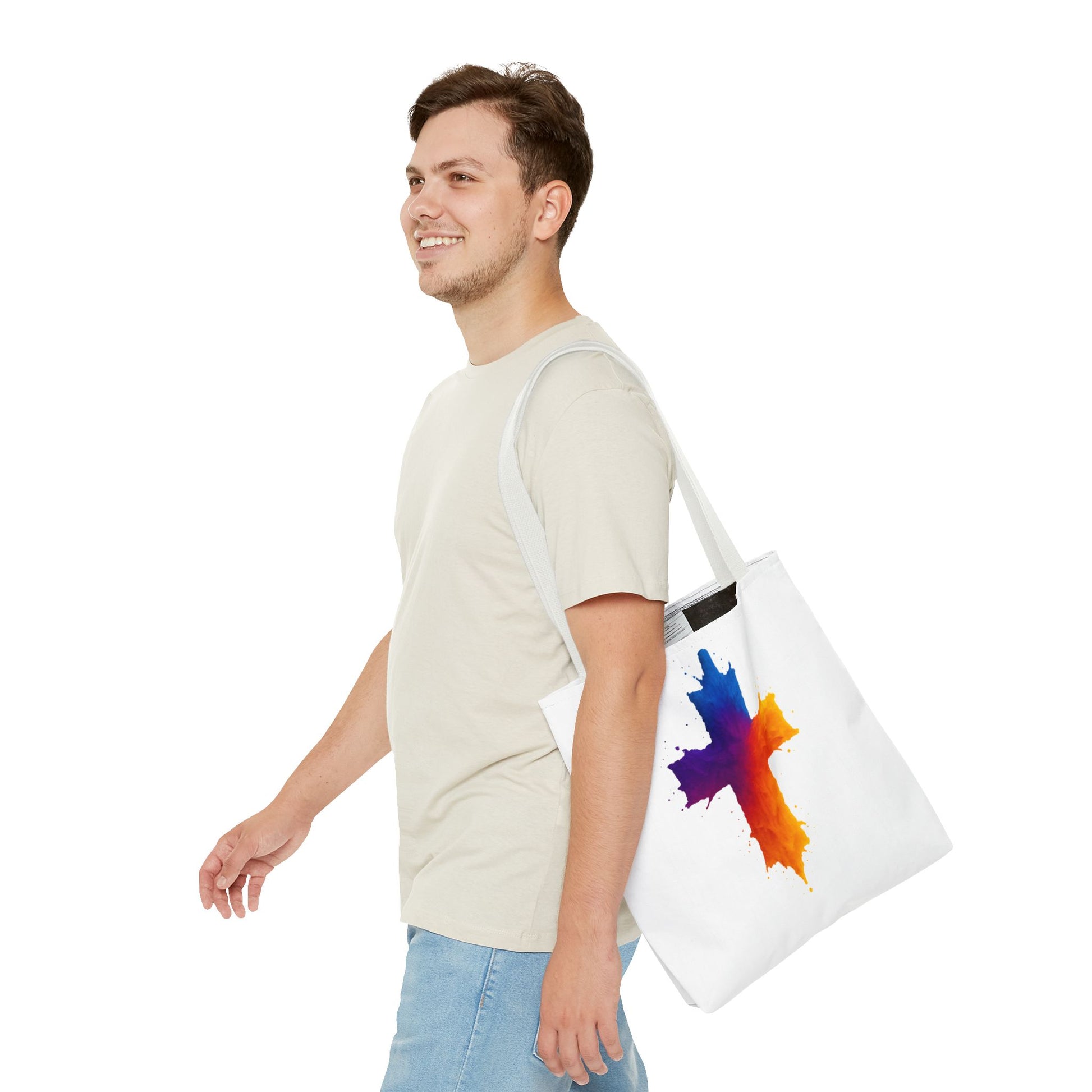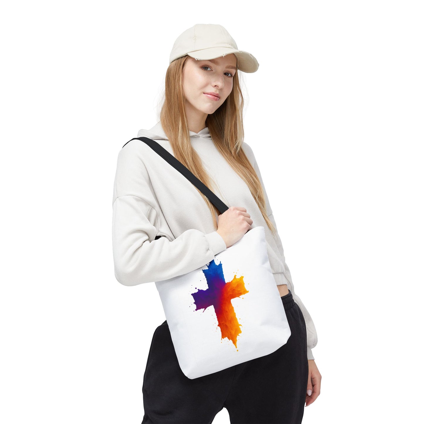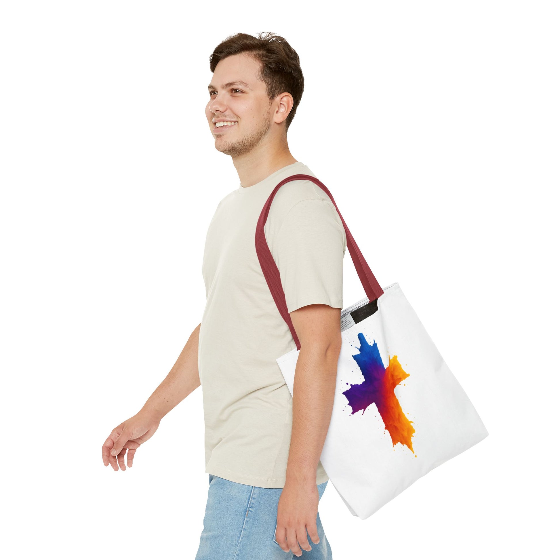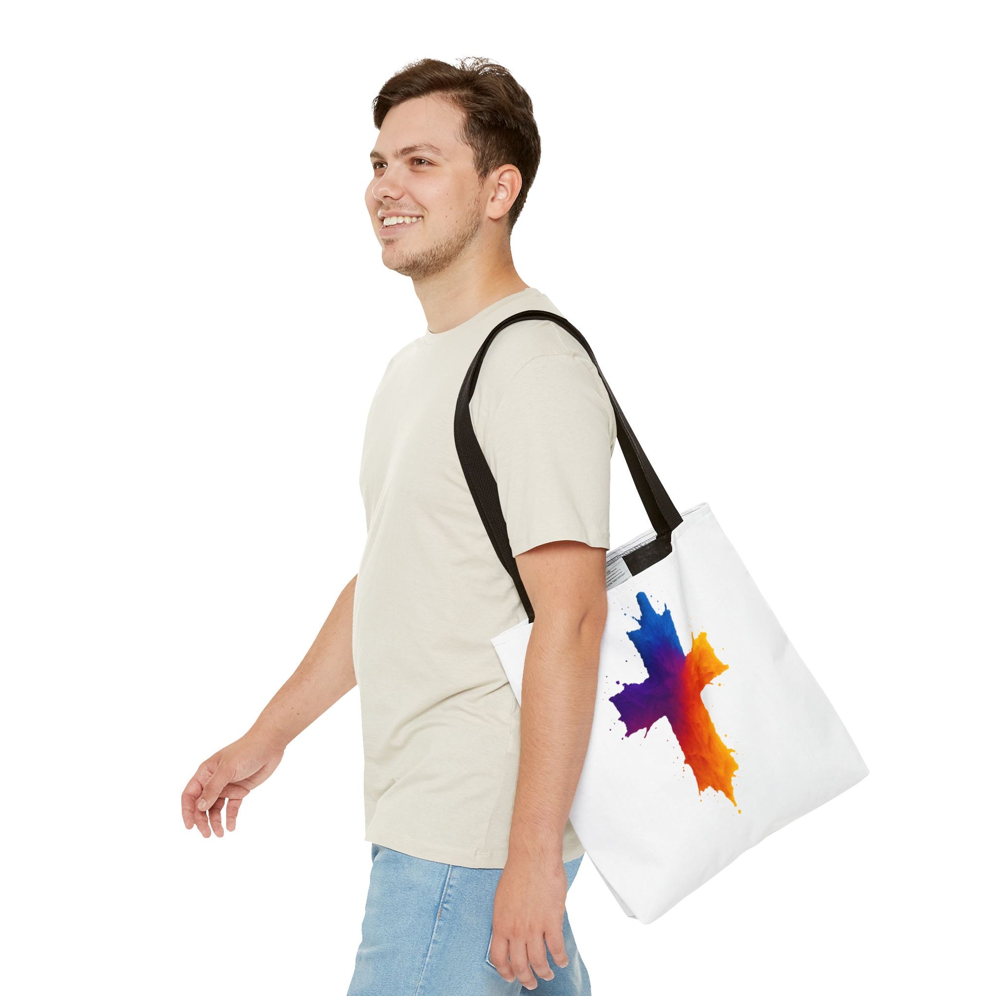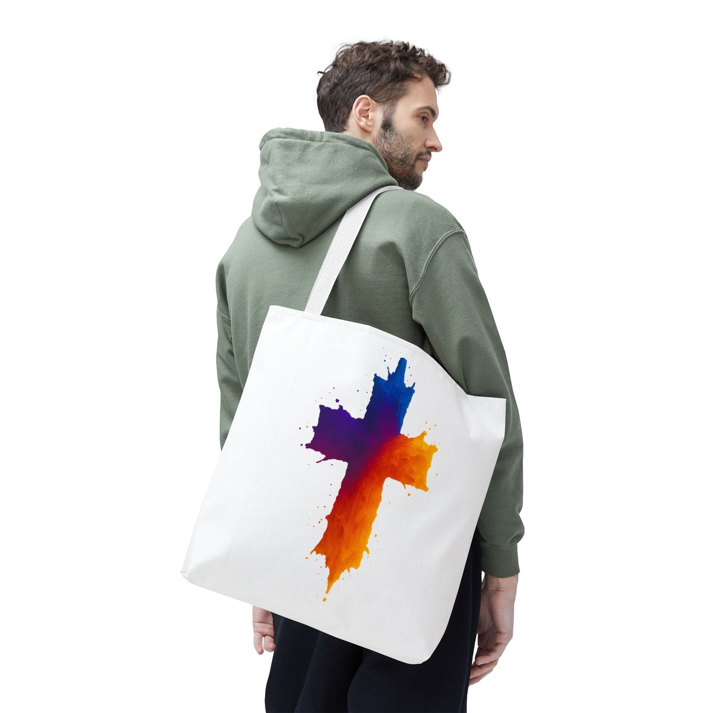 Carry your faith with color and confidence with the Watercolor Cross Tote Bag — a stunning blend of artistry and inspiration. Featuring a vivid watercolor-style cross in radiant orange, red, purple, and blue tones, this tote embodies hope and strength in a bold, modern design.