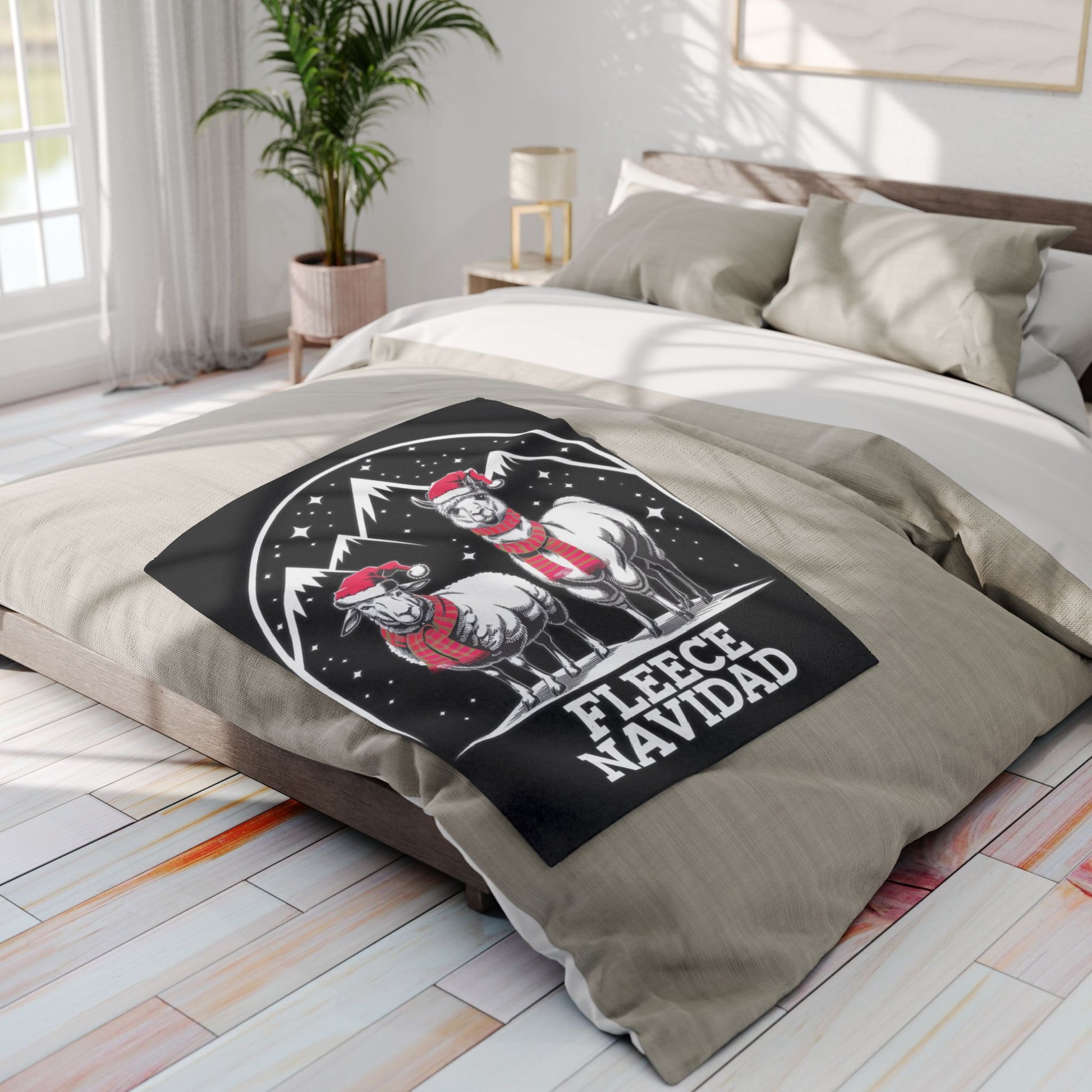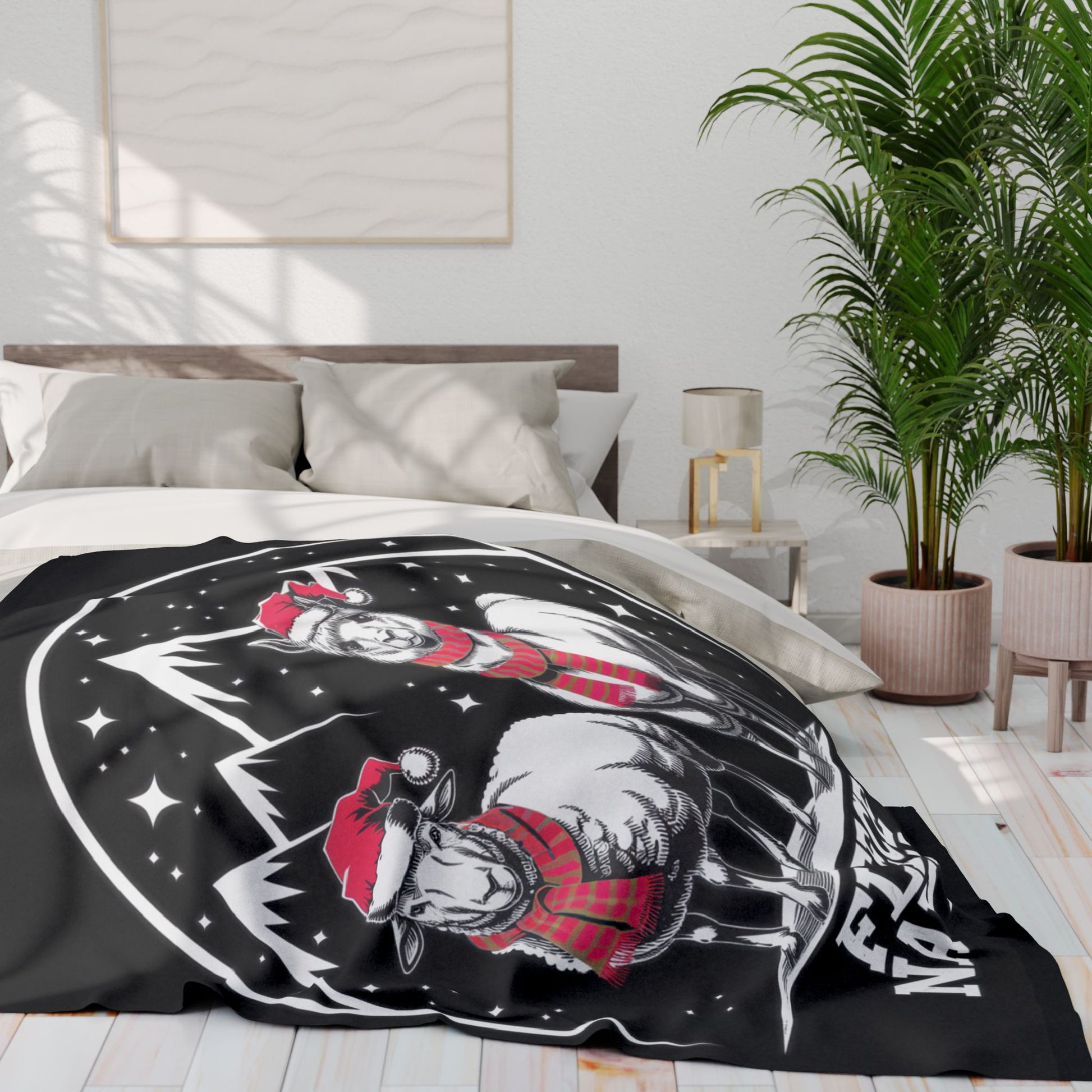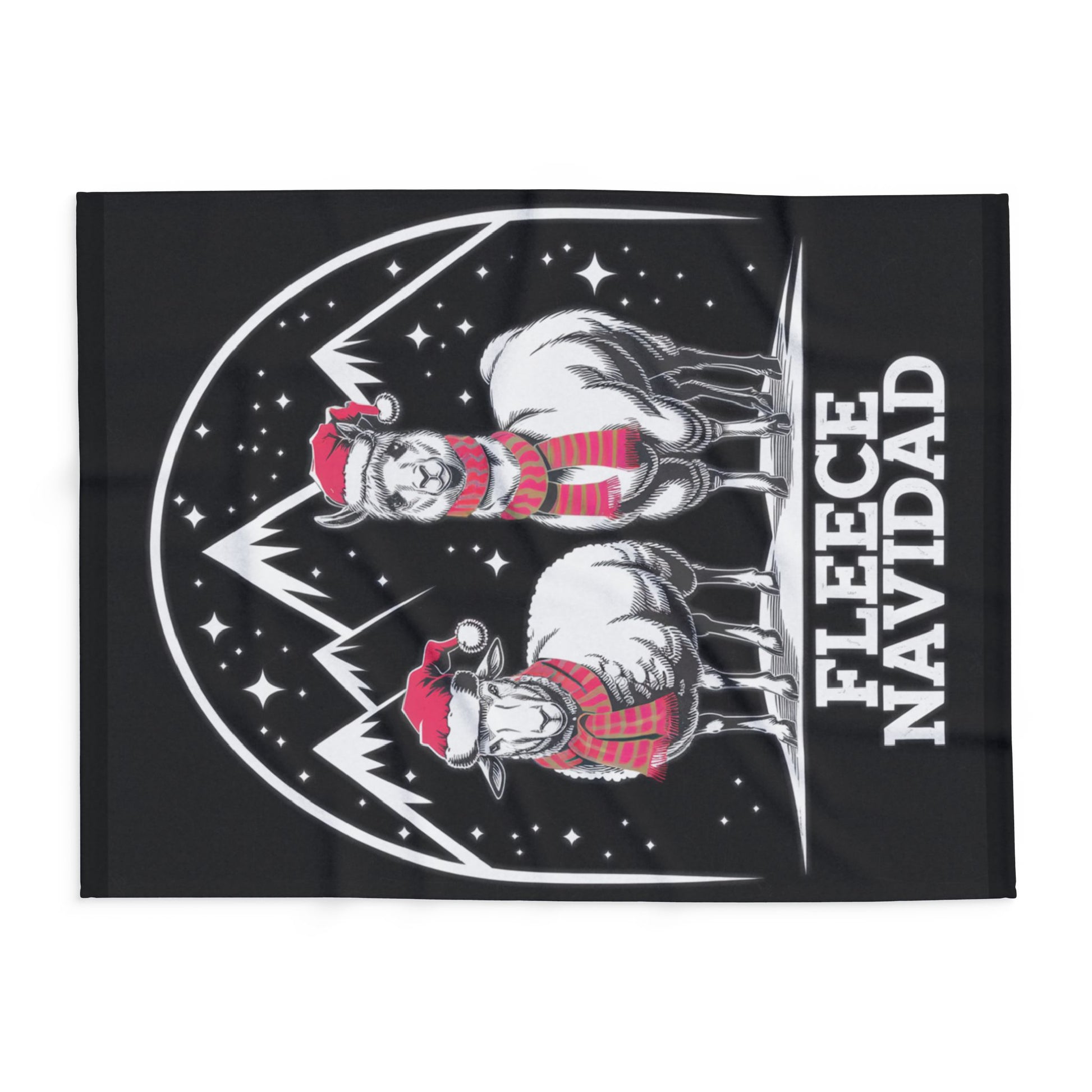 Stay cozy during the holiday season with this Christmas Arctic Fleece Blanket featuring a sheep and llama wearing Santa Hats and the phrase "Fleece Navidad"; Perfect for adding a festive touch to your living room or bedroom decor, this blanket is soft, thick, and vibrant in color.