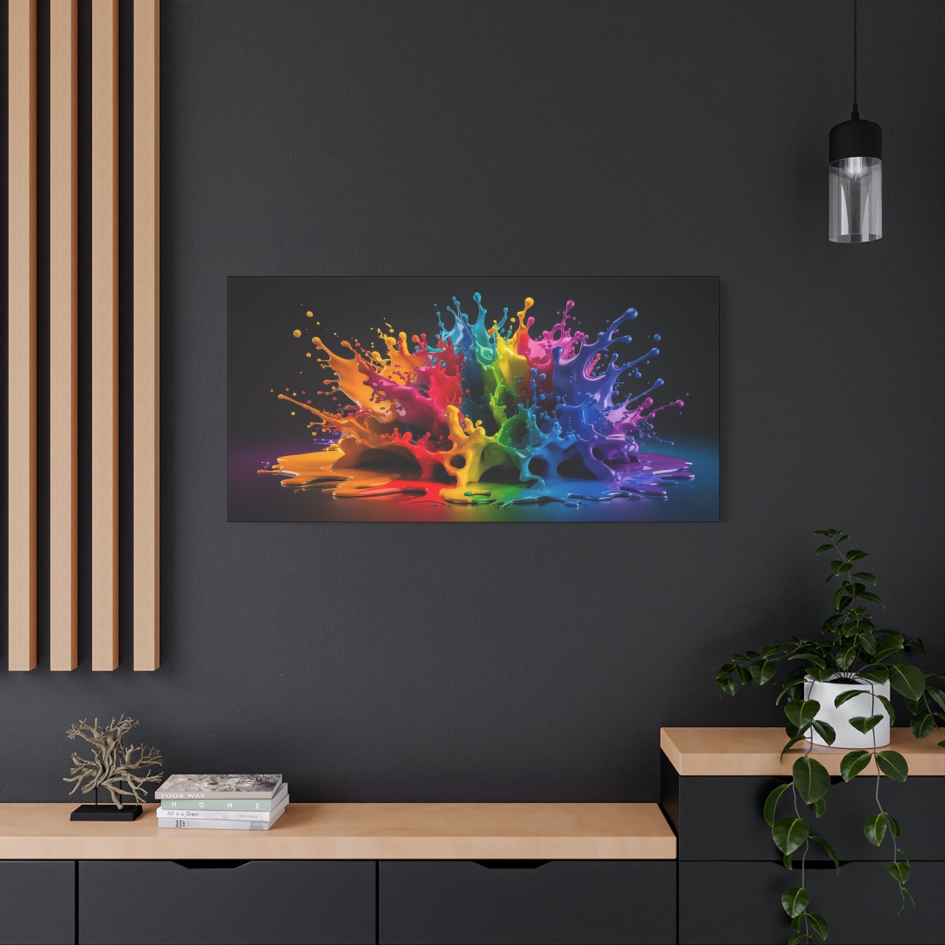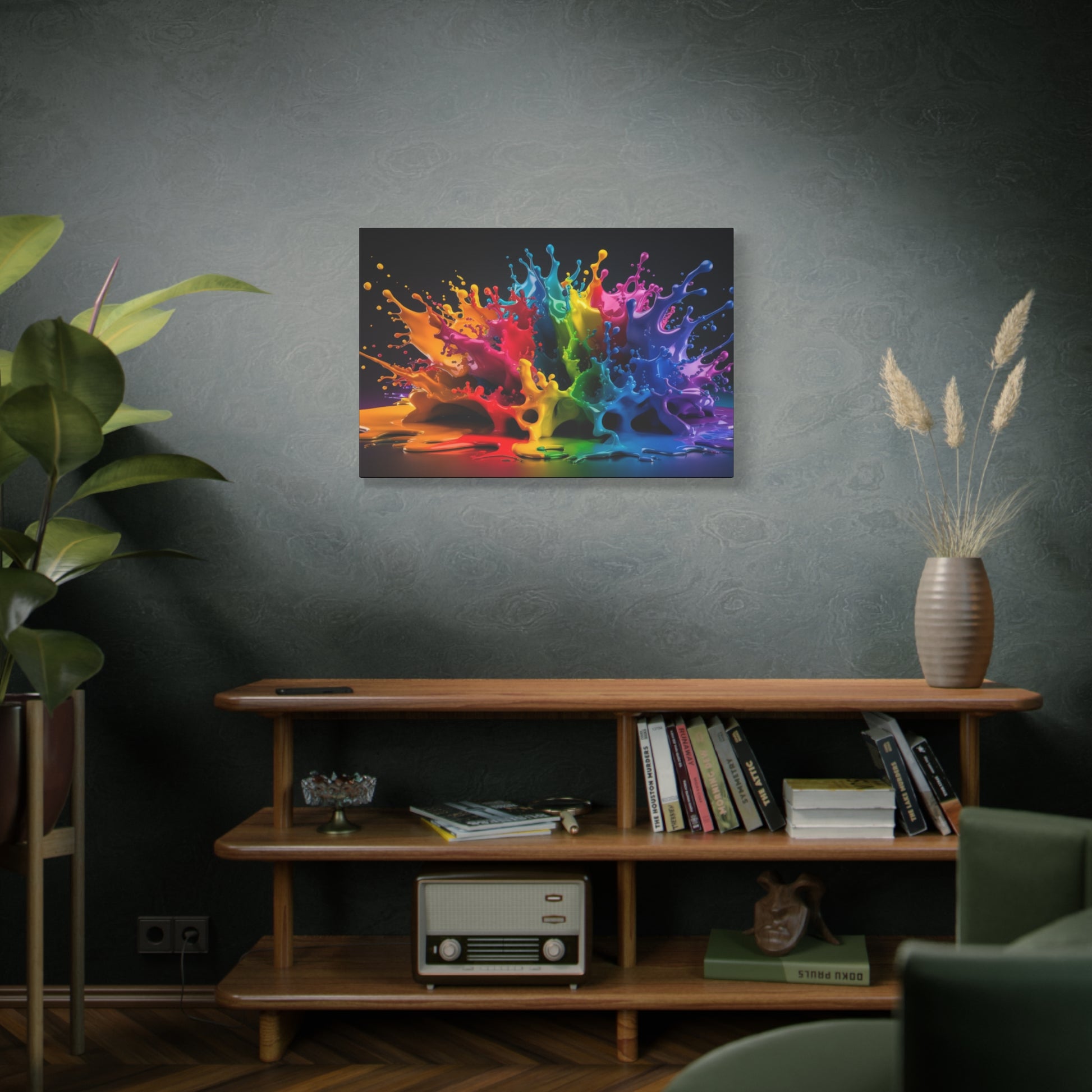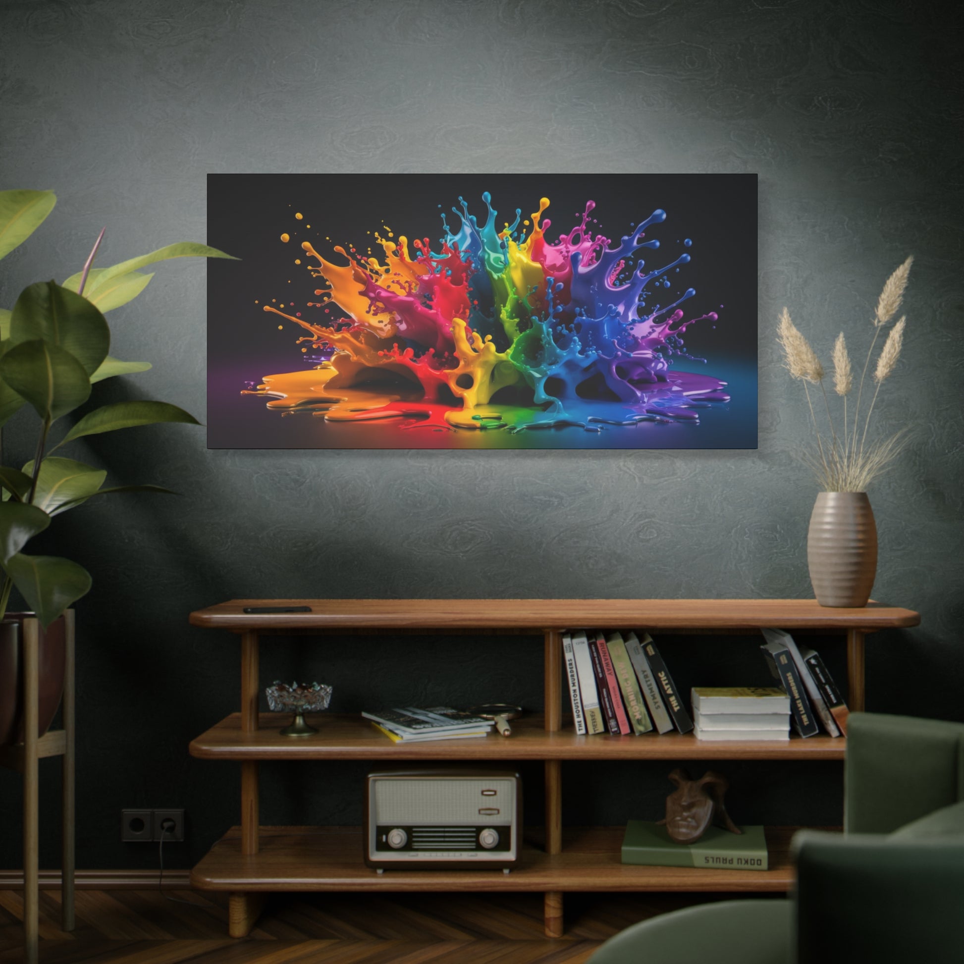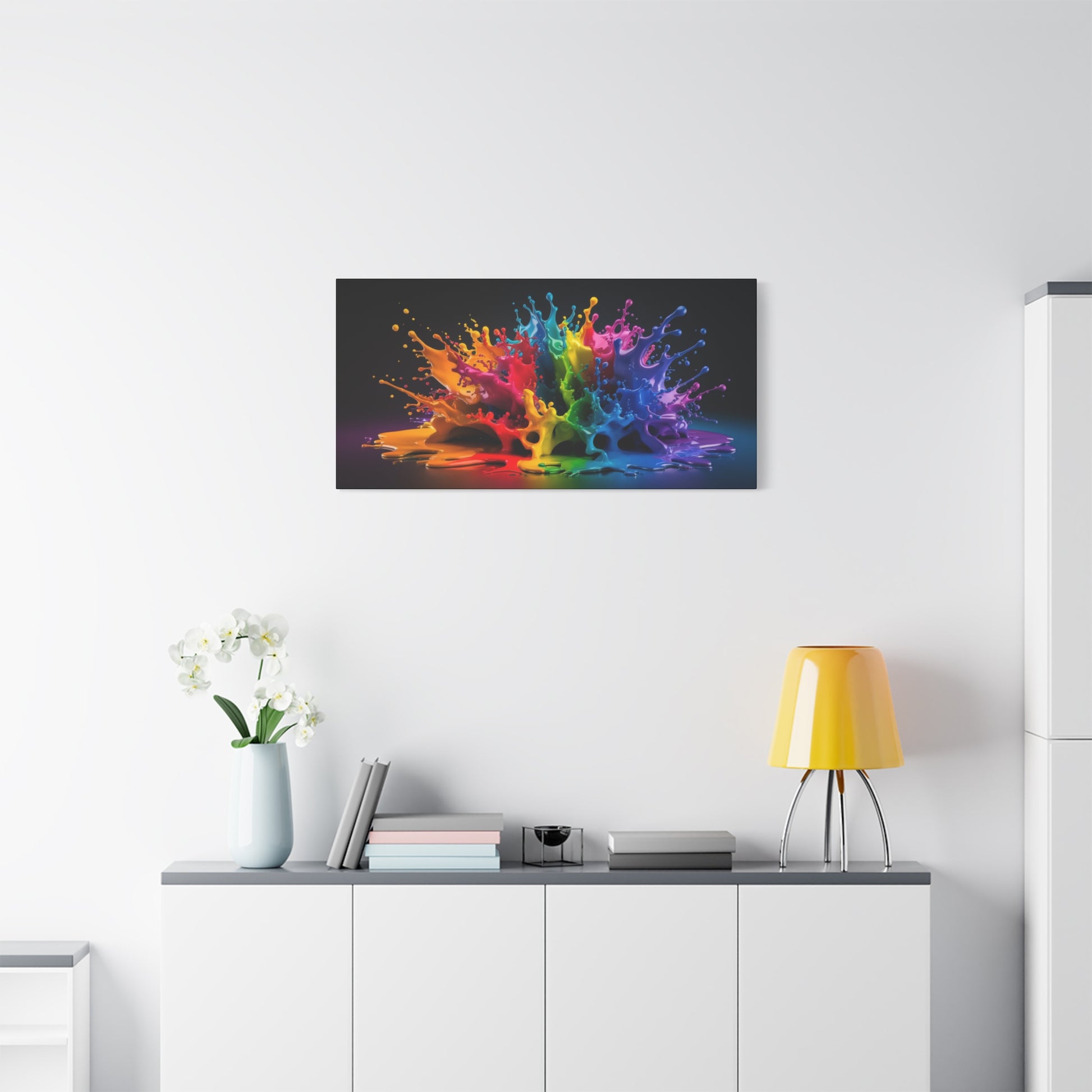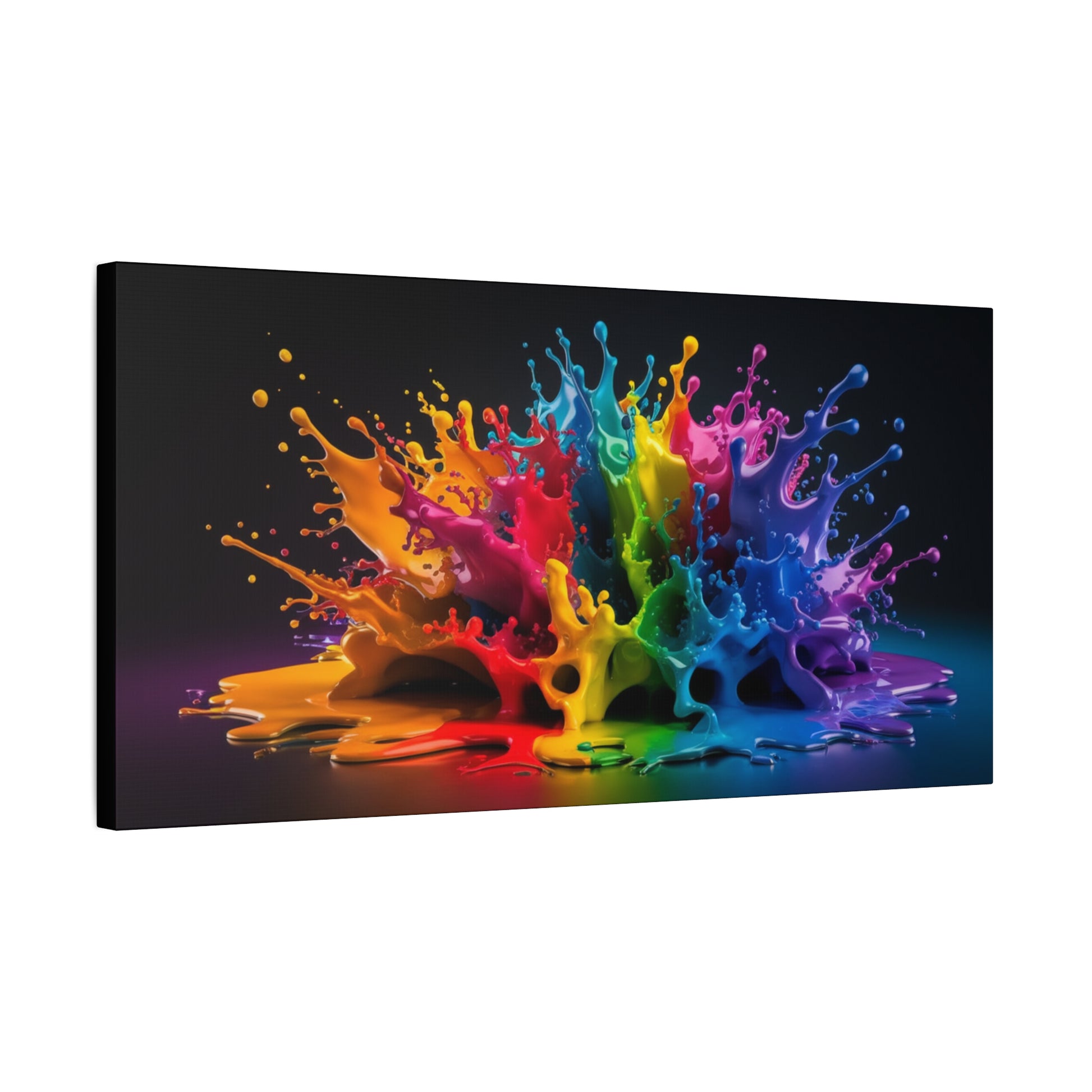 Dive into a world of vibrant energy with "Chromatic Burst," a stunning abstract canvas art piece that captures the dynamic beauty of colors in motion. This eye-catching artwork features a mesmerizing splash of vivid hues, creating a captivating focal point for any room. The smooth and glossy finish gives the colors a luminous quality, enhancing the depth and visual impact.