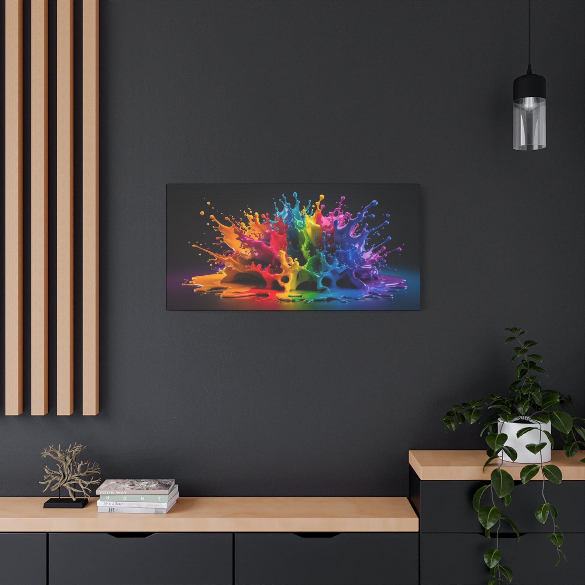 Perfect for adding a touch of modern flair to your living room, office, or creative space, "Chromatic Burst" is more than just a decoration—it's a statement. Its bold and playful design will spark conversation and infuse your surroundings with a sense of joy and creativity. Each canvas is carefully crafted to ensure lasting quality and color vibrancy, bringing you a piece of art that will inspire for years to come.