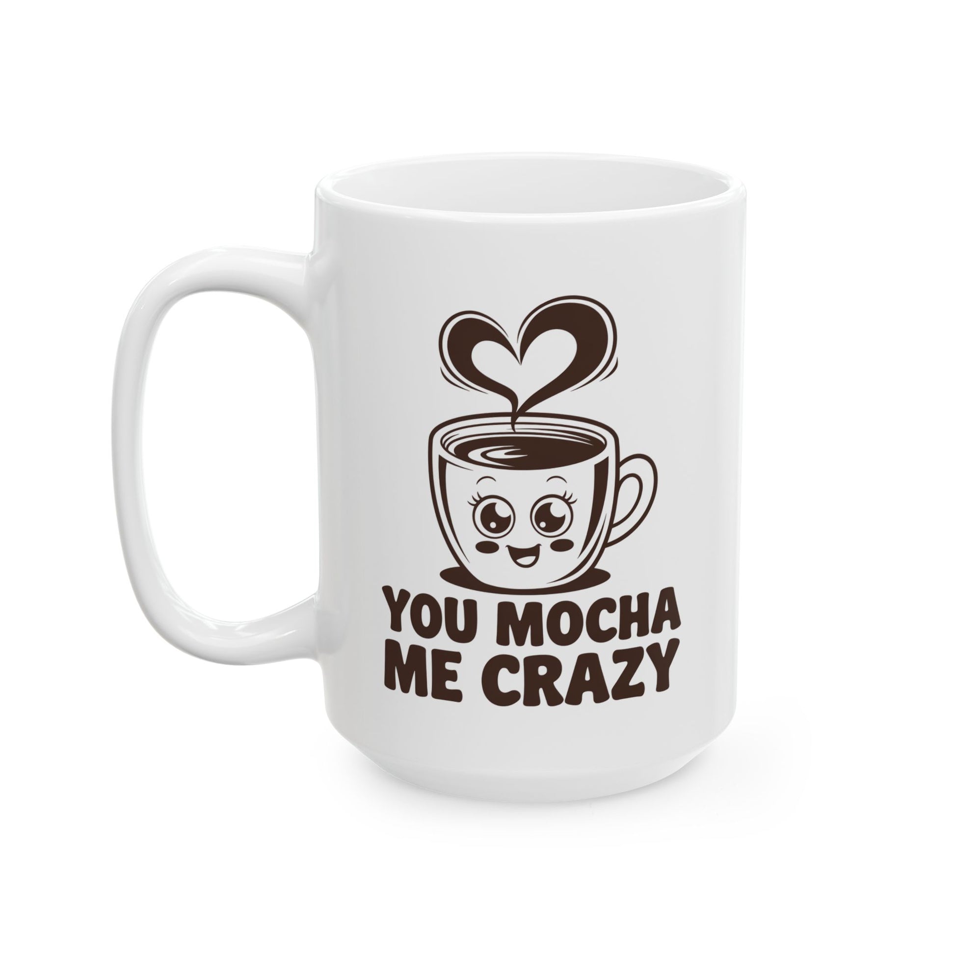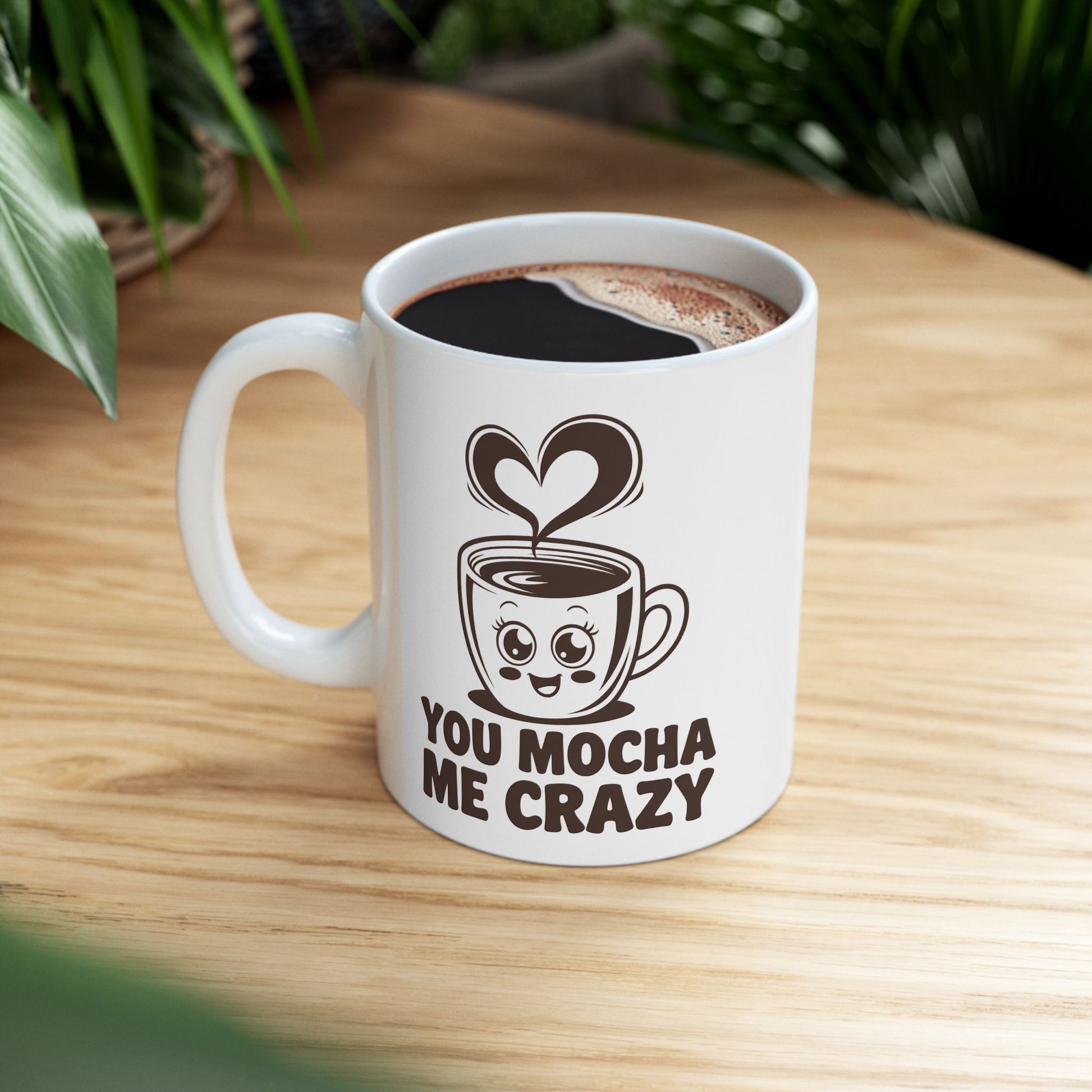 You Mocha Me Crazy Mug – Cute Coffee Pun Gift – Kawaii Heart Latte Art Ceramic 11oz & 15oz – Funny Valentine, Galentine Gift ‘25 Trend