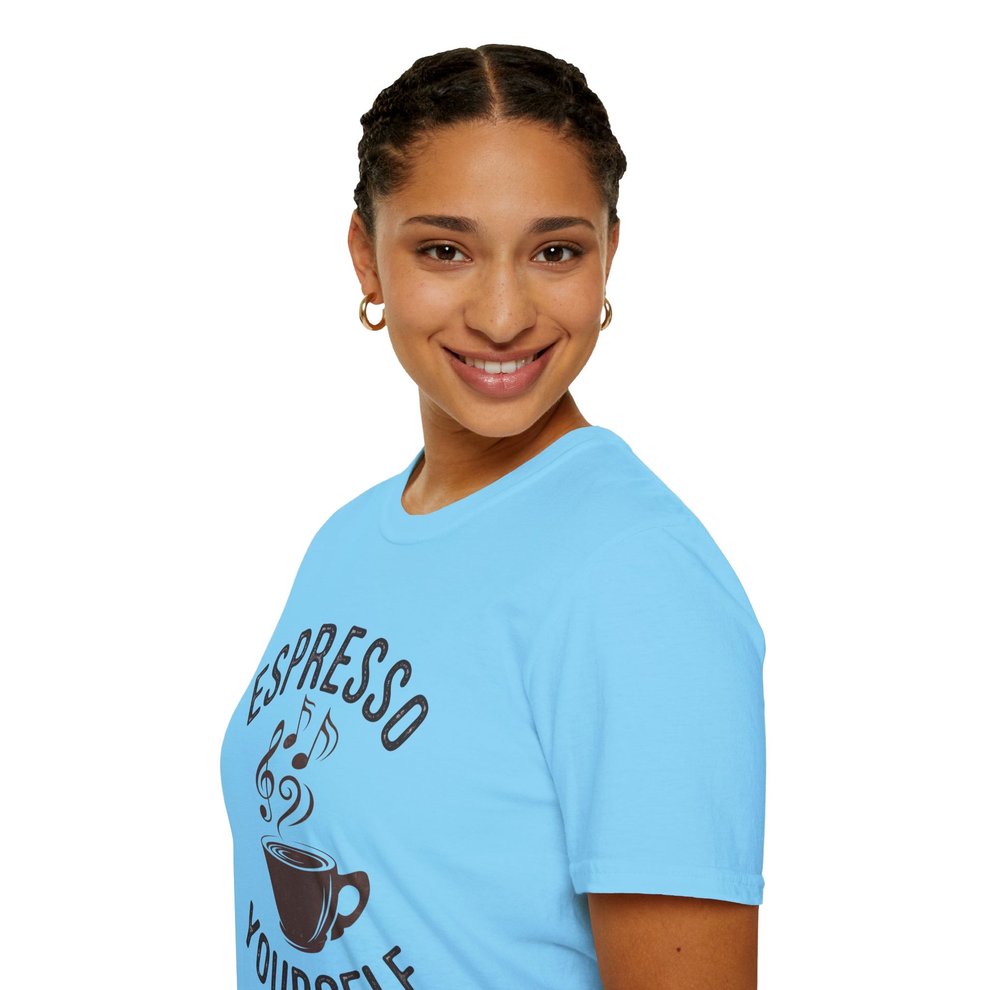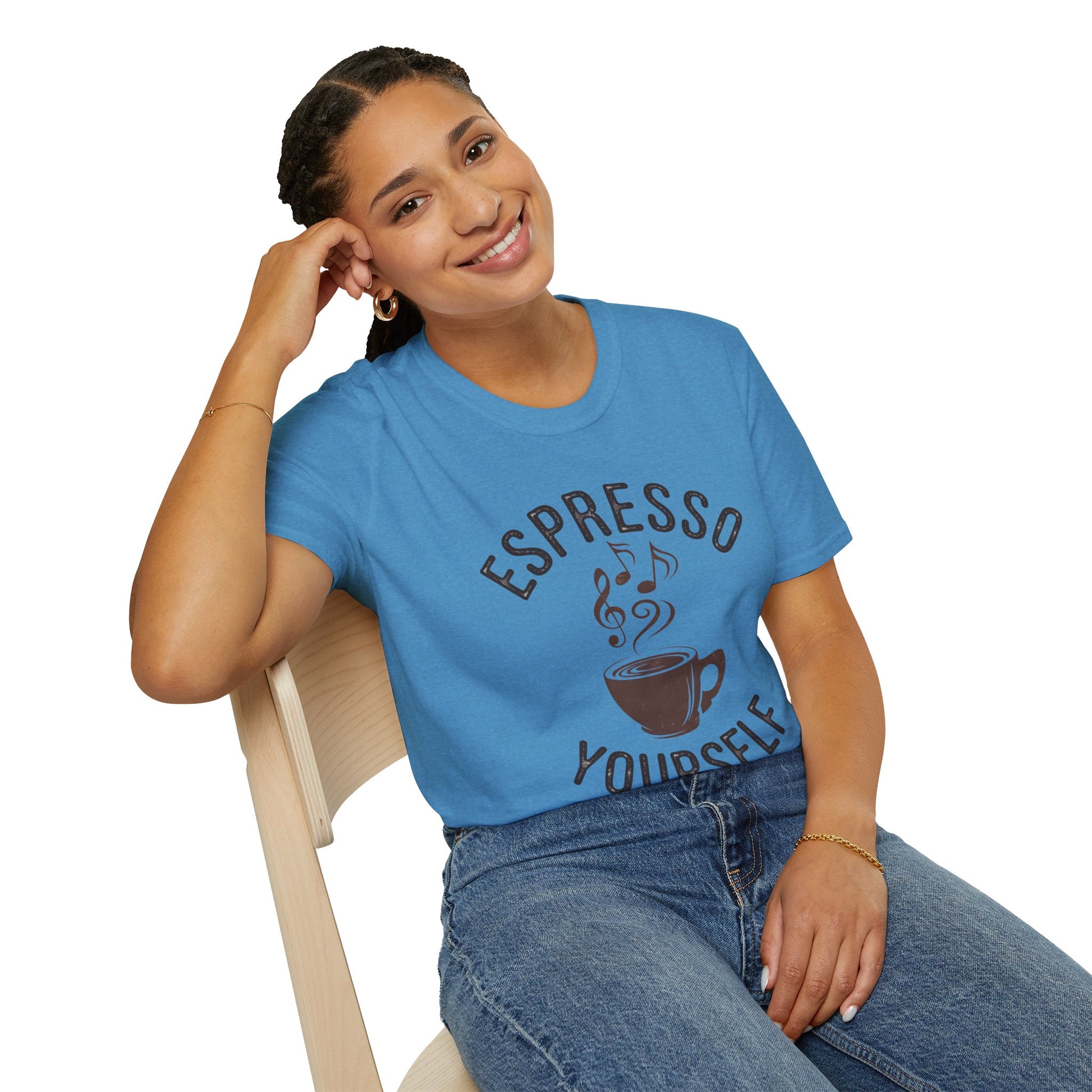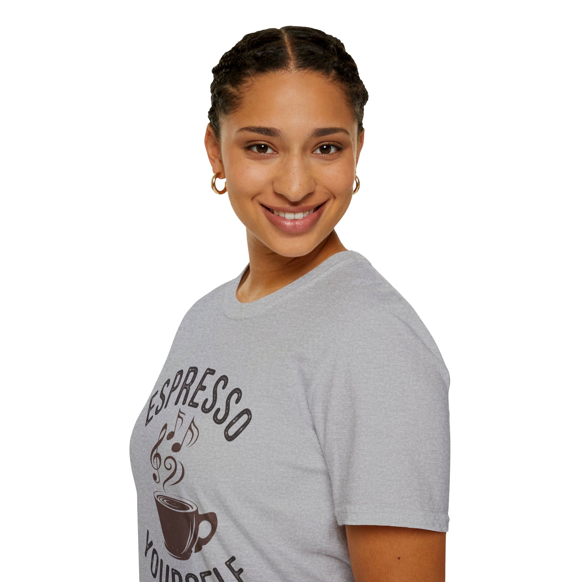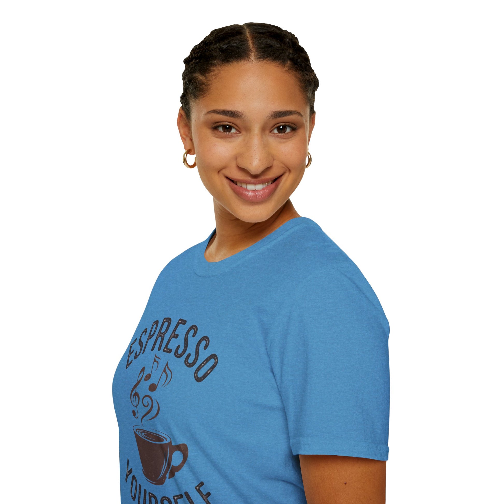 Espresso Yourself T‑Shirt • Funny Coffee Pun Graphic Tee • Musical Espresso Shirt • Caffeine Lover Gift • Coffee Humor Tee for Baristas