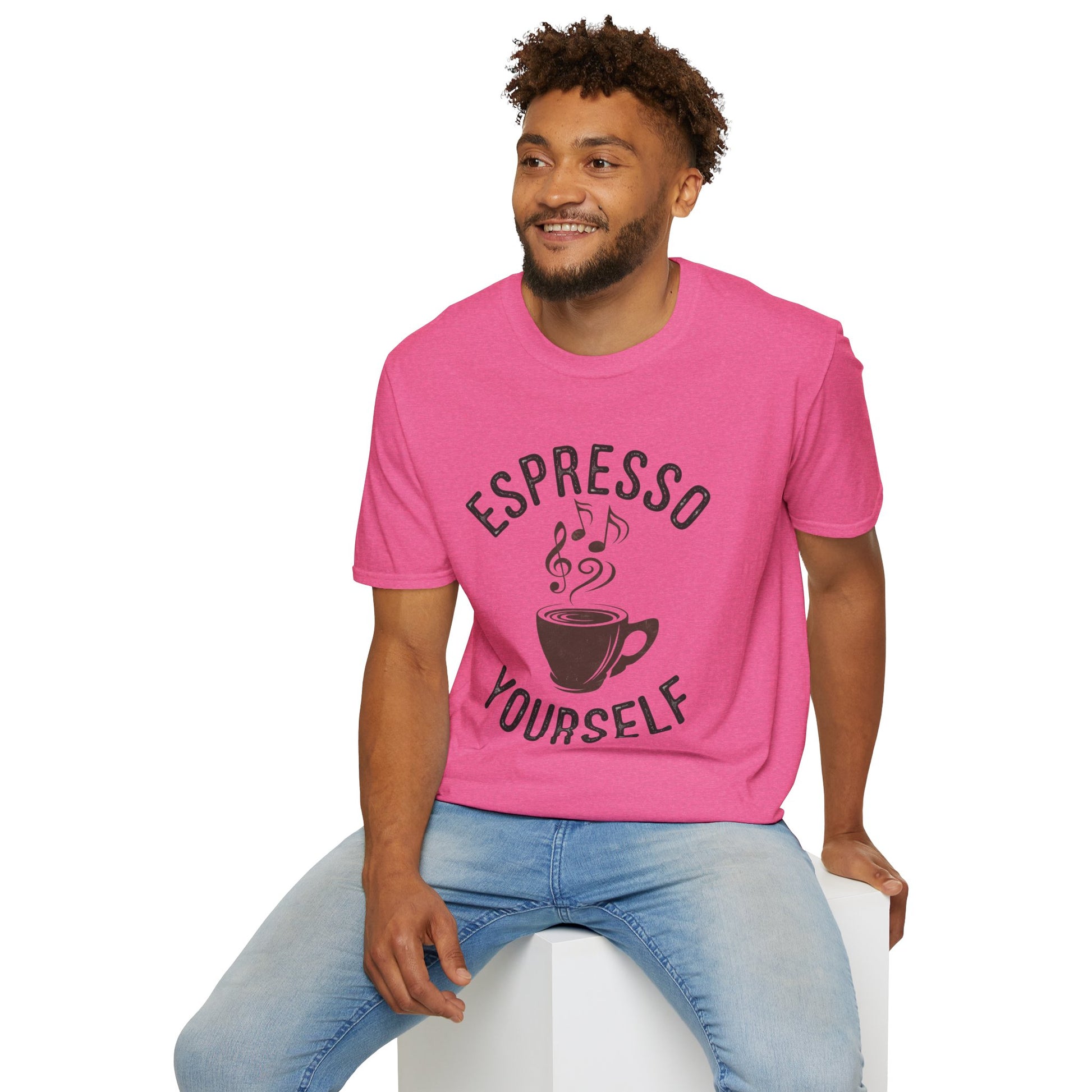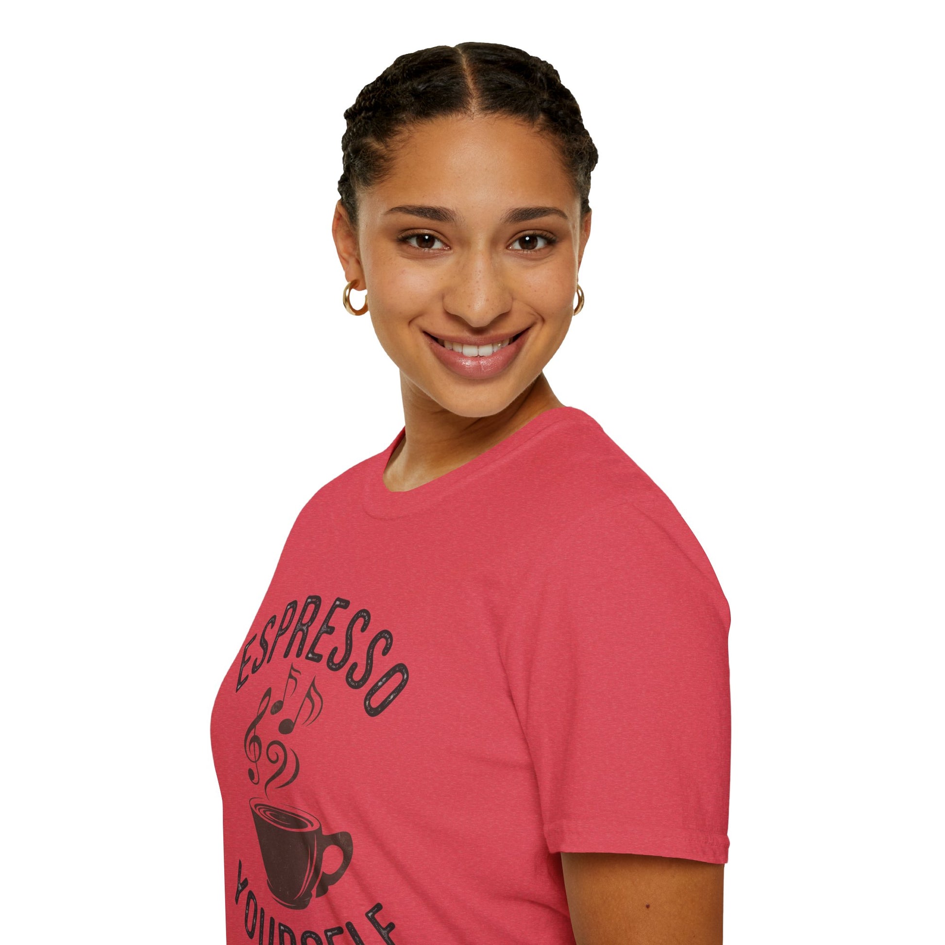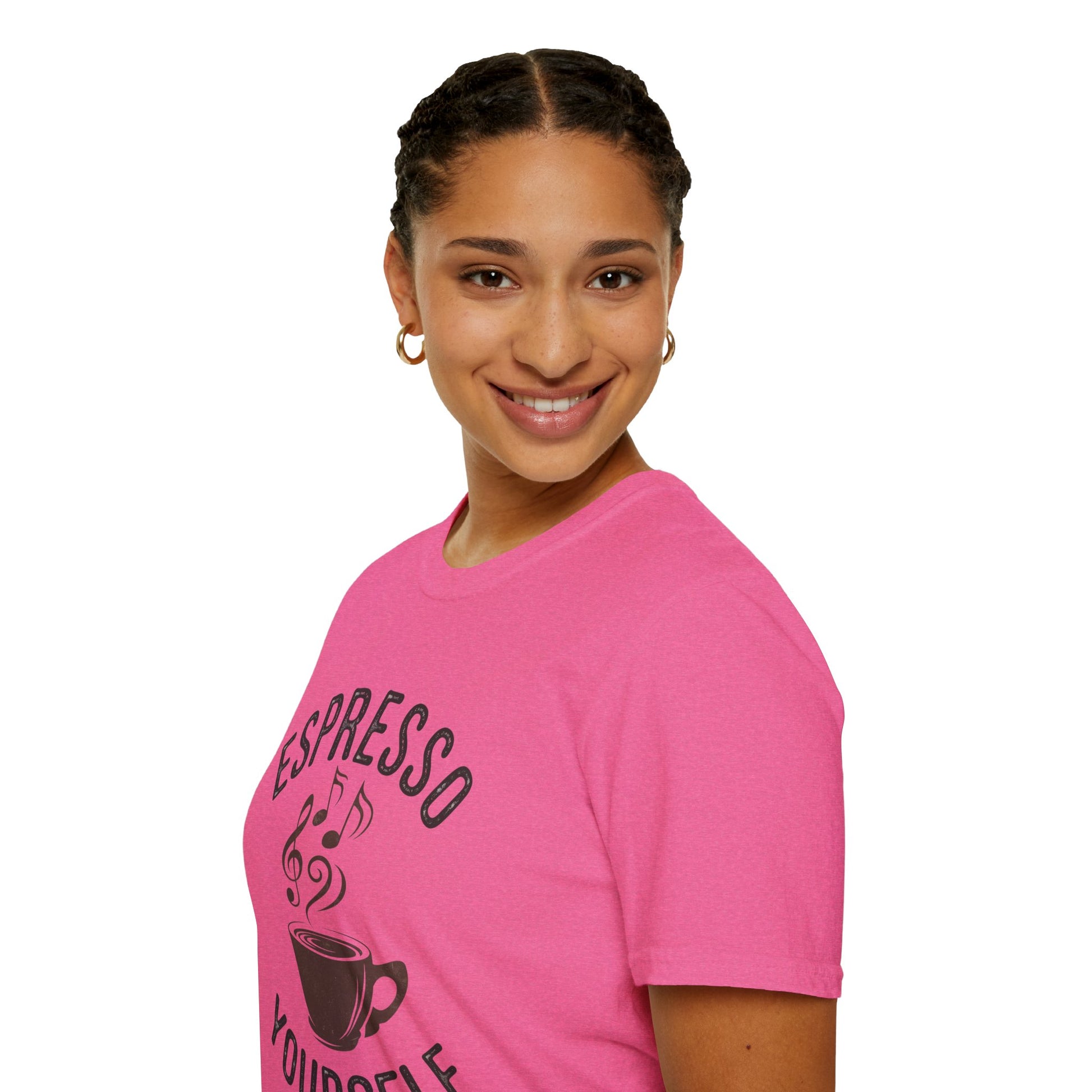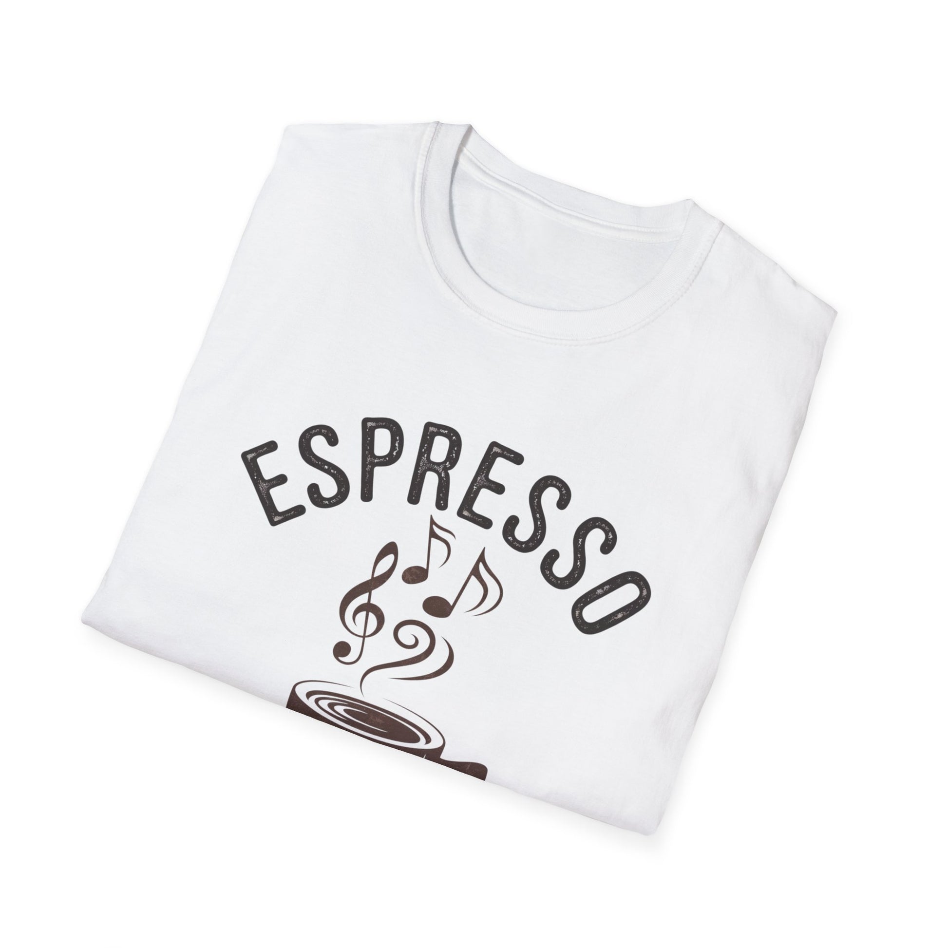 Start your day strong and sassy with our Espresso Yourself T‑Shirt – a perfect blend of music, mocha, and motivation. Featuring a steamy espresso cup with musical notes rising from the brew, this graphic tee hits all the right notes—literally.
