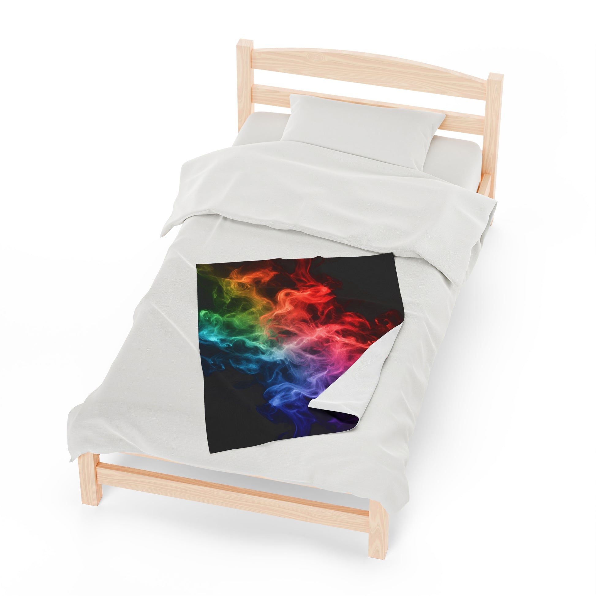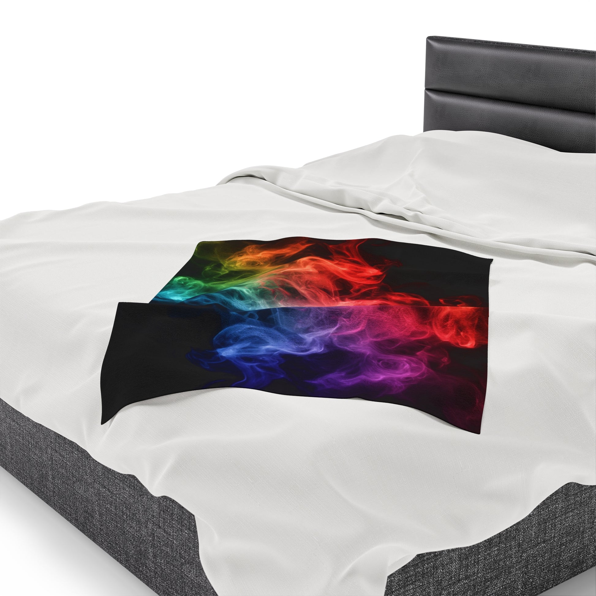 Add a pop of color and whimsy to your home decor with our stunning "Smoke Wave" blanket, featuring a vibrant splash of colorful smoke running across the top. This unique design is sure to captivate and inspire, making it the perfect addition to any room.