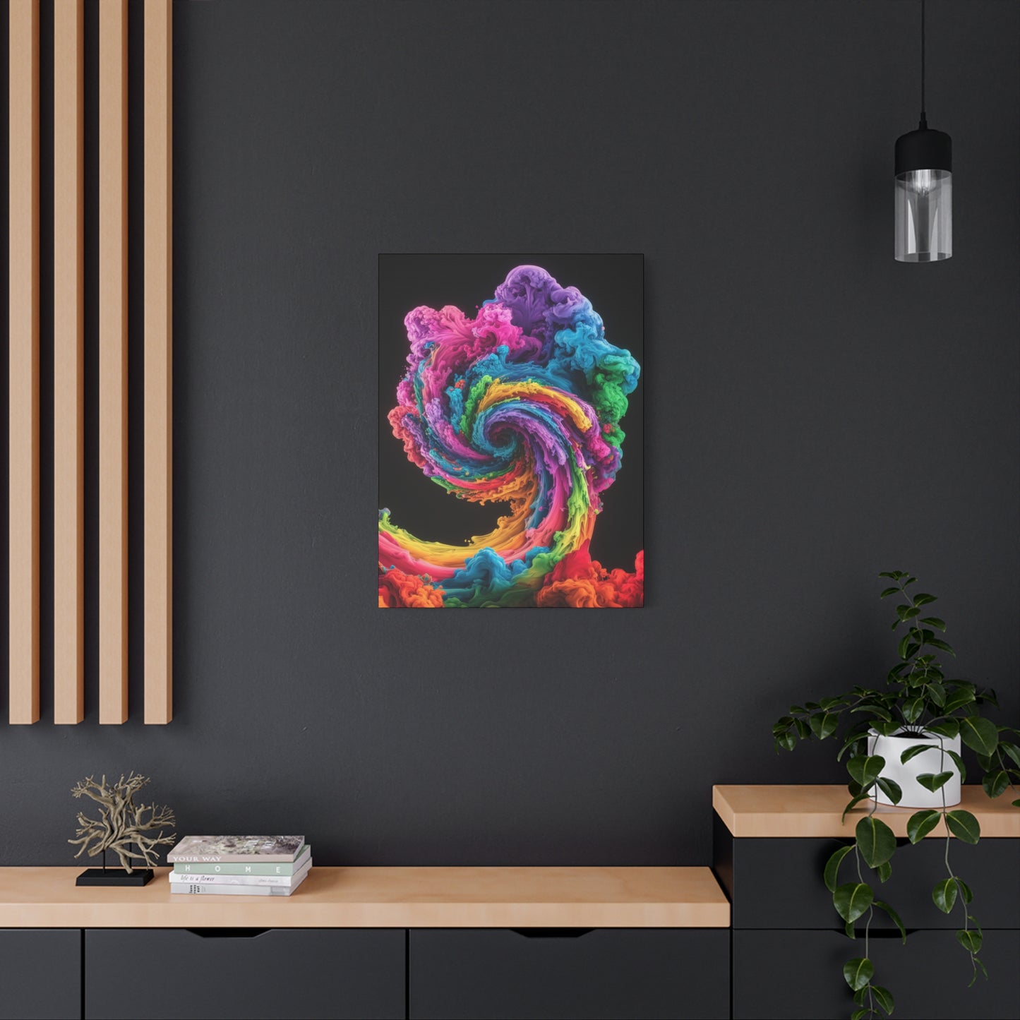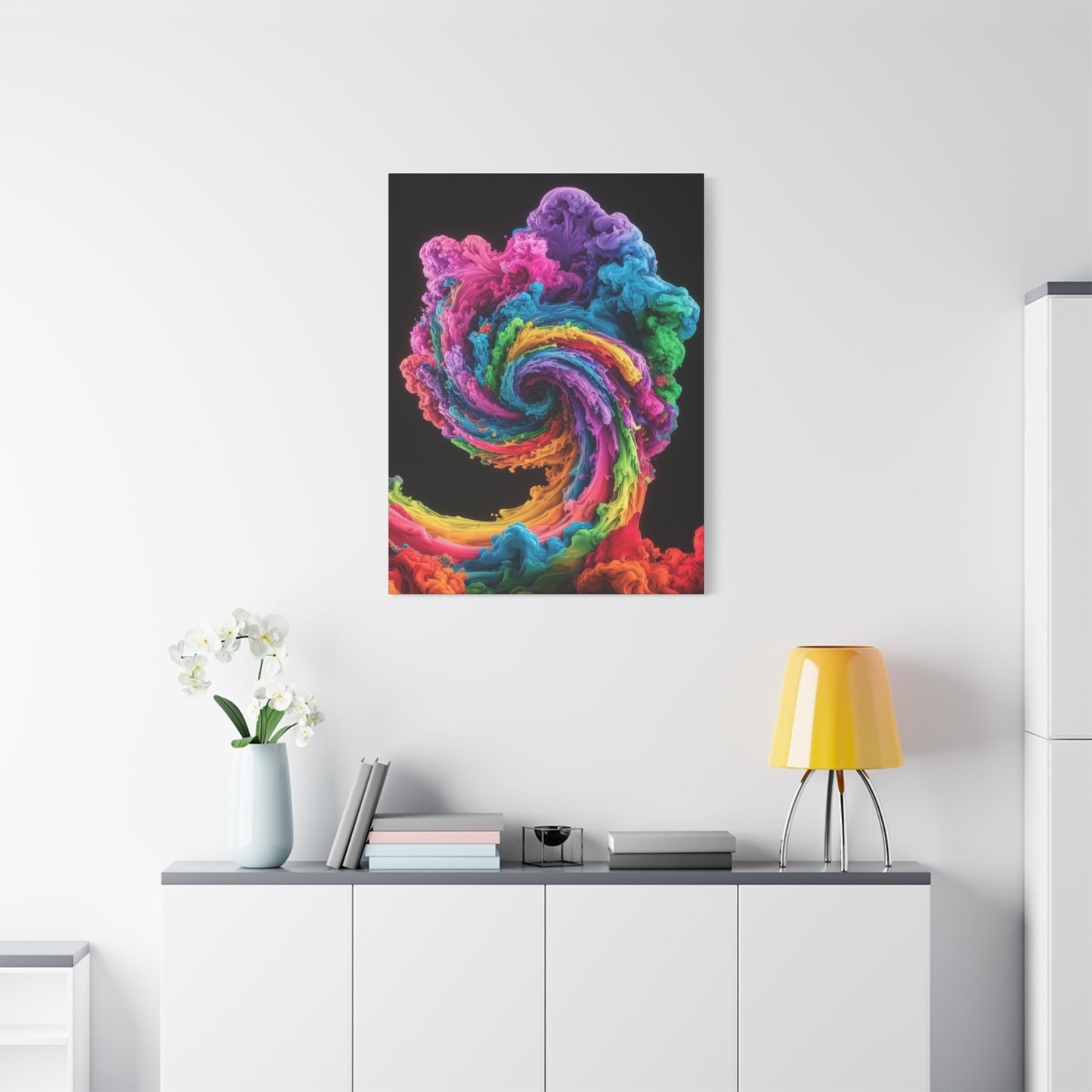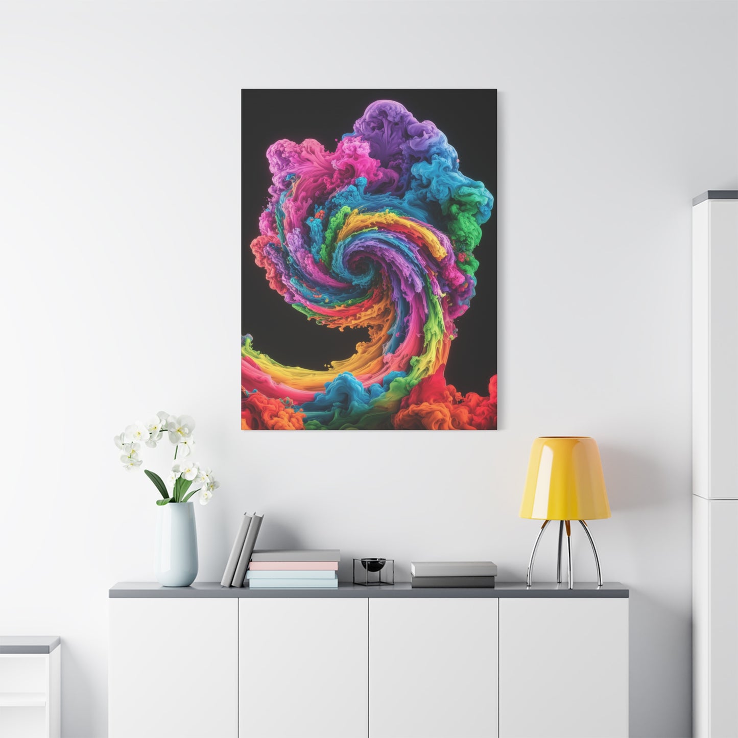 Add a touch of vibrancy and sophistication to your home with this stunning swirling colors wall art!