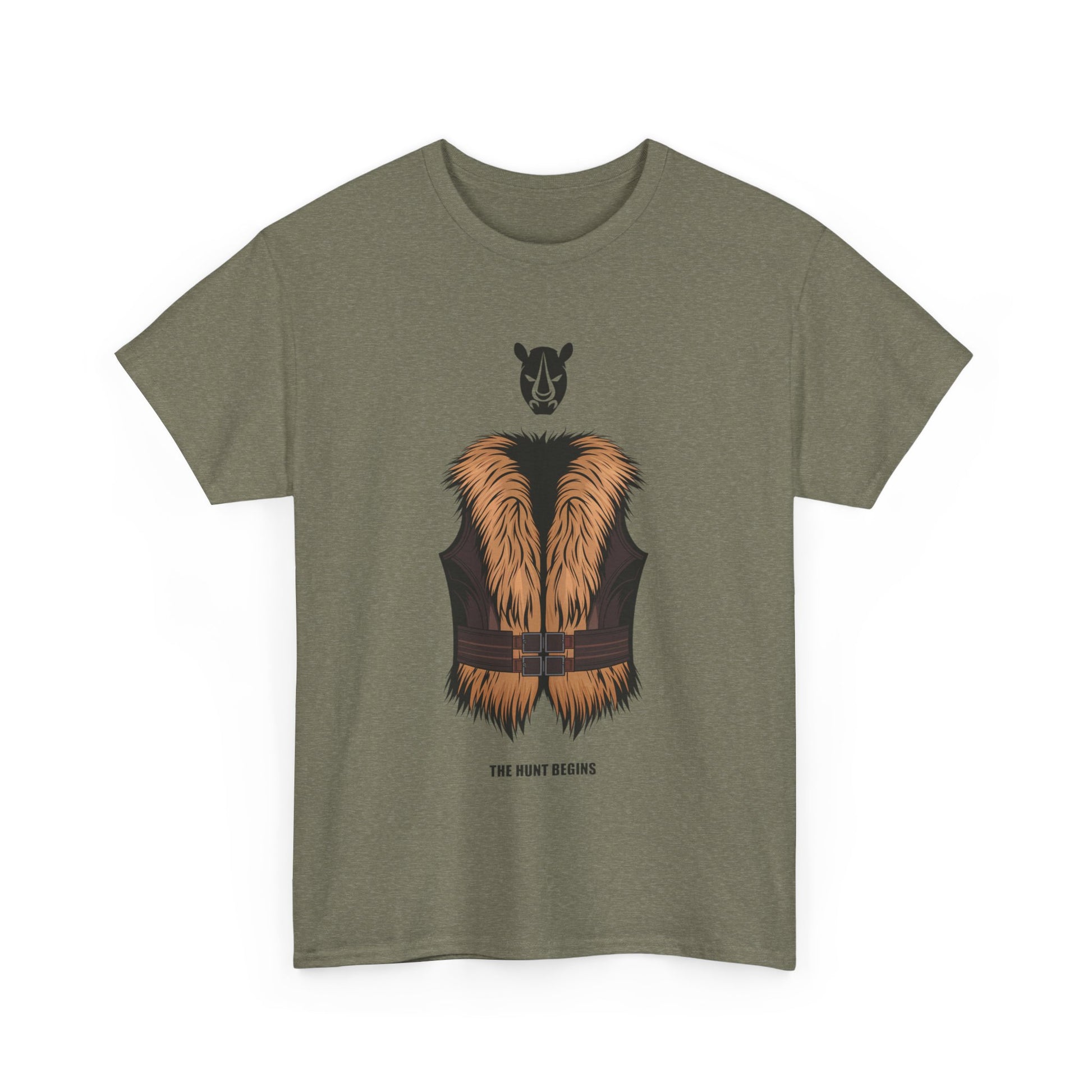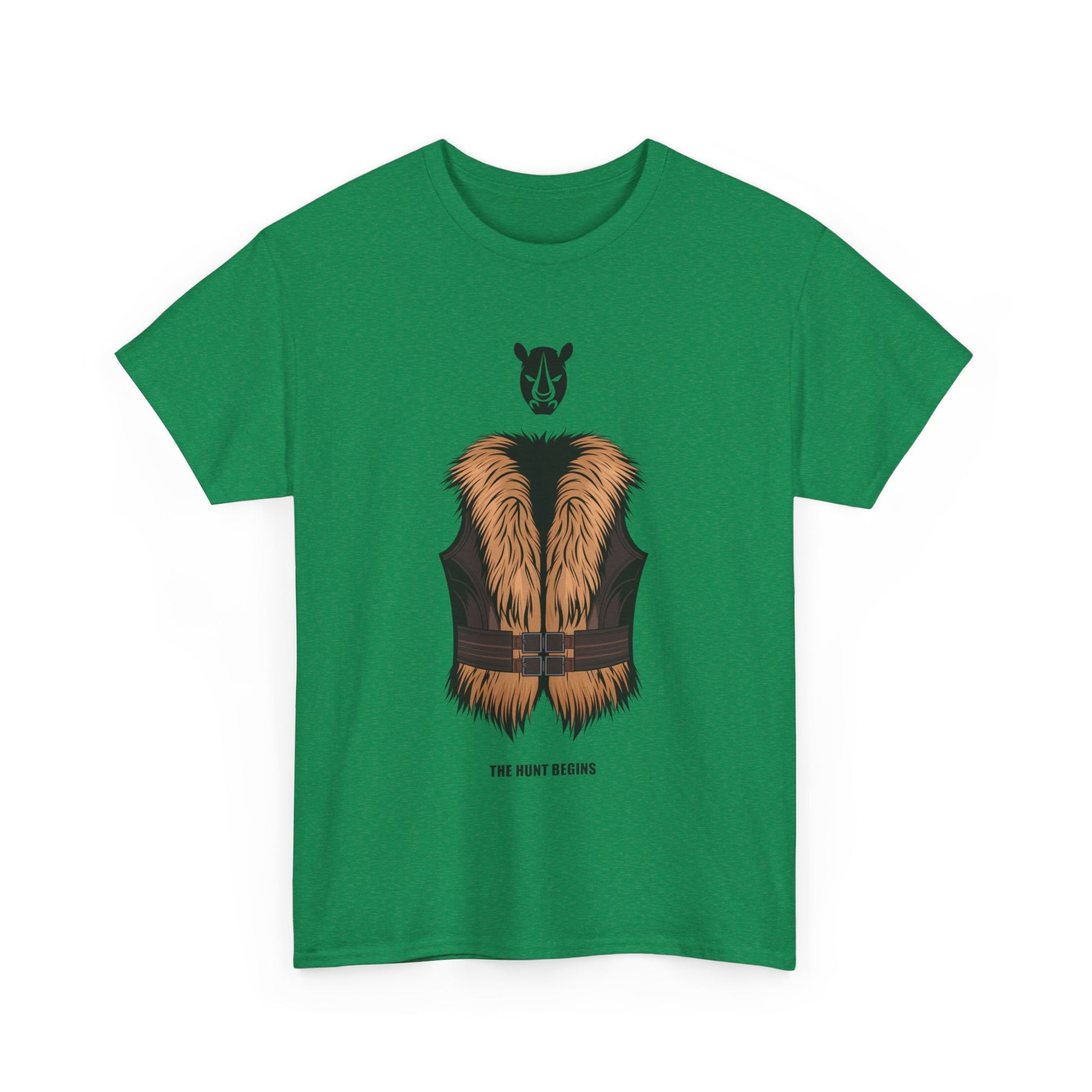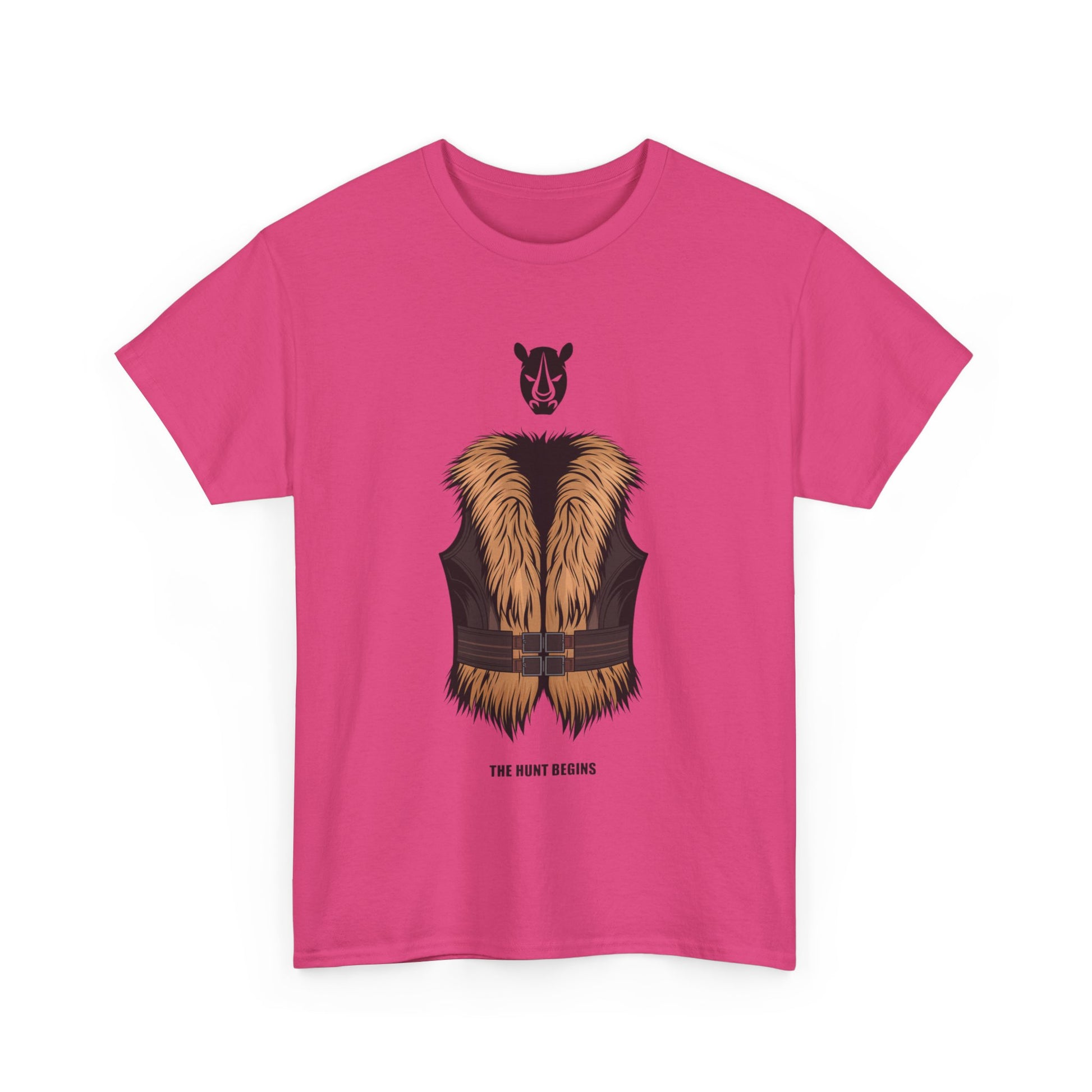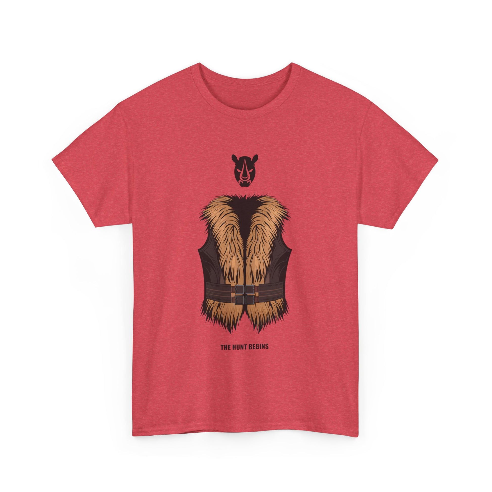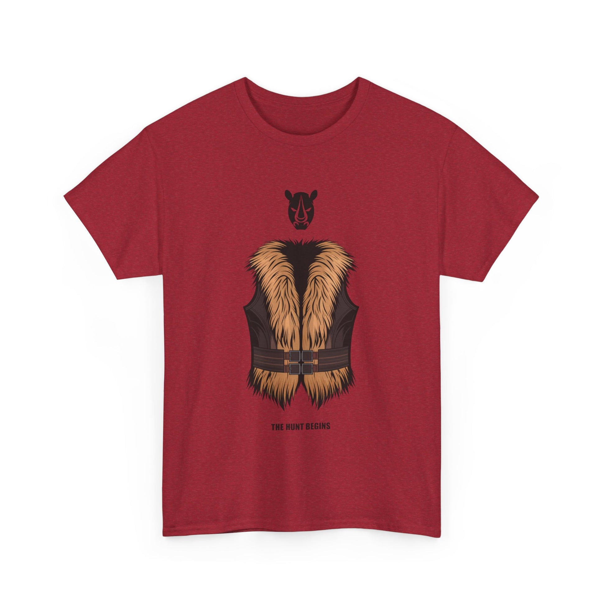 A fun Tee with the classic comic vest that states "The Hunt Begins". It offers a comfy, relaxed wear with a neat, timeless look that can blend into any occasion, casual or semi-formal. Perfect for those who enjoy playful and trendy designs. Relevant for casual wear, gifting on birthdays, comic-con events, and casual hangouts with friends.
