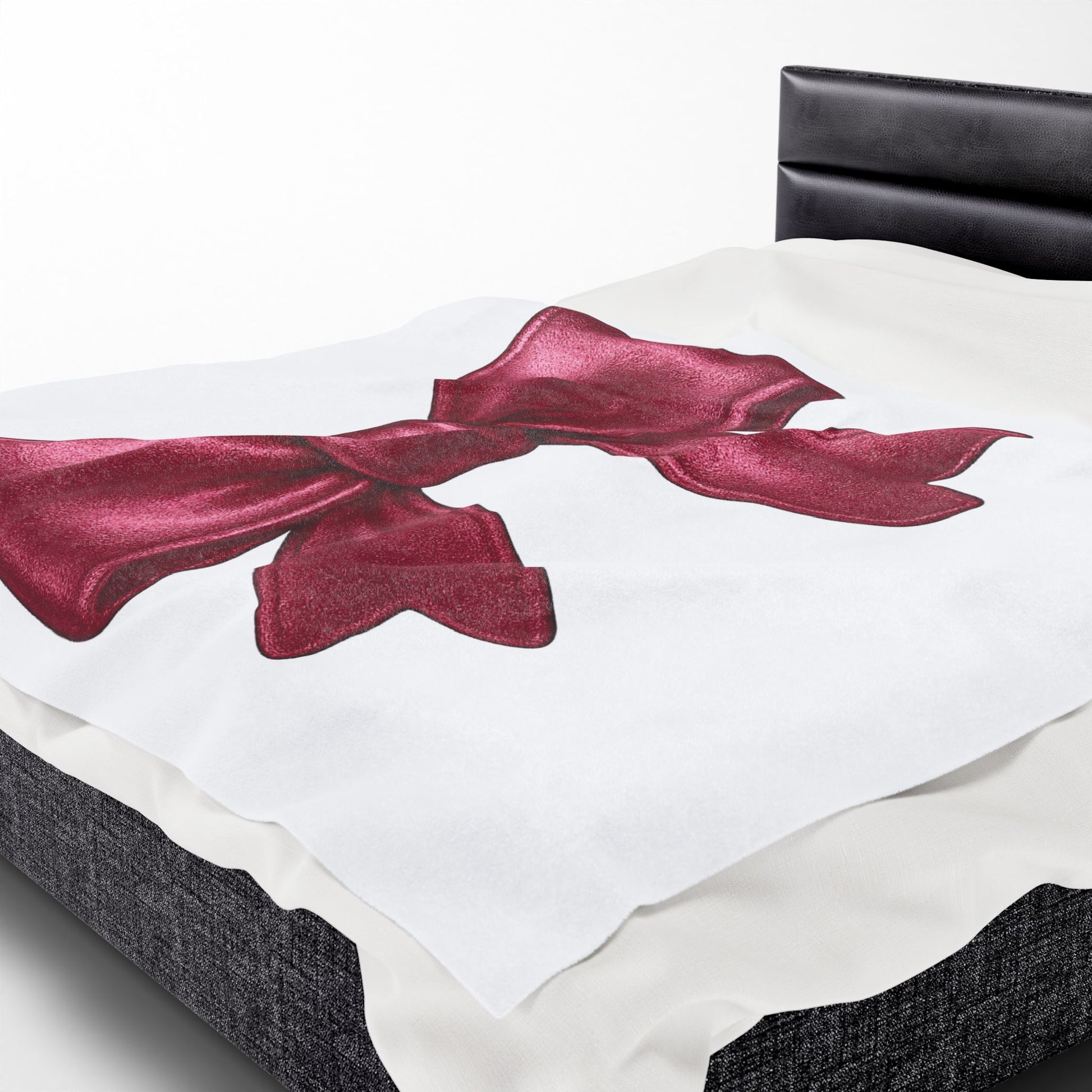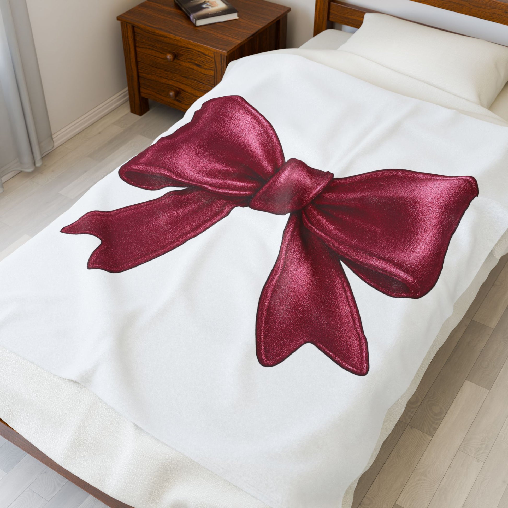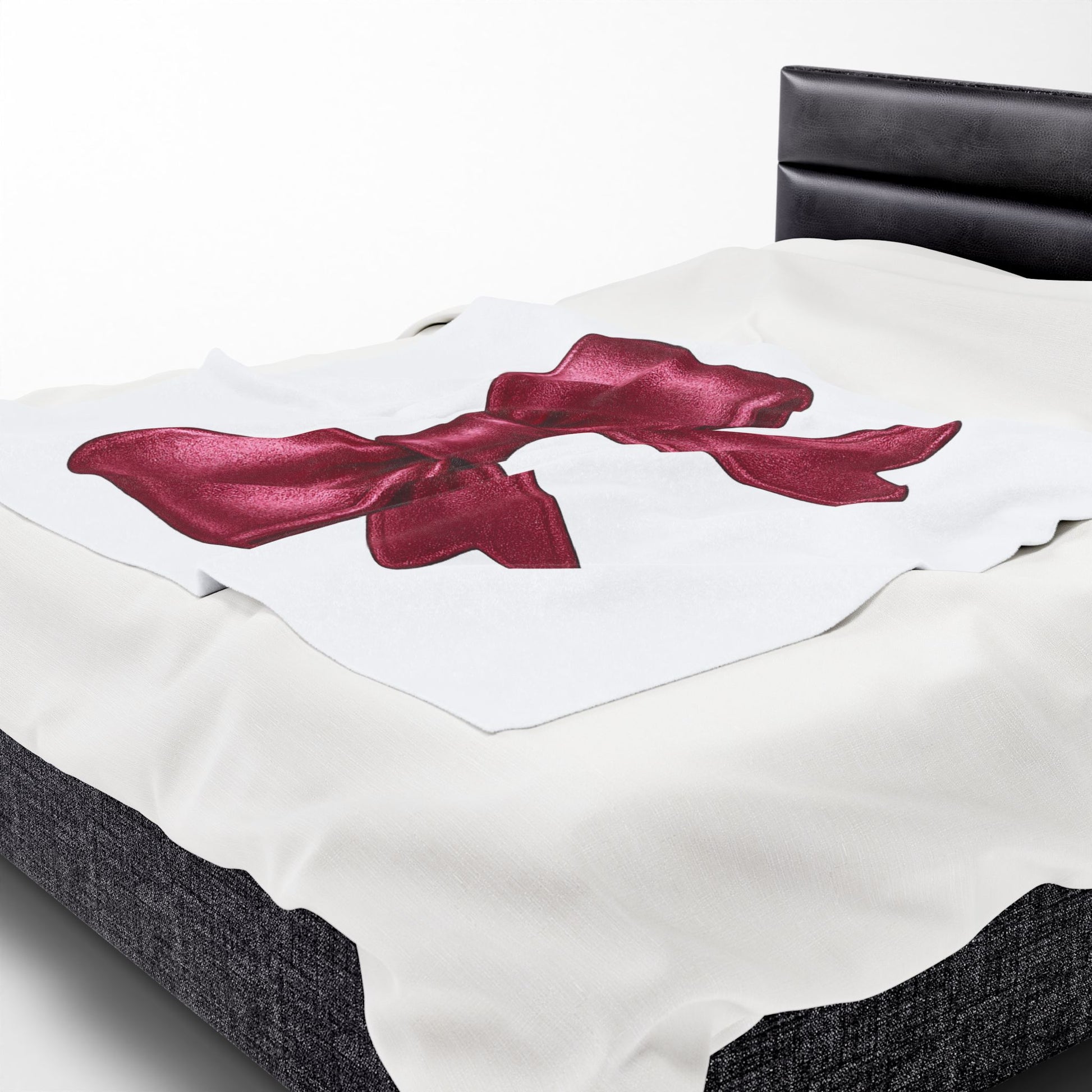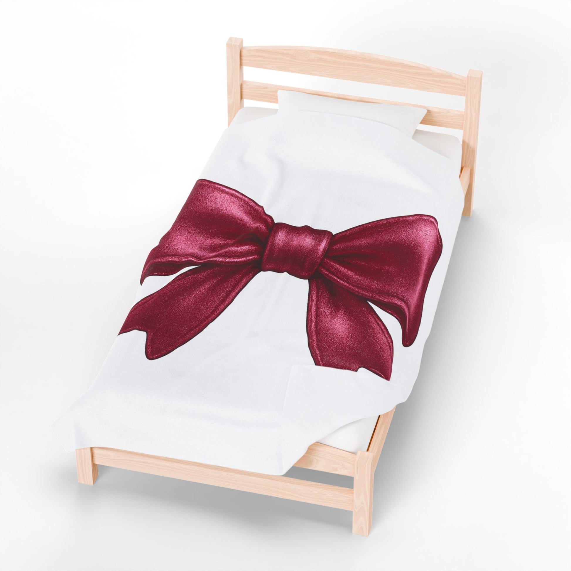 Coquette Bow Blanket – Burgundy Ribbon Throw Blanket, Girly Aesthetic Gift, Soft Cozy Bed or Couch Decor