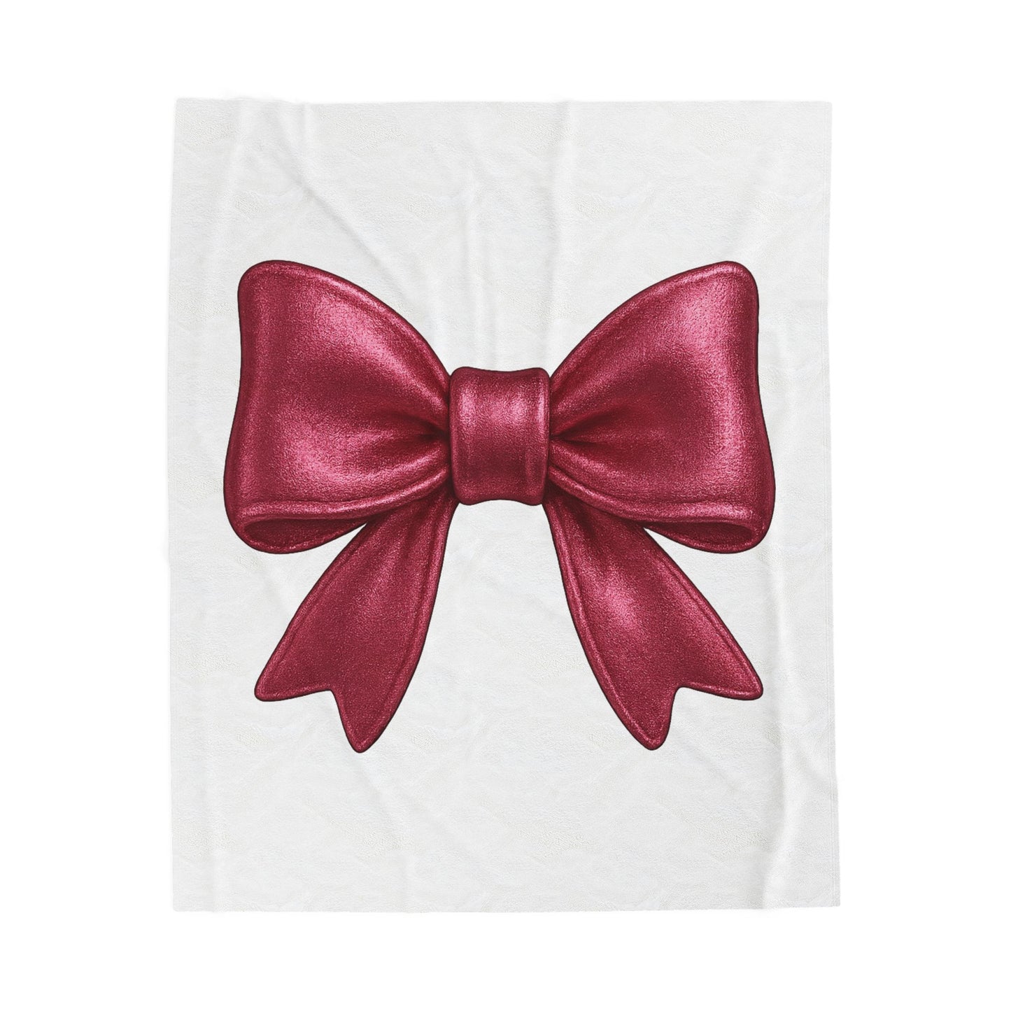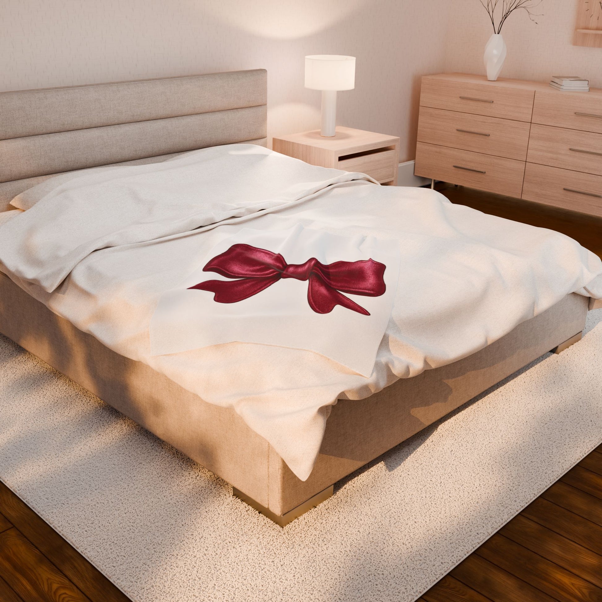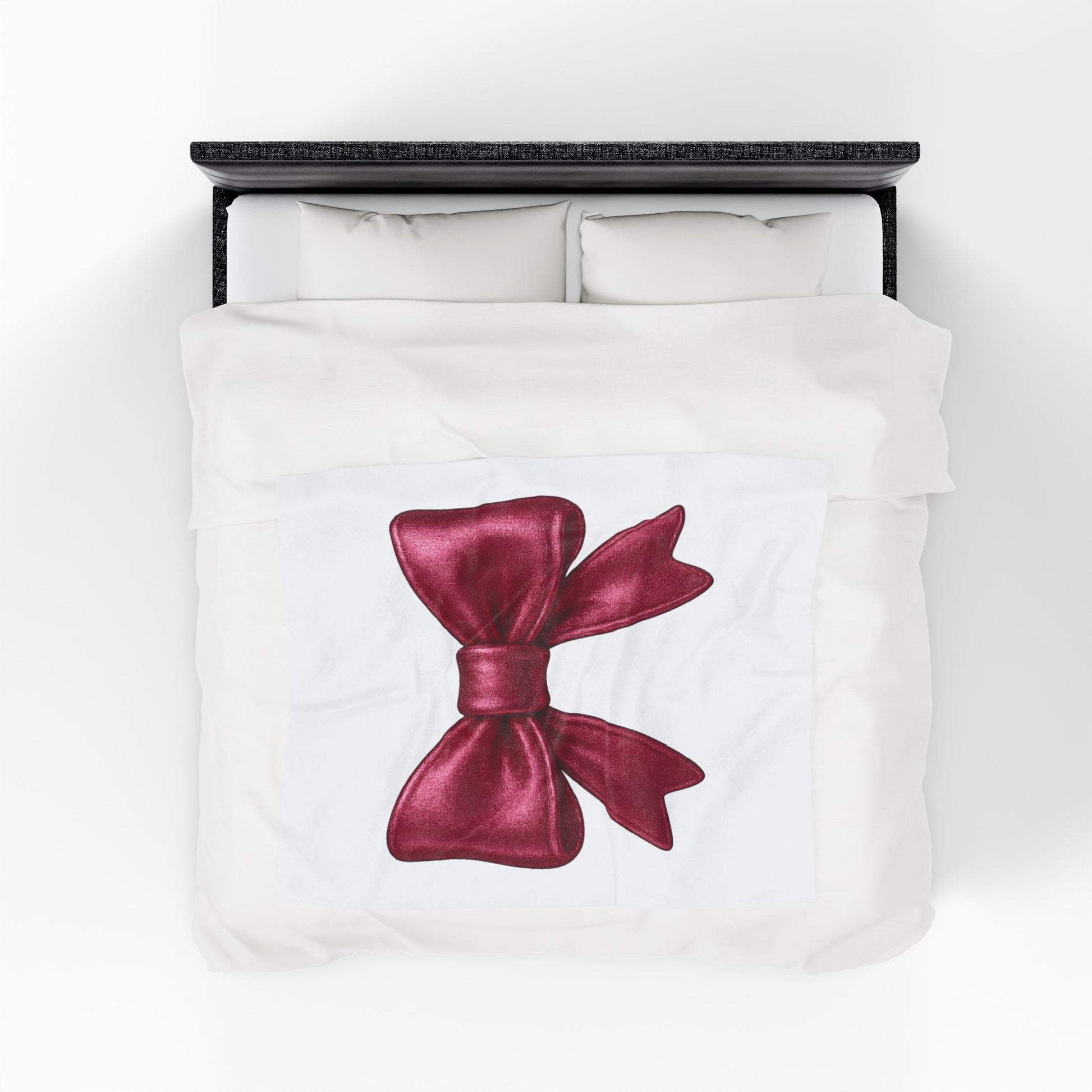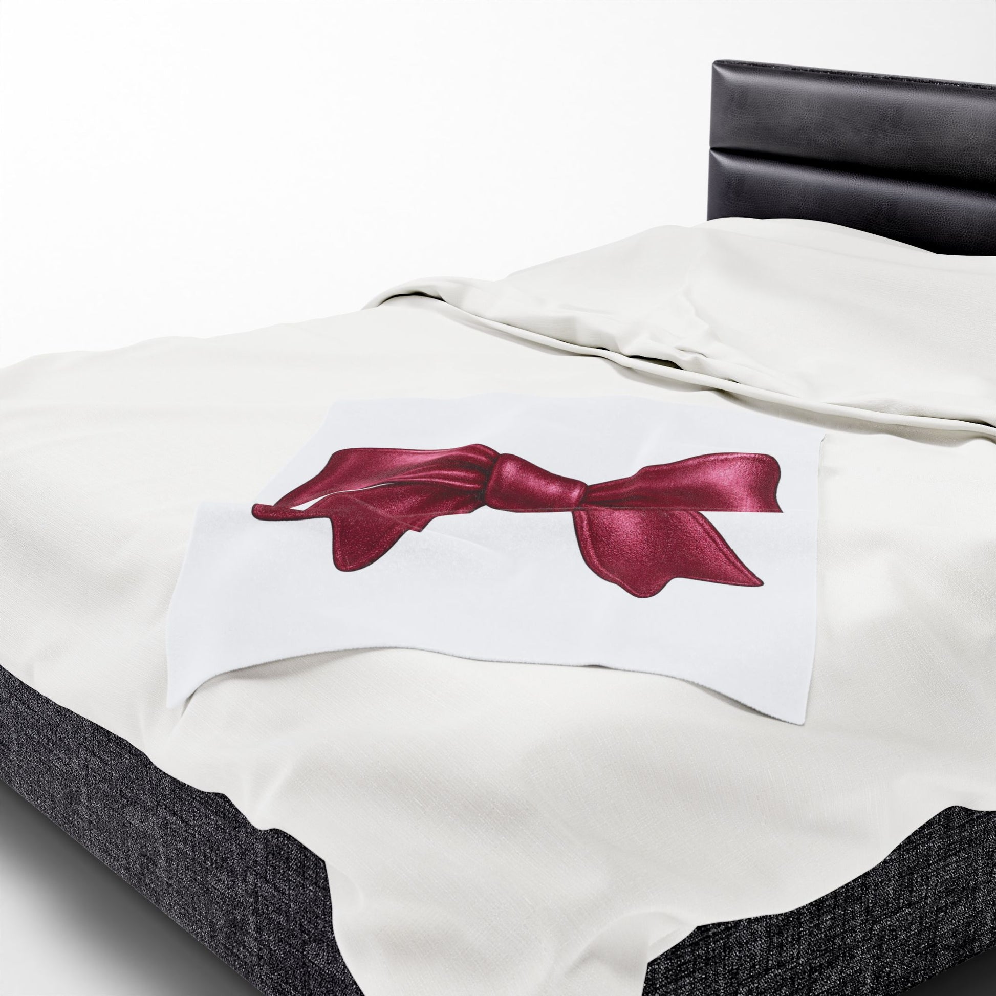 Coquette Bow Blanket – Burgundy Ribbon Throw Blanket, Girly Aesthetic Gift, Soft Cozy Bed or Couch Decor