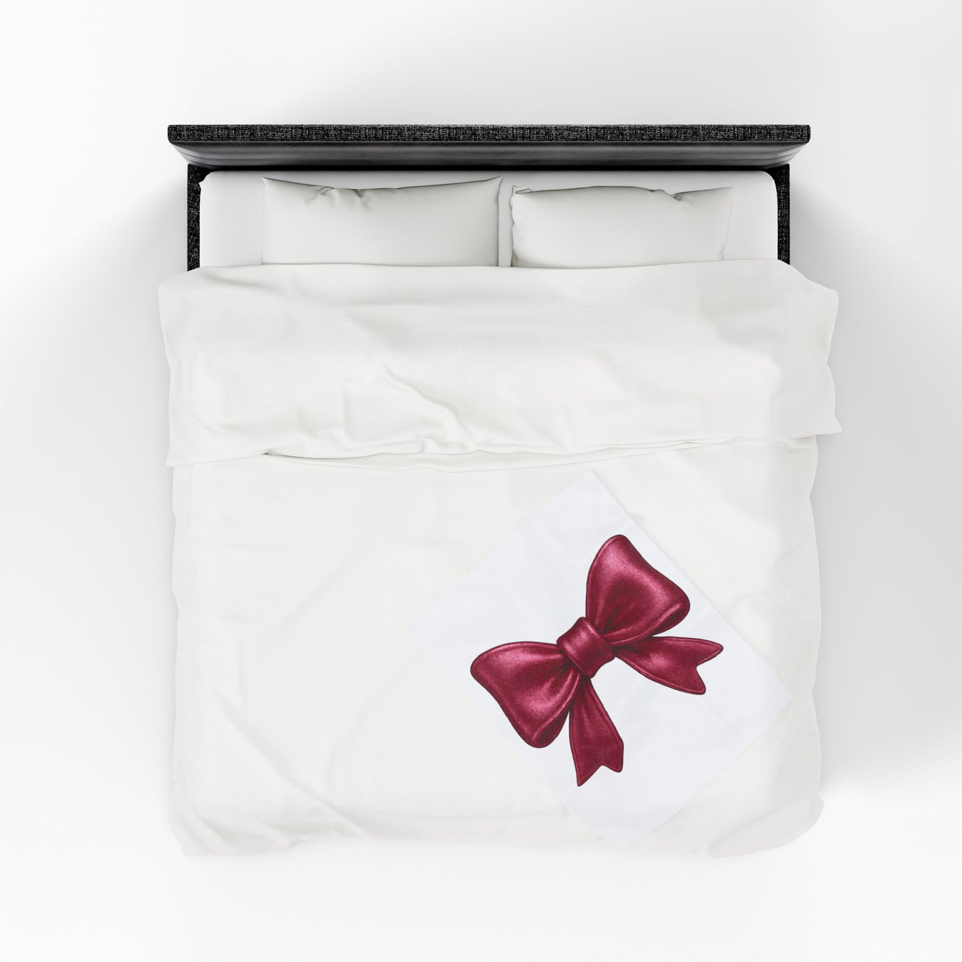 This ultra-soft blanket features a large, glossy burgundy bow on a clean white background—an eye-catching piece that blends comfort with style. Whether draped on your bed, couch, or vanity chair, it's the perfect cozy touch for anyone who loves a soft girl or coquette-inspired room.