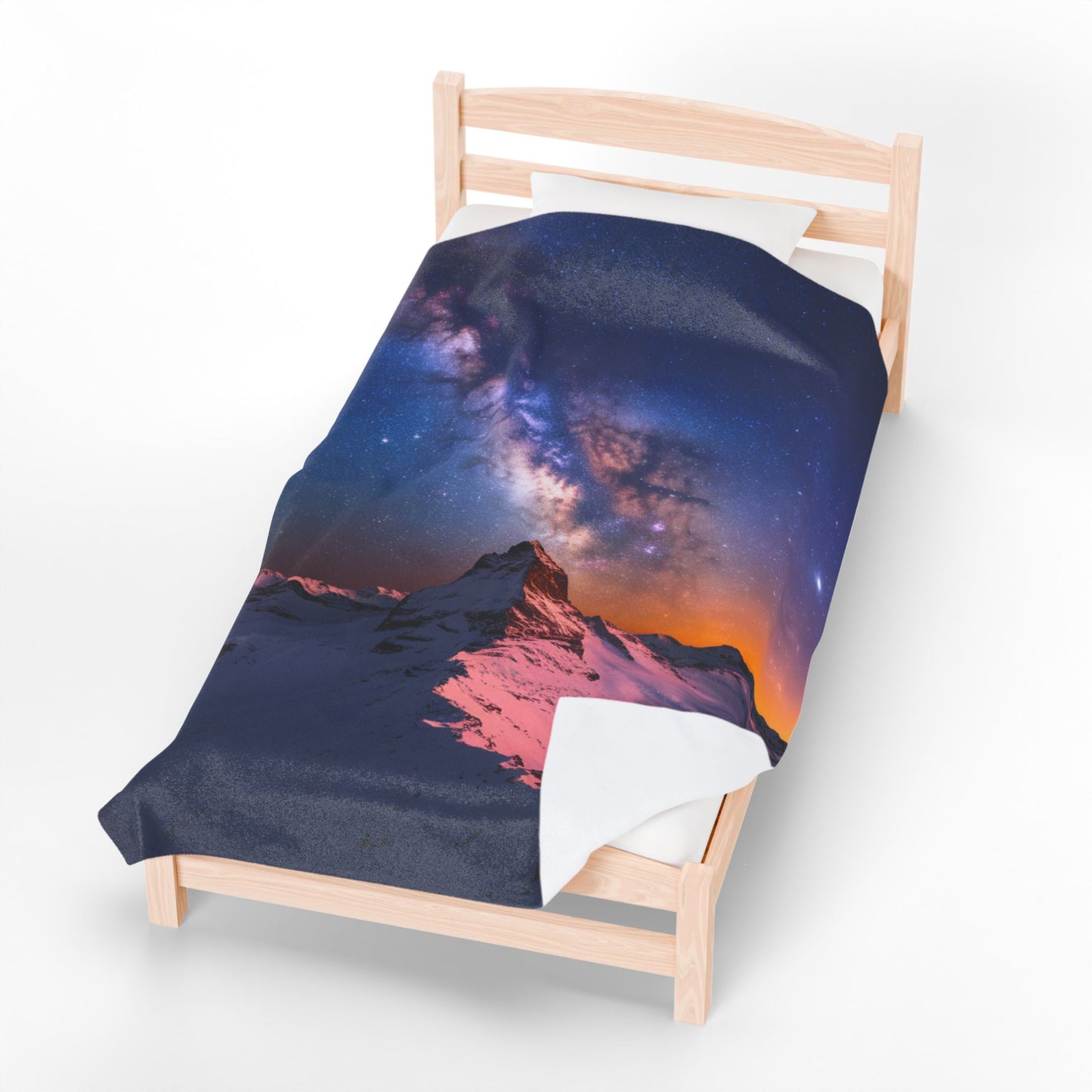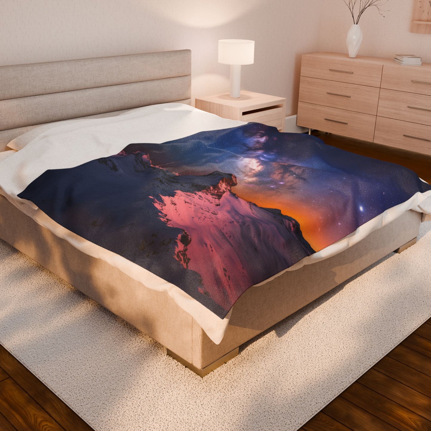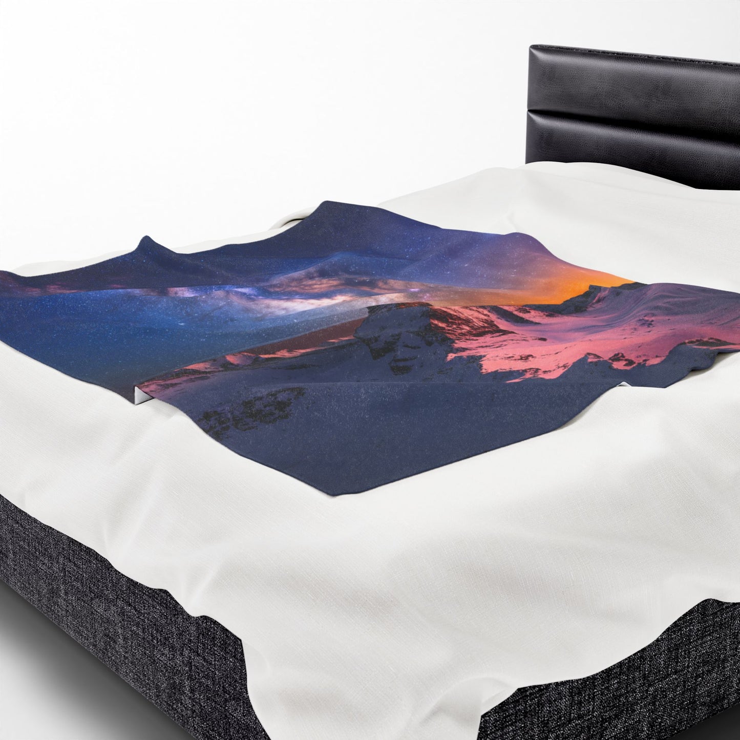 Cosmic Mountain Velveteen Plush Blanket Soft & Cozy Starry Night Throw for Home Decor