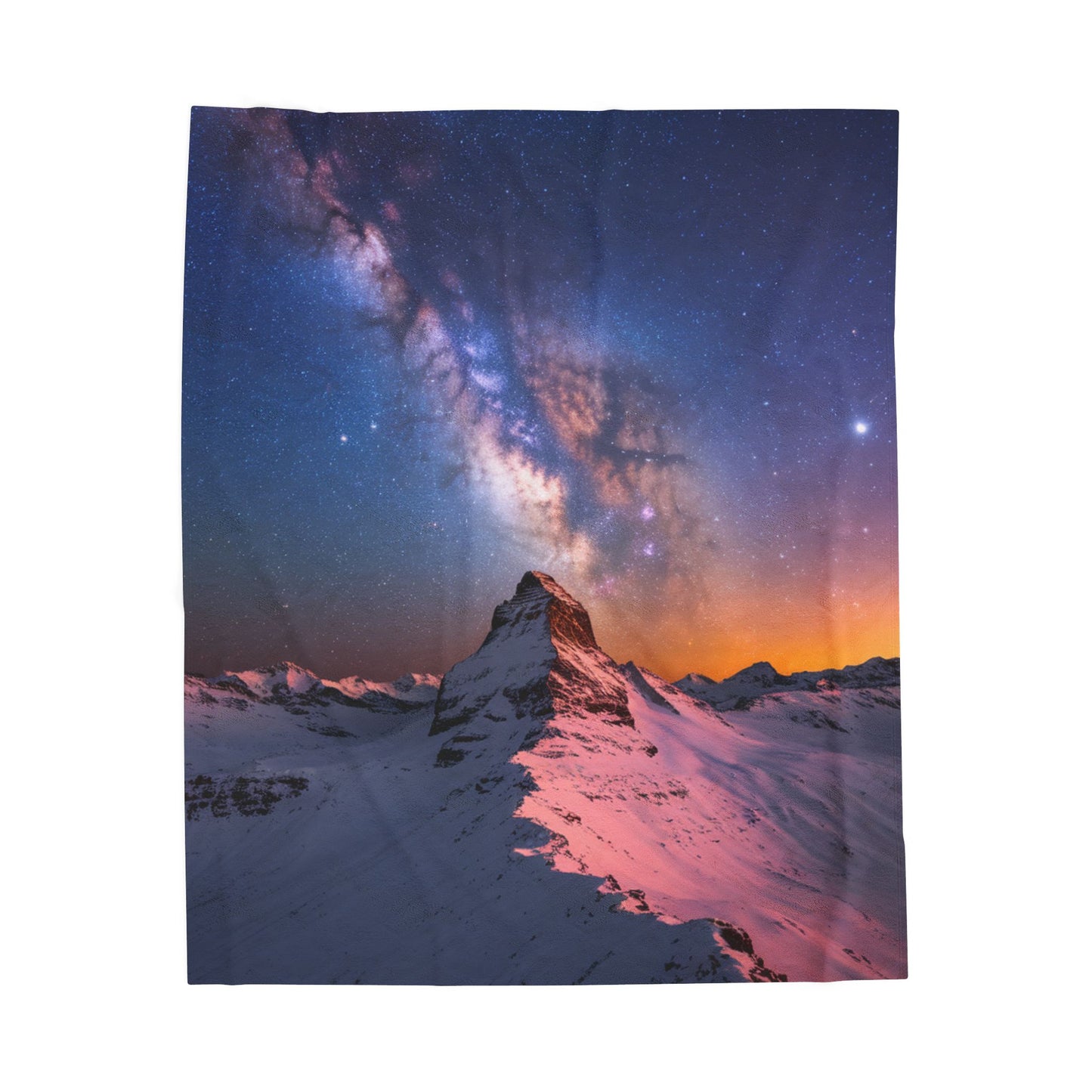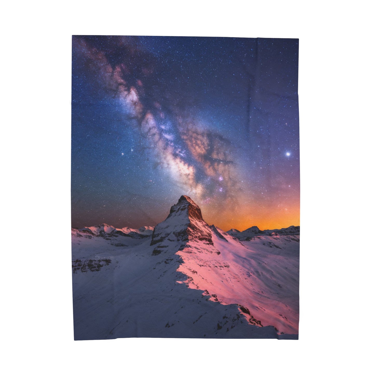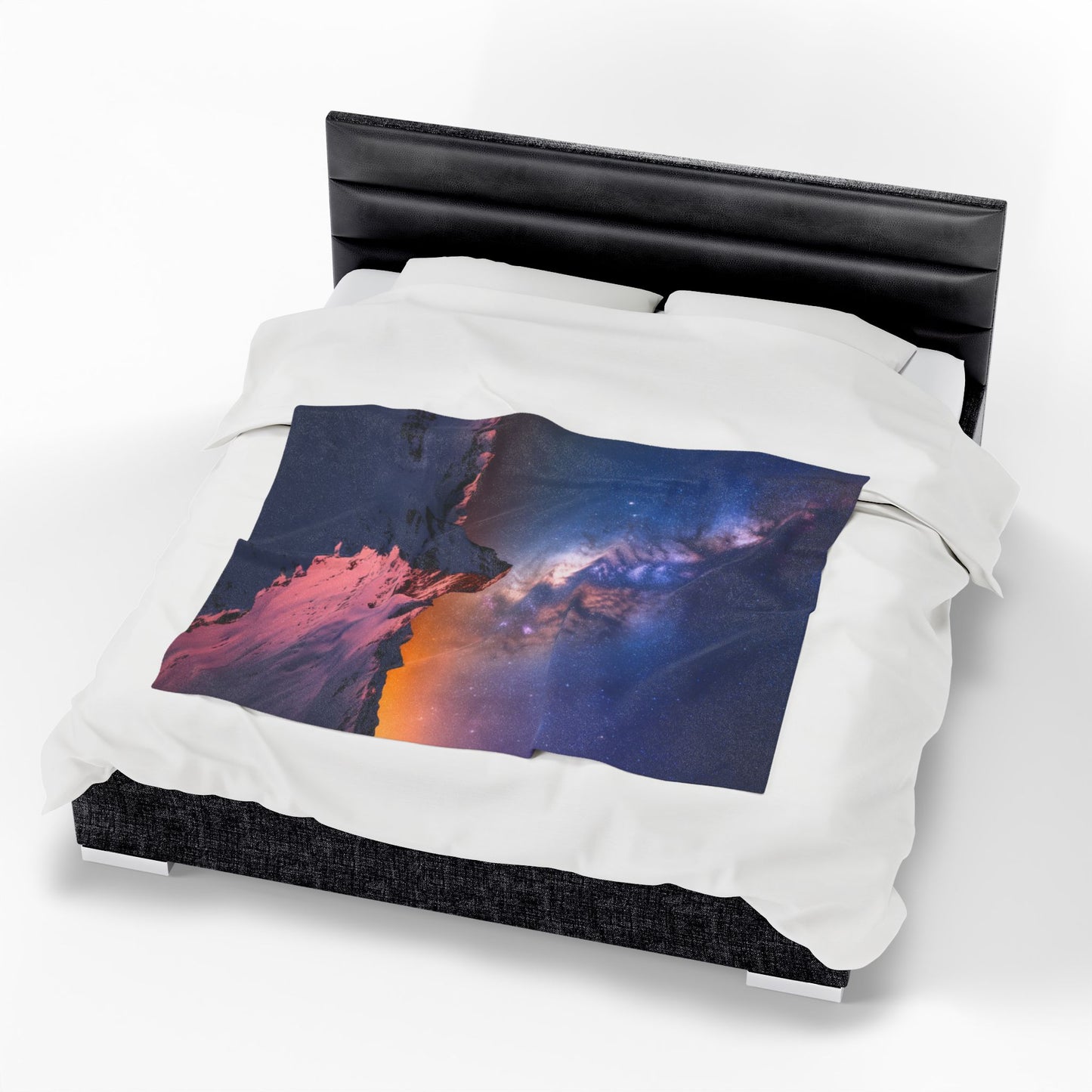 Cosmic Mountain Velveteen Plush Blanket Soft & Cozy Starry Night Throw for Home Decor