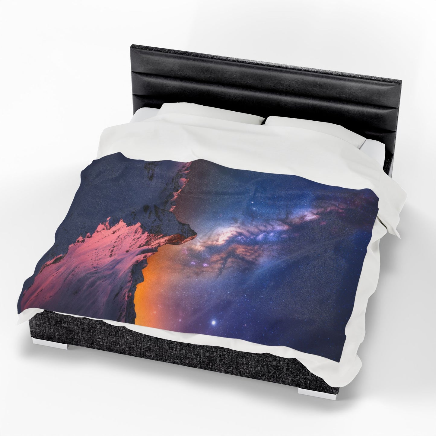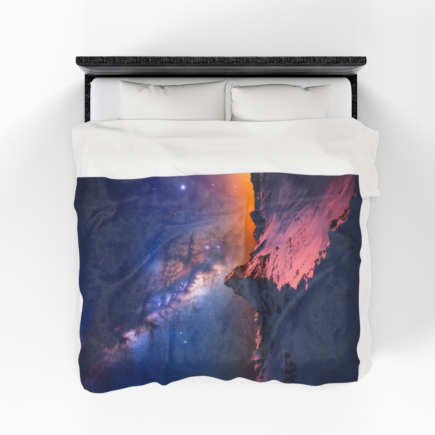 Wrap yourself in the beauty of the cosmos with our Milky Way Mountain Peak Blanket! This luxurious blanket features a breathtaking design of a pink-hued mountain peak under a vibrant Milky Way galaxy. Perfect for stargazers, adventurers, and dreamers, it’s not just a blanket—it’s a statement piece for your home. Whether you’re curling up on the couch or adding a celestial touch to your bedroom, this blanket combines comfort and artistry like no other.