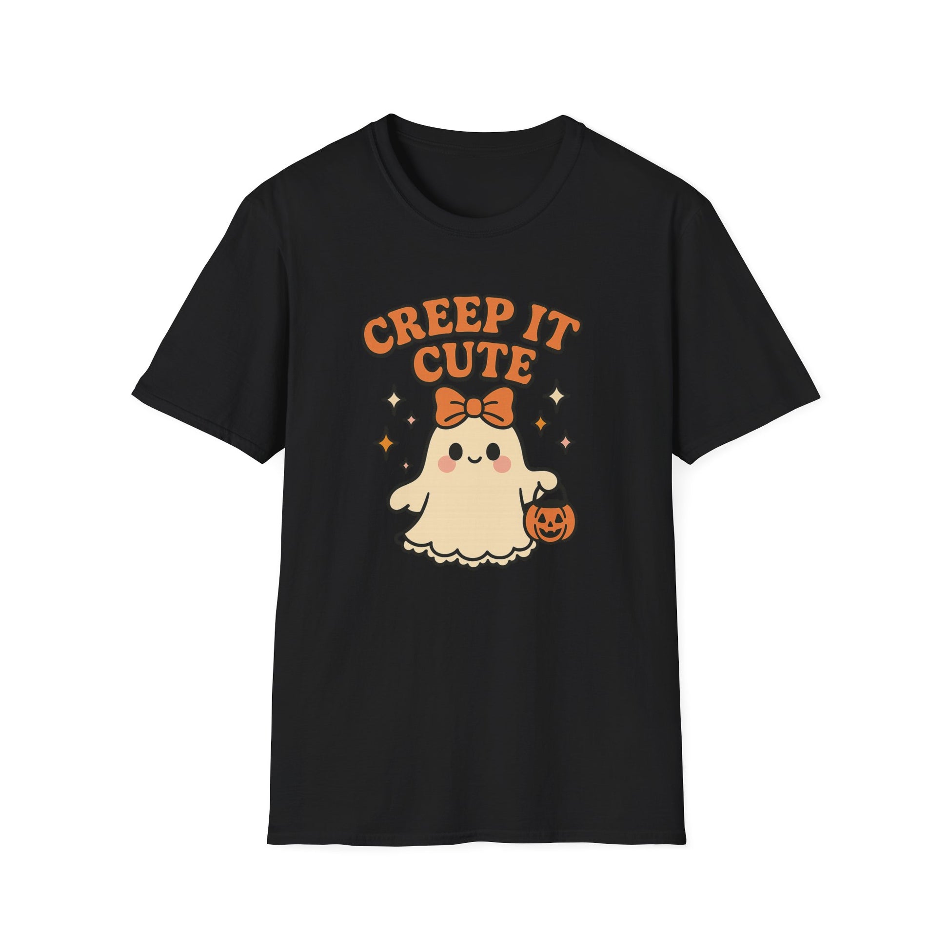 Creep It Cute Ghost Halloween Shirt - Kawaii Ghost Tee with Bow and Pumpkin, Spooky-Cute Fall Graphic T-Shirt, Spooky Season Halloween Top