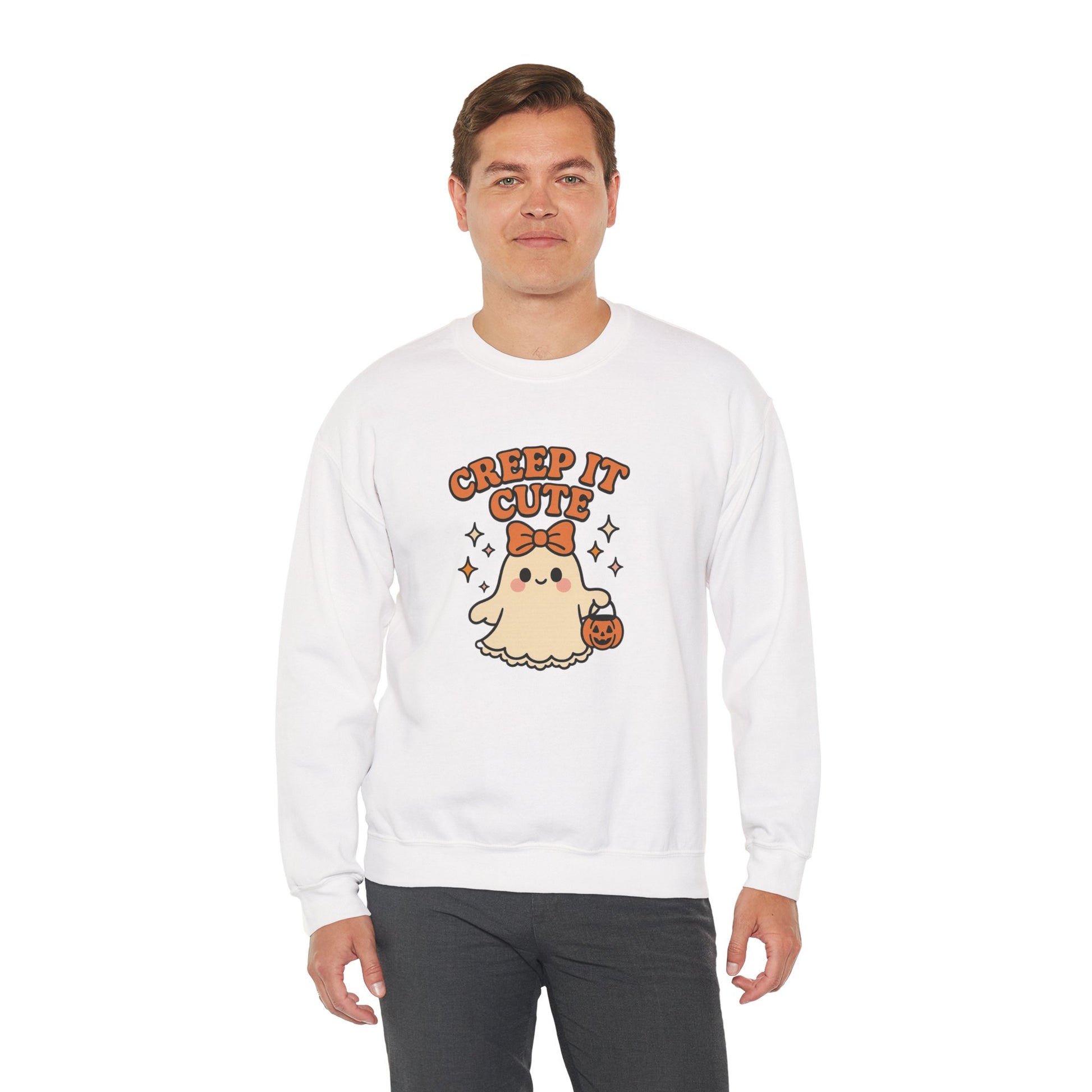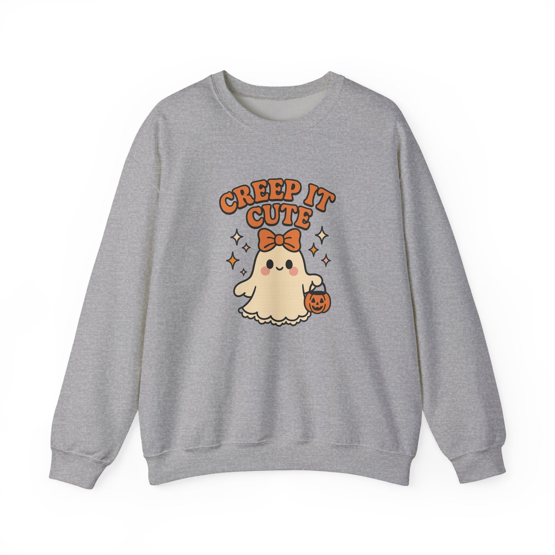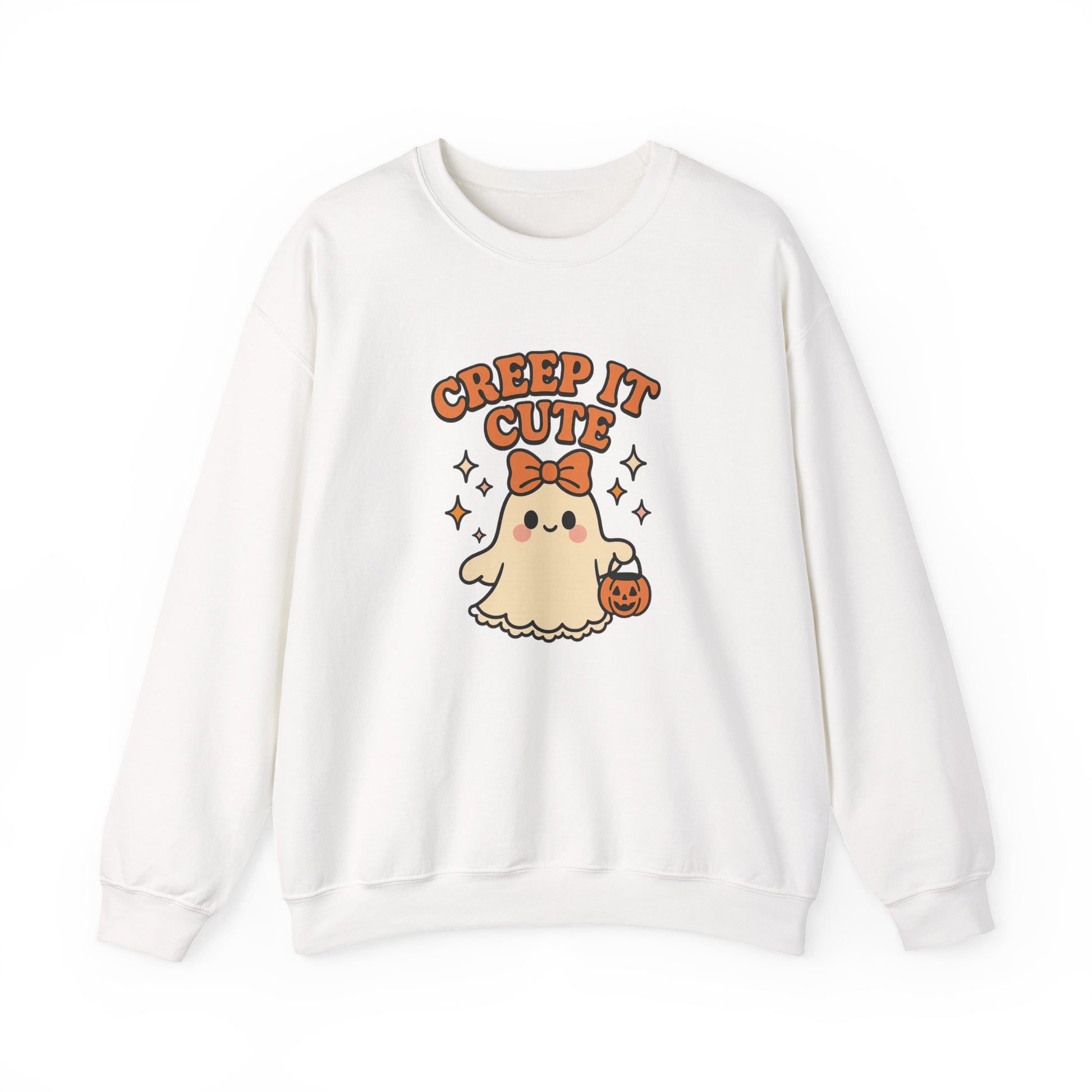 Cute Ghost Sweatshirt, Creep It Cute Crewneck, Spooky Halloween Pullover, Sweet Ghost Graphic Sweatshirt, Trick-Or-Treat Gift Top