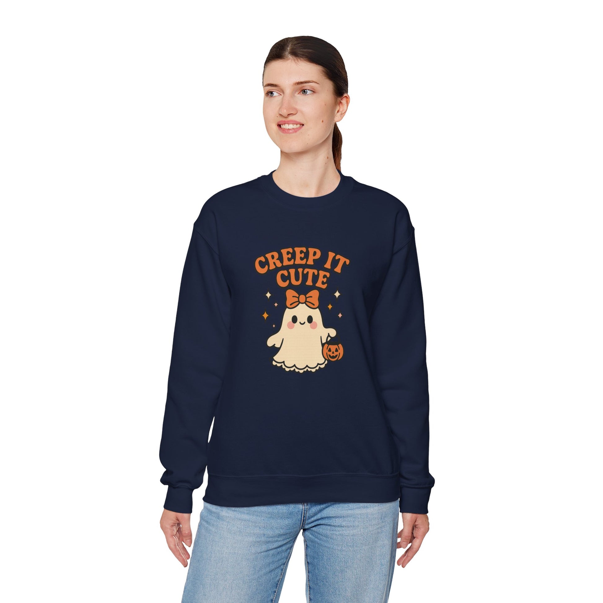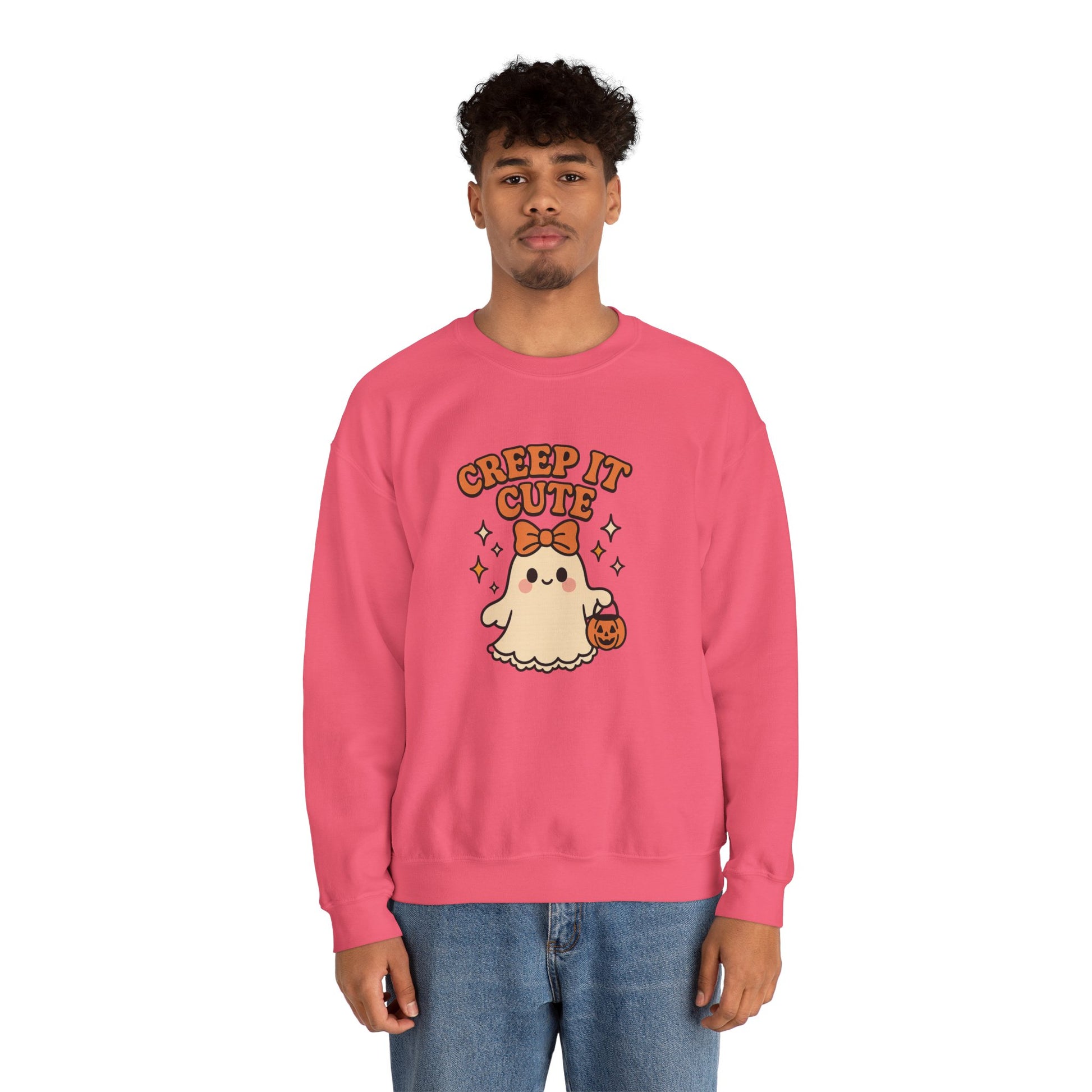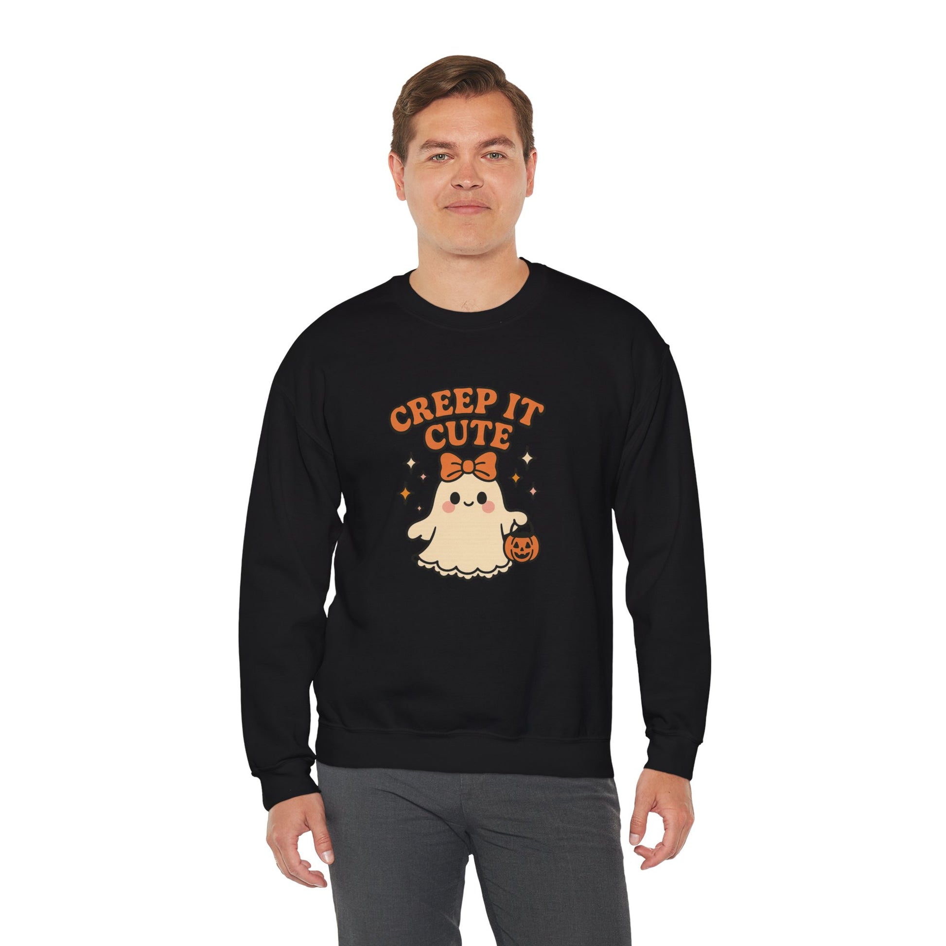Cute Ghost Sweatshirt, Creep It Cute Crewneck, Spooky Halloween Pullover, Sweet Ghost Graphic Sweatshirt, Trick-Or-Treat Gift Top