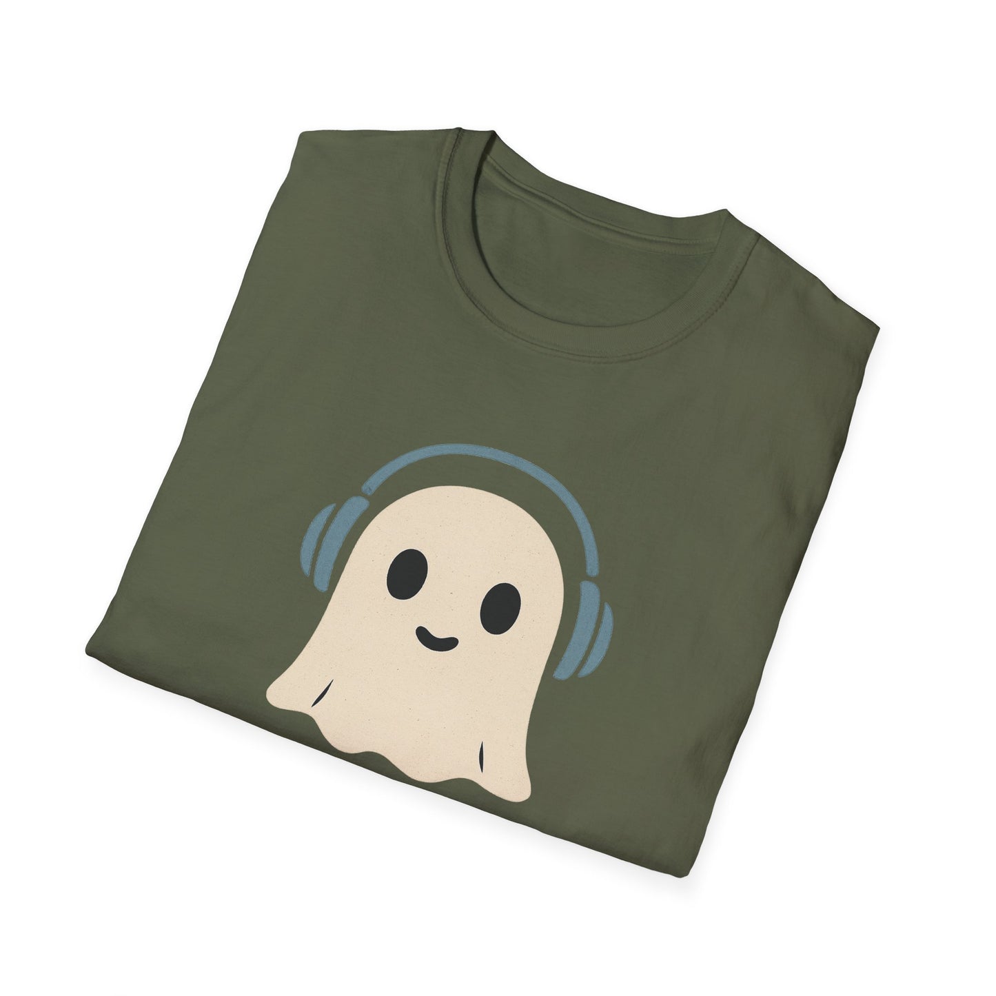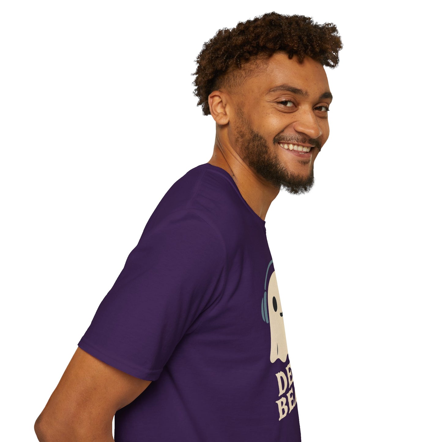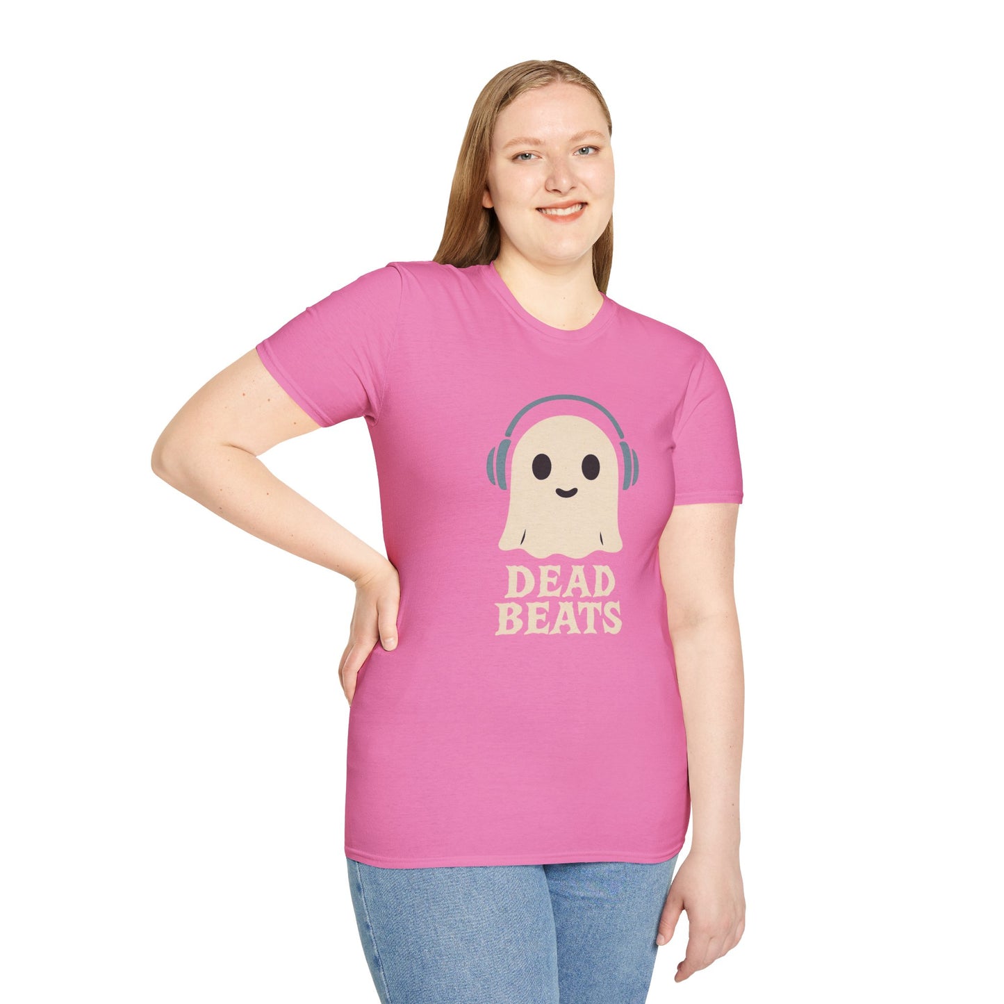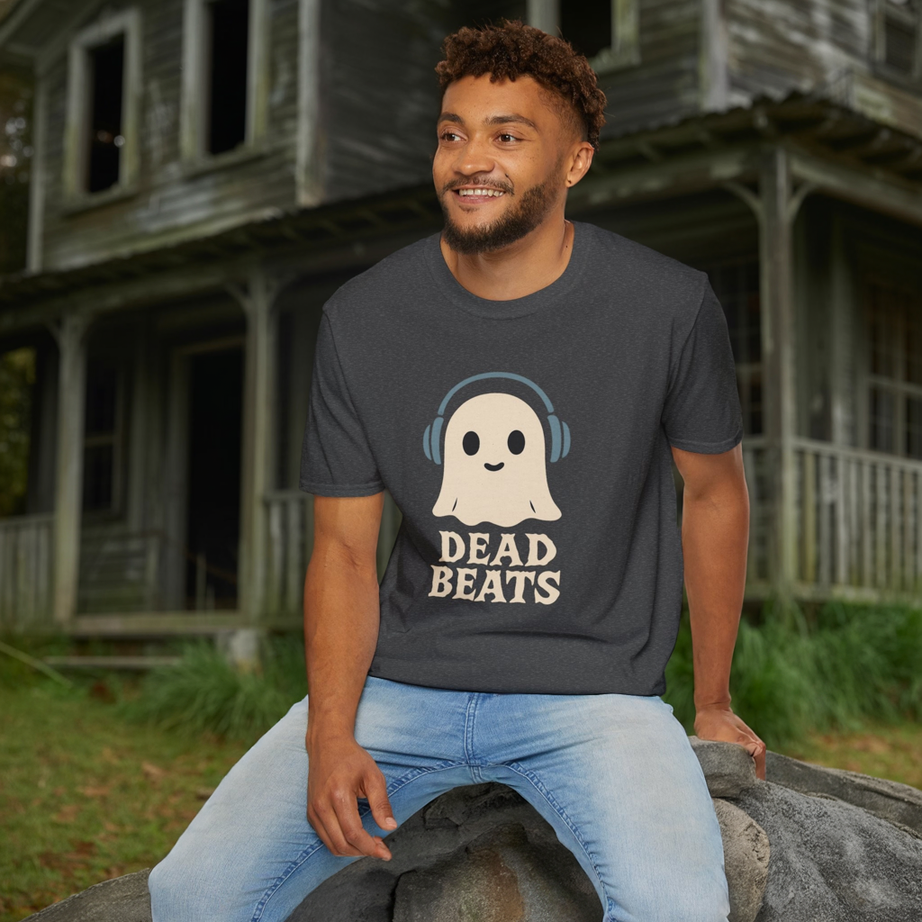 Dead Beats Ghost T-Shirt - Funny Music Halloween Shirt - Cute Ghost with Headphones Tee - Gift for DJs, Musicians and Spooky Season