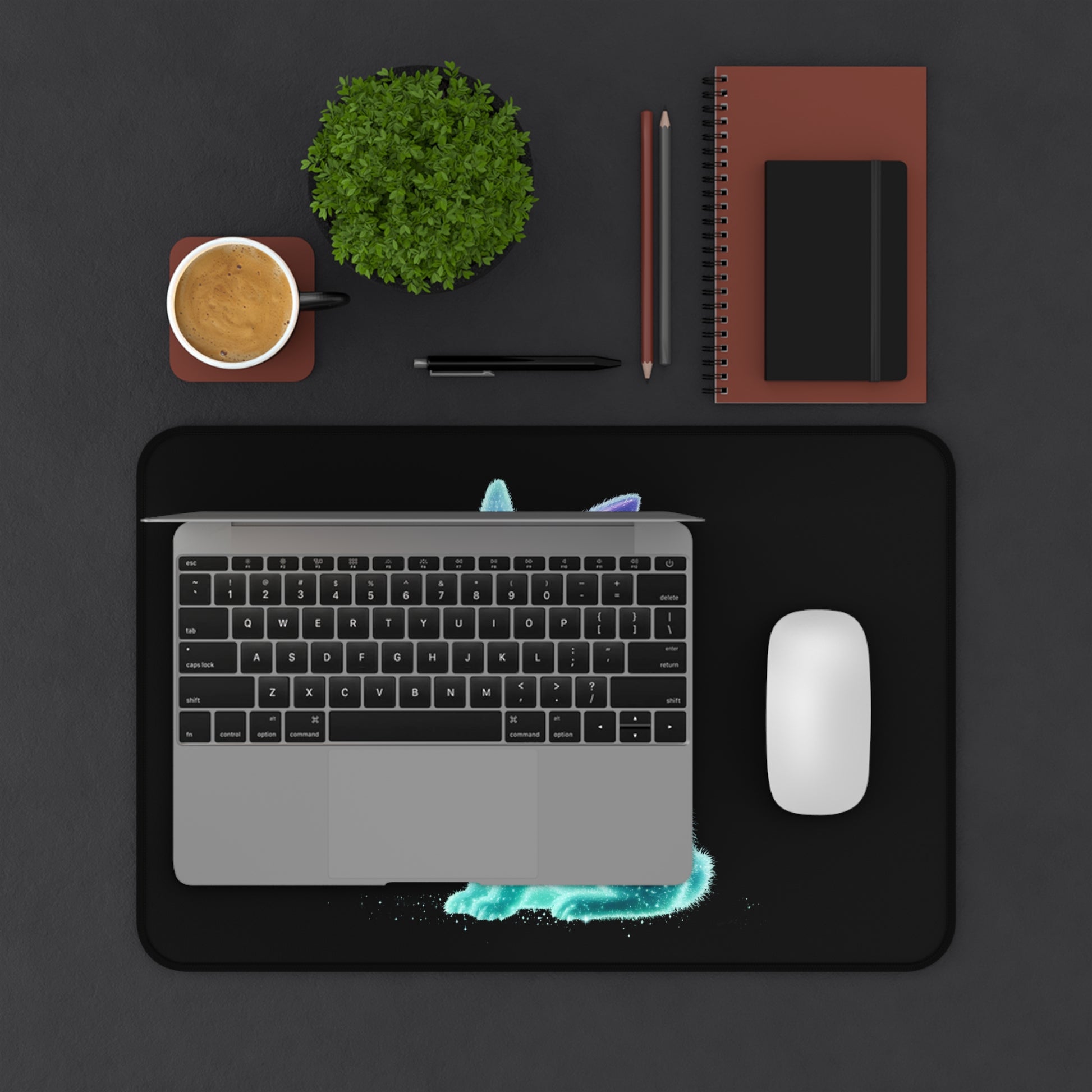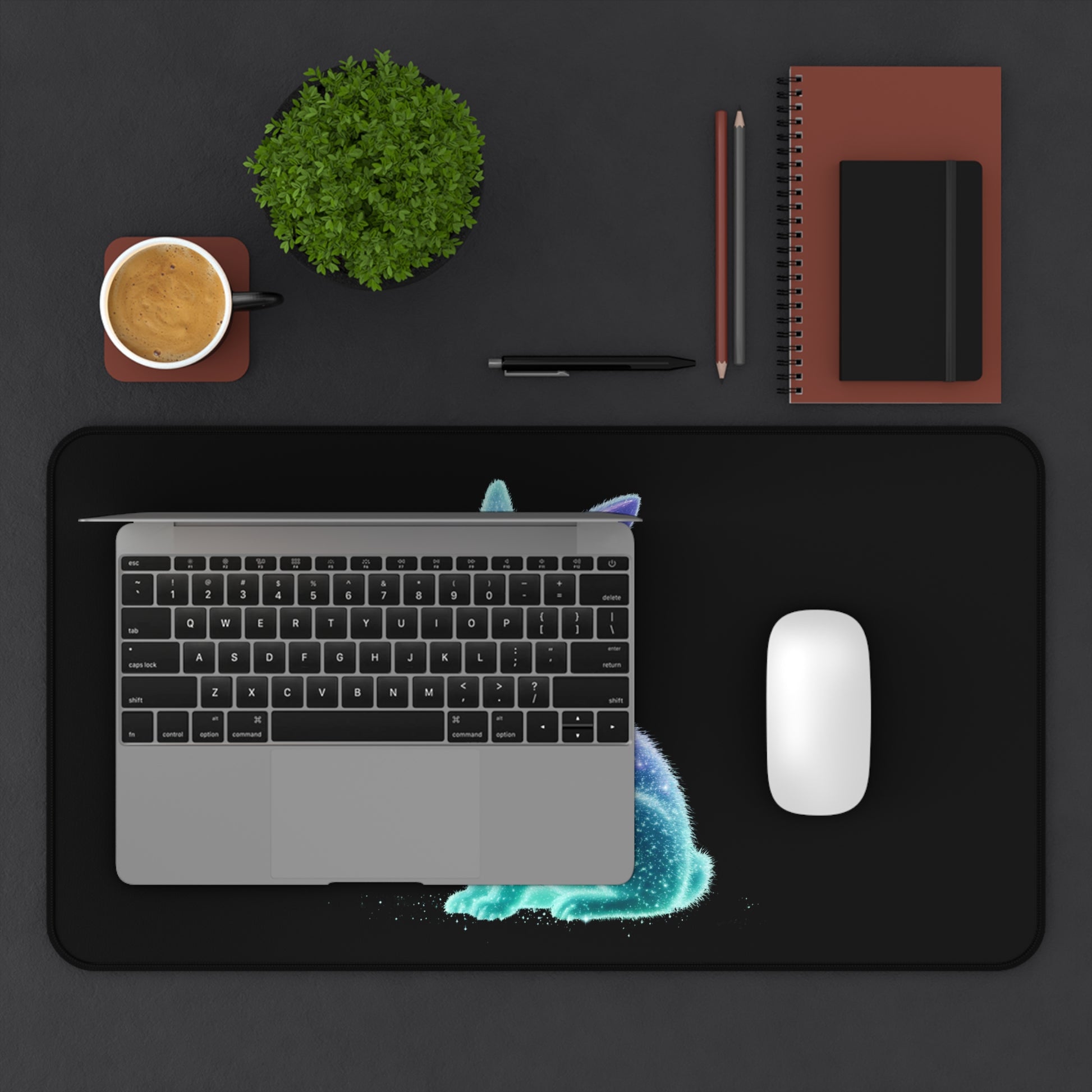 A fun desk mat with a bioluminescent Easter Bunny design, perfect for adding a touch of whimsy to your workspace. Ideal for those who love unique and playful accessories, relevant for Easter celebrations or bunny lovers.