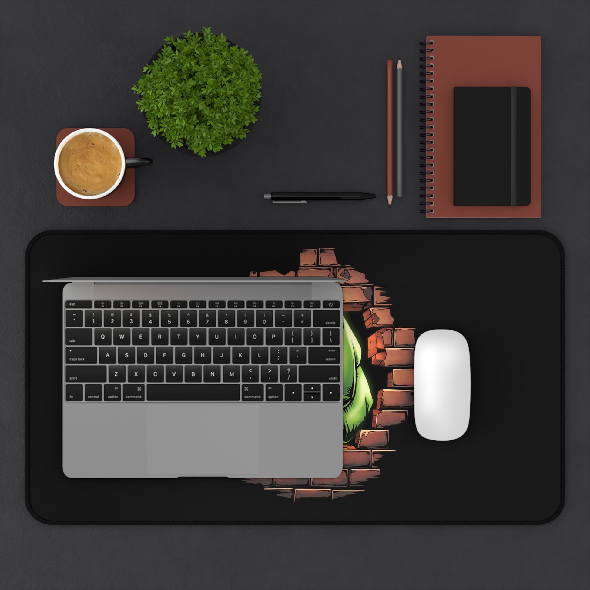 A fun desk mat with the Green Fist smashing through the wall on it, brings a playful and energetic vibe to your workspace. Perfect for gamers, comic book fans, and anyone who wants to add a pop of color to their desk. Ideal for home offices, back-to-school season, and birthdays.