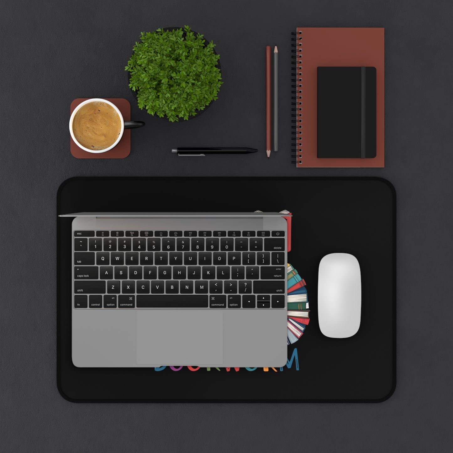 This fun desk mat featuring a worm made out of books with the word 'Bookworm' is perfect for book lovers and avid readers. The vibrant colors and durable material make it a great addition to any desk space, providing a supportive surface for writing, typing, or crafting. It is relevant for book-related holidays like World Book Day or as a thoughtful gift for bibliophiles.