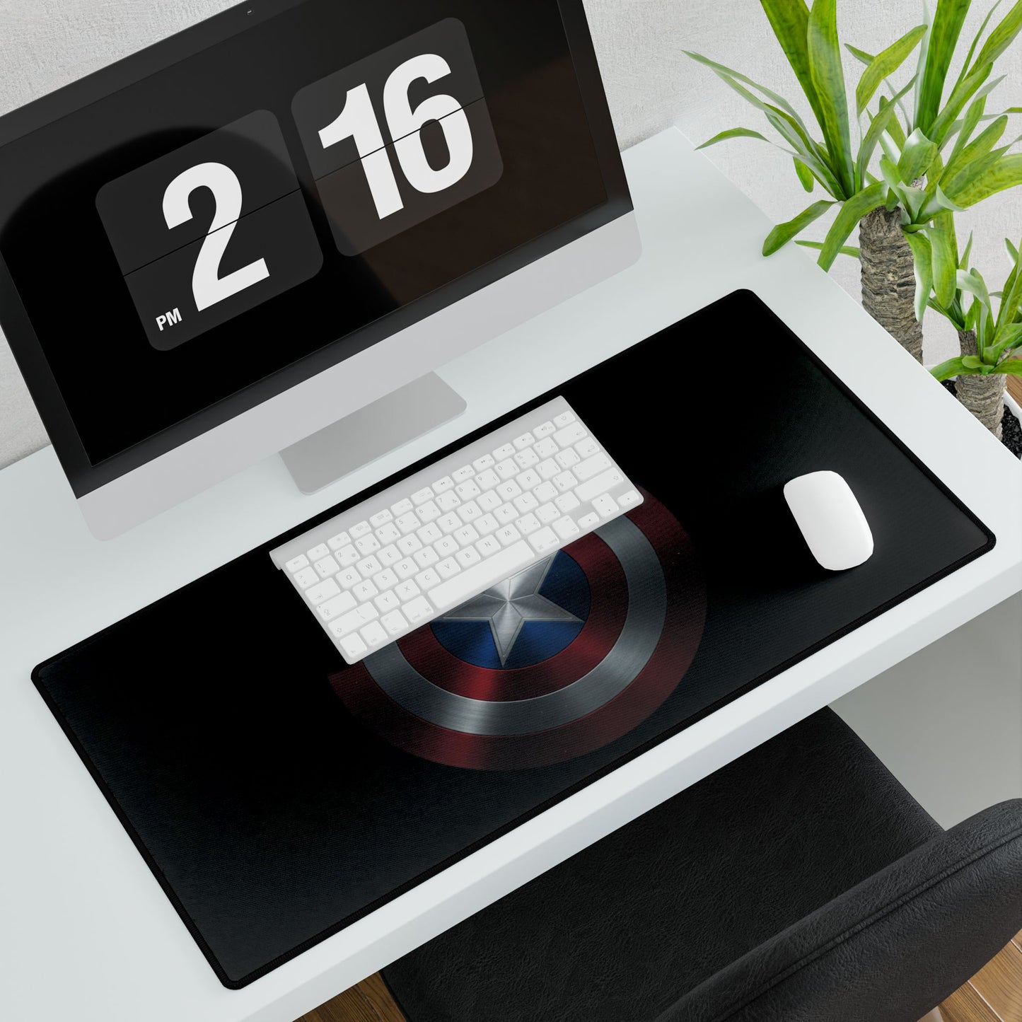 A fun mouse pad/desk mat featuring a vibrant design of the Shield. This mouse pad provides smooth and effortless gliding for your mouse, making it perfect for gamers and office workers alike. It adds a touch of fun to your desk and is a great gift for Shield fans.