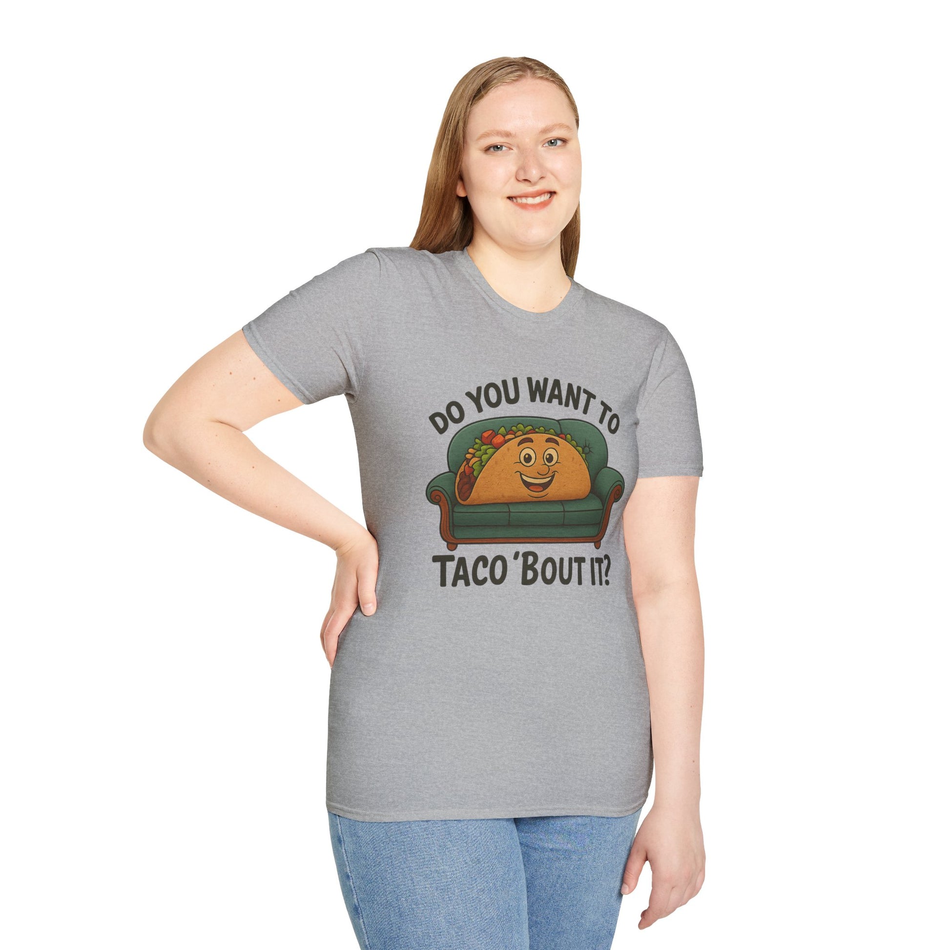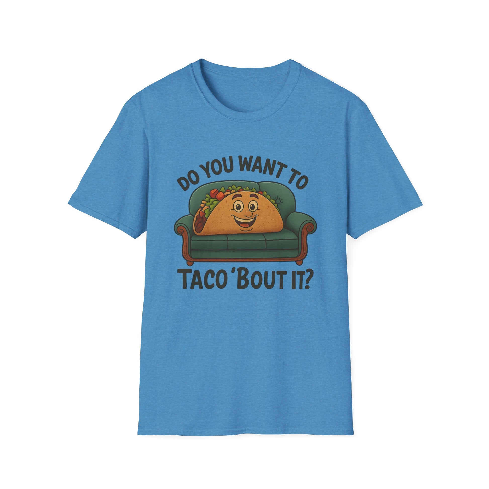 Brighten your wardrobe (and your day) with this hilarious + huggable “Do You Want to Taco ’Bout It?” tee! A cozy, all‑day cotton shirt perfect for taco lovers, foodie fanatics, and pun enthusiasts alike.