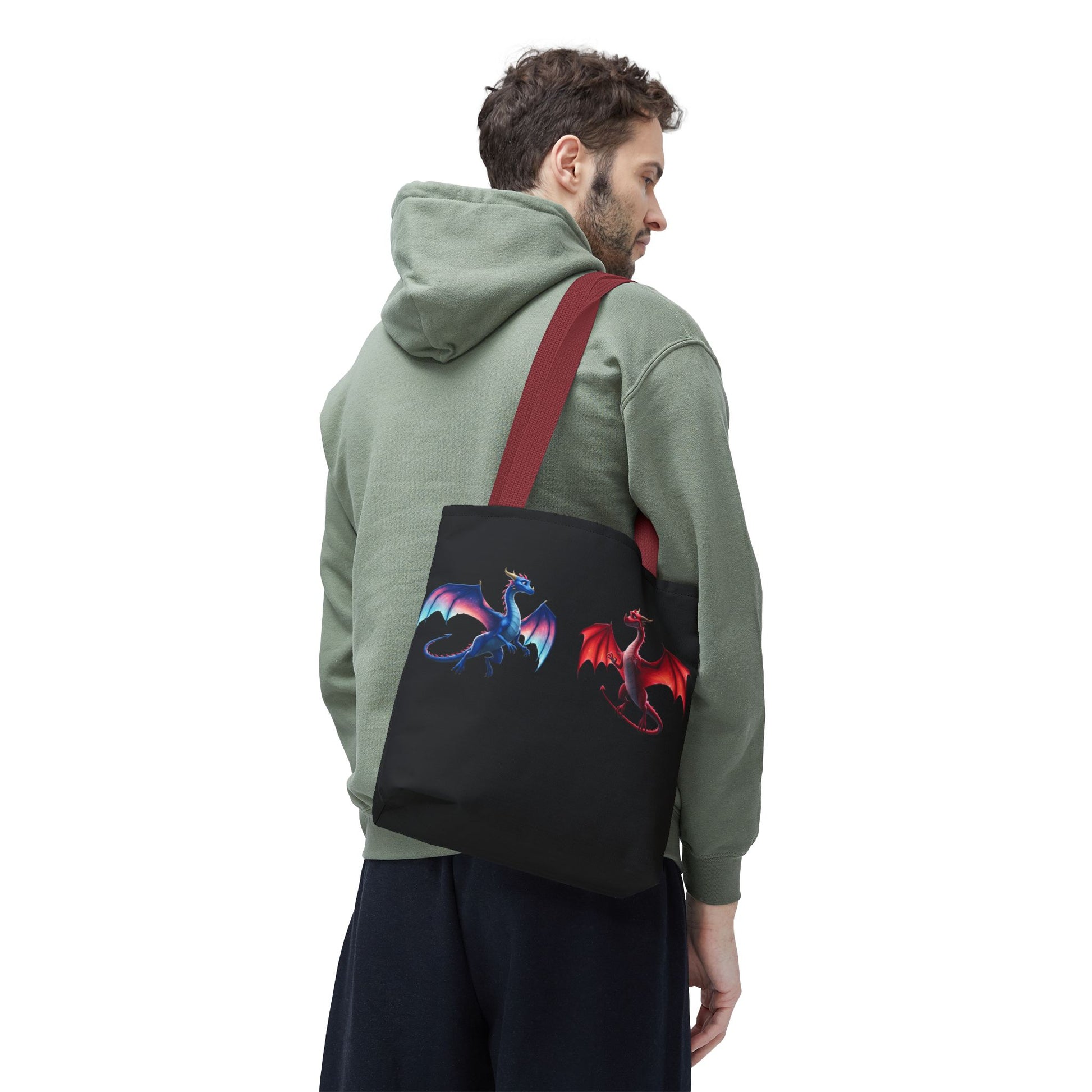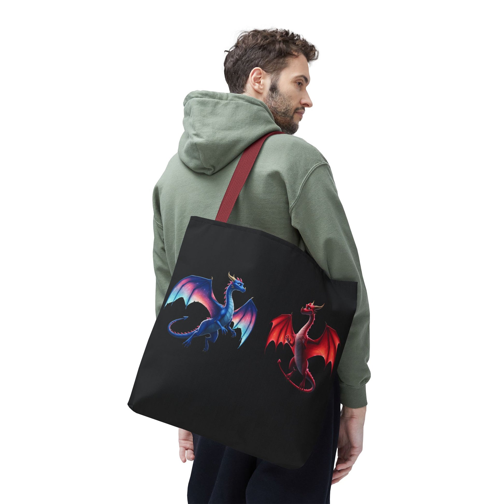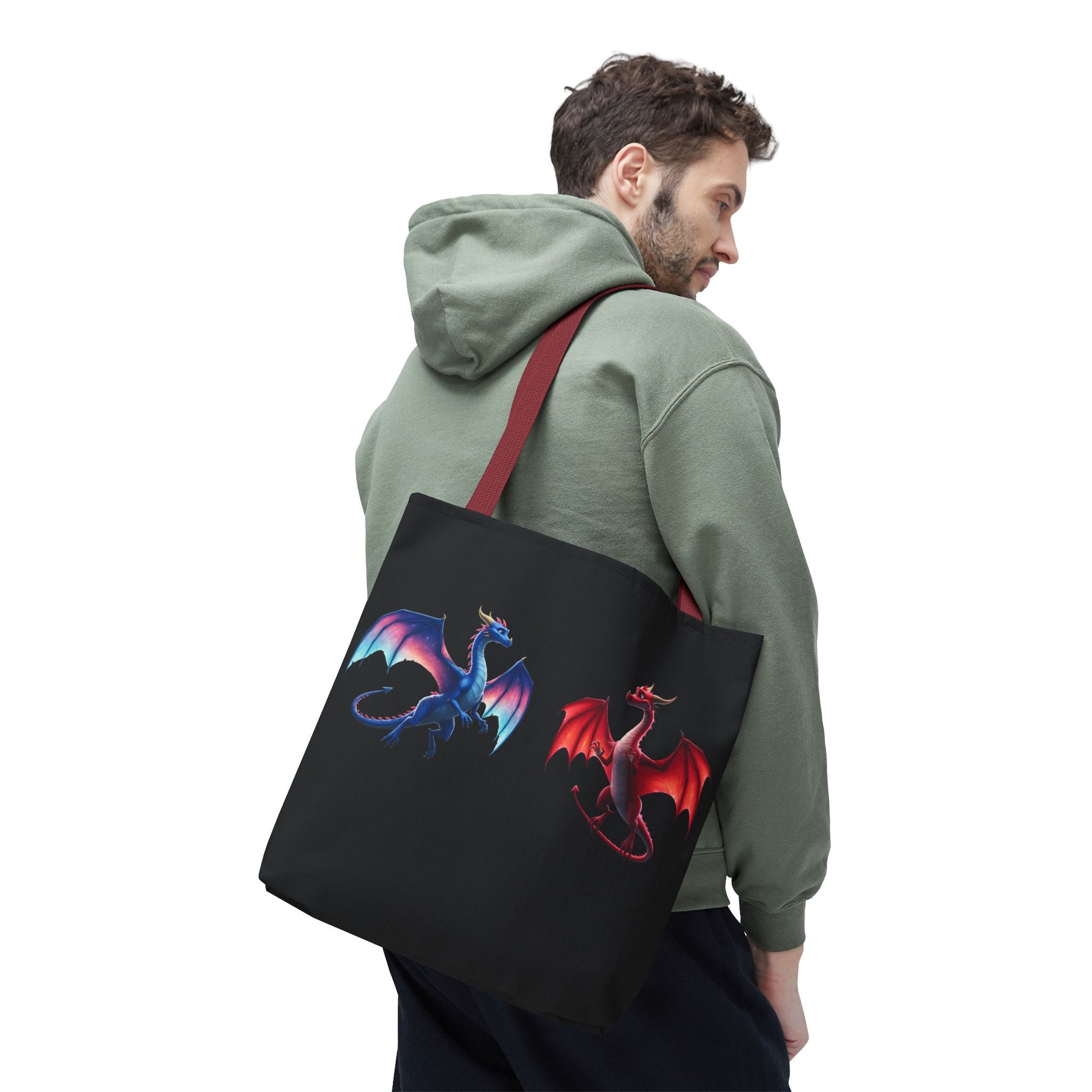 Double-Sided Fantasy Dragon Tote Bag - Cute Green & Blue-Red Dragons, Eco Canvas Book Lover Gift, Reusable Shopping Tote