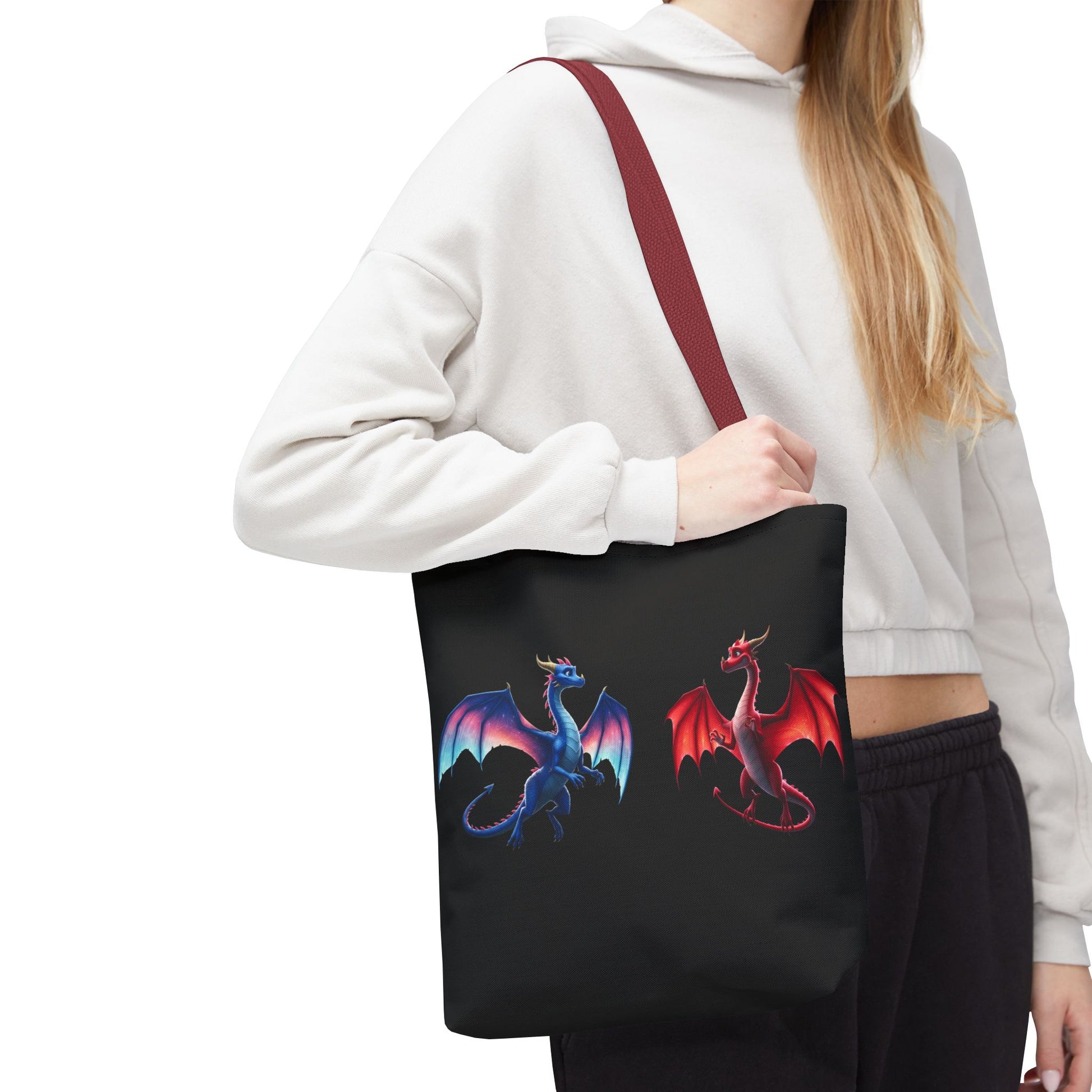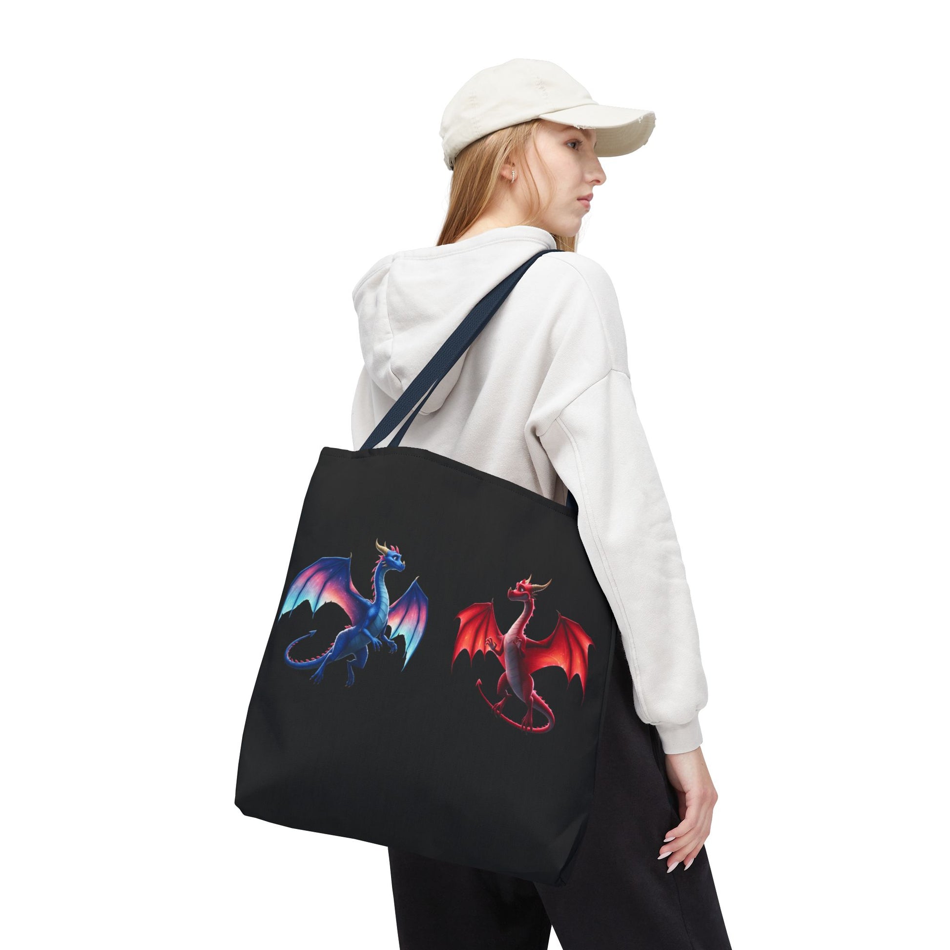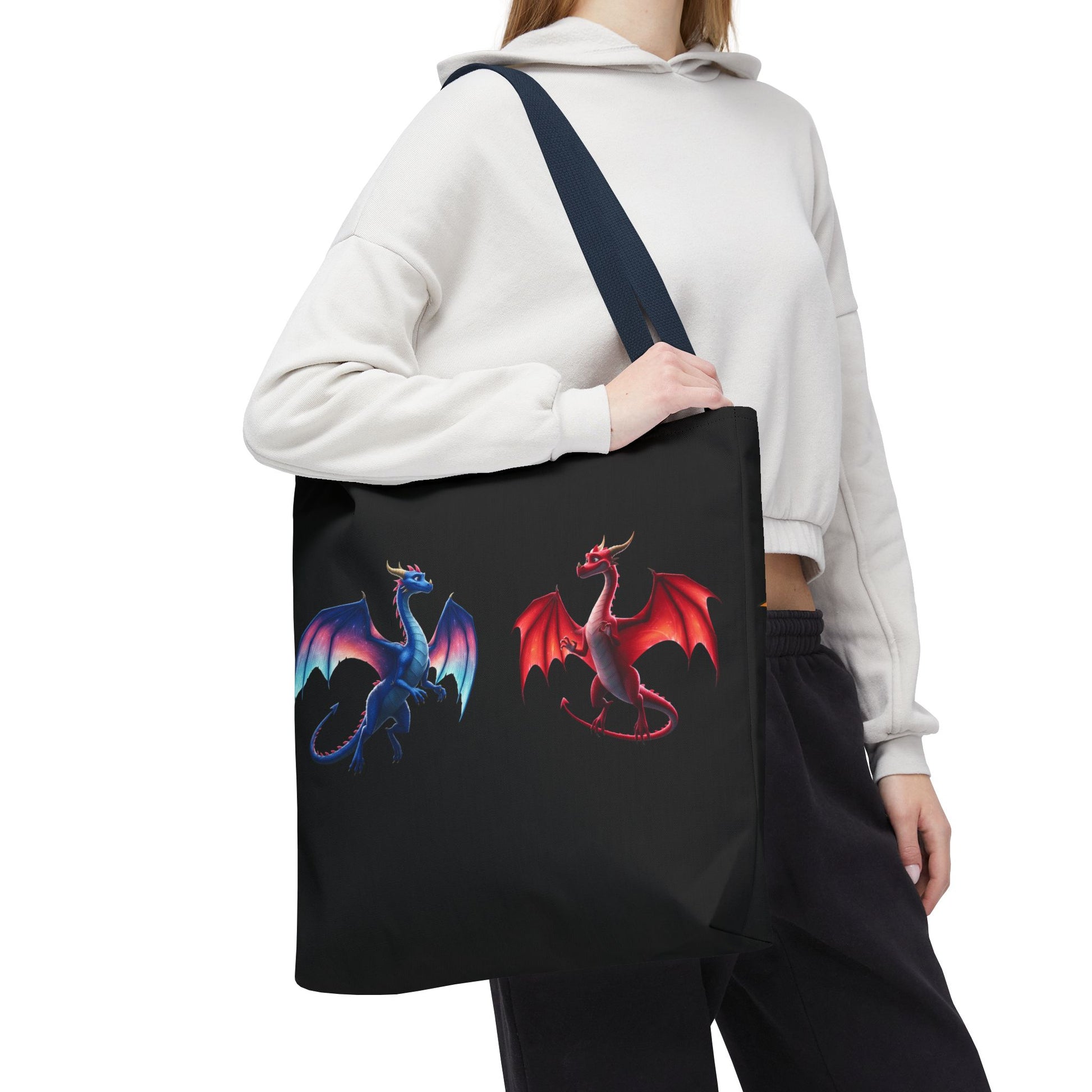 Double-Sided Fantasy Dragon Tote Bag - Cute Green & Blue-Red Dragons, Eco Canvas Book Lover Gift, Reusable Shopping Tote