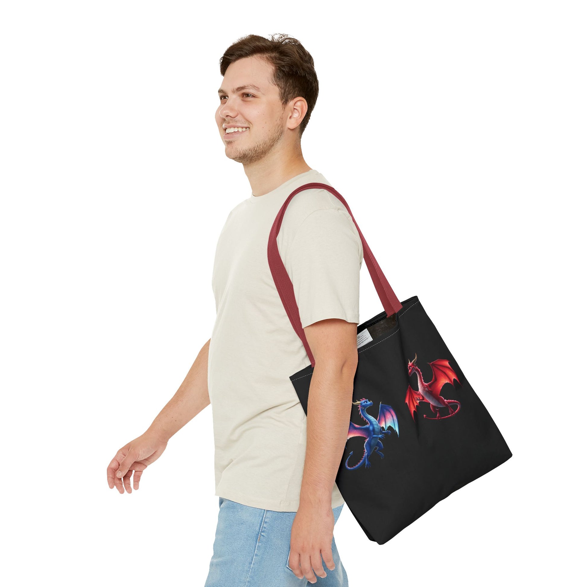 Carry your world with style! This reusable, eco-friendly canvas tote features vibrant dragon art on both sides: a cheerful green dragon on one side, and a regal blue & red dragon duo on the other. Perfect for magic lovers, bookworms, and fantasy fans.