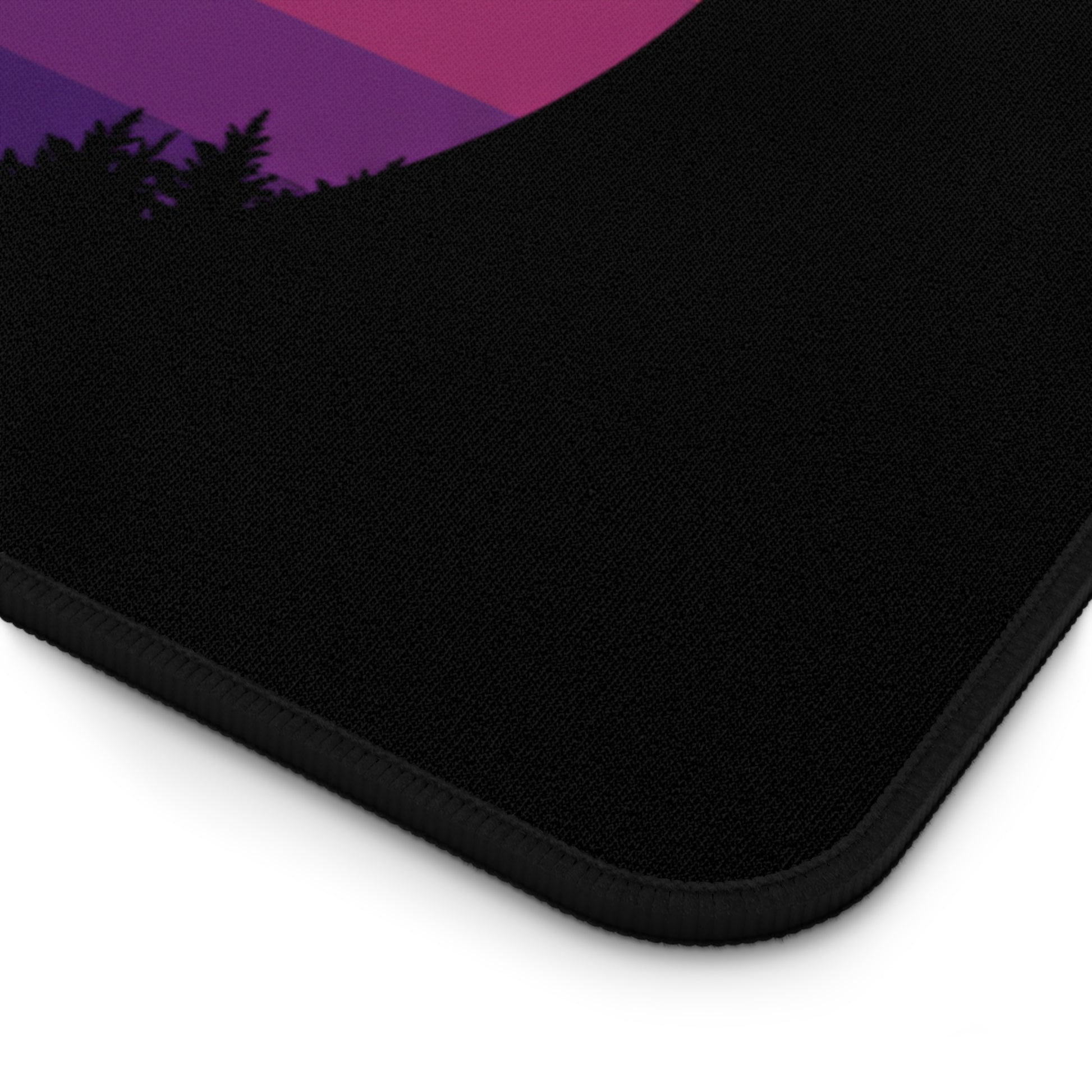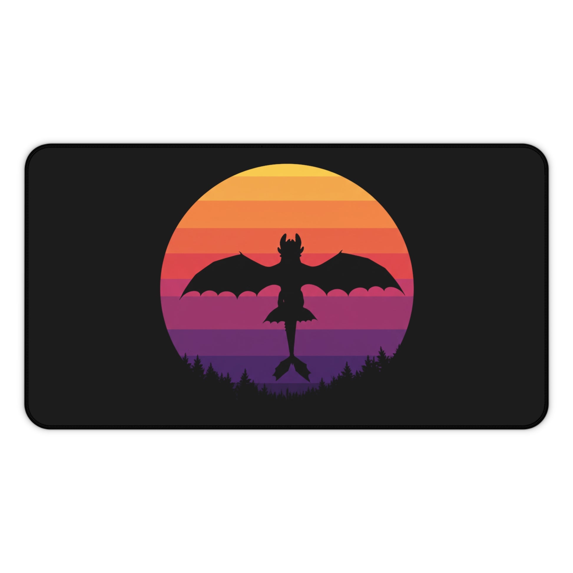 Featuring a striking dragon silhouette flying against a retro sunset gradient, this large gaming mouse pad adds a bold fantasy aesthetic to your desk.