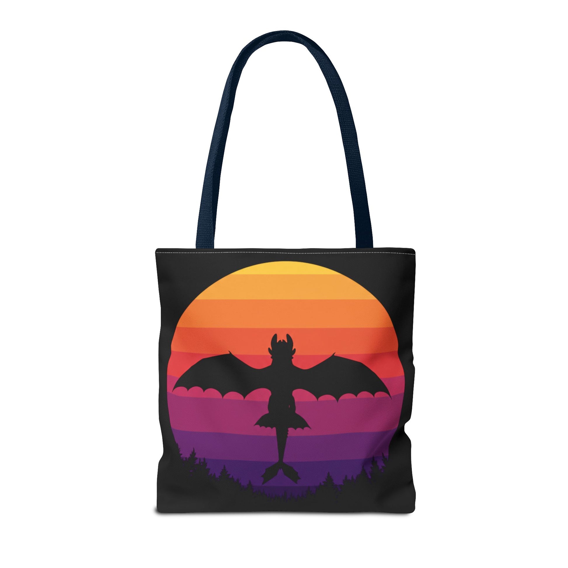 Sunset Dragon Flight Tote Bag, Reusable Eco-Friendly Shoulder Bag With Silhouette Design, Aesthetic Black Tote For Everyday Use And Gifts