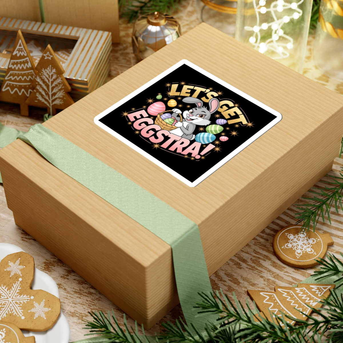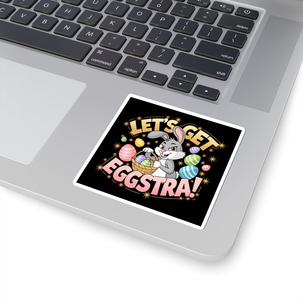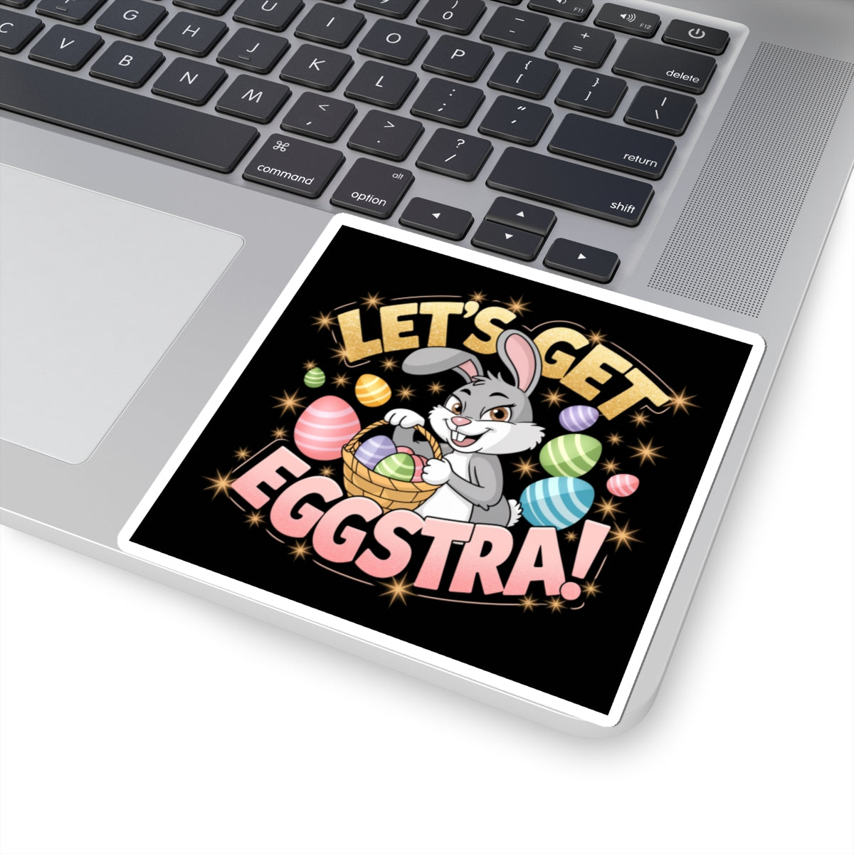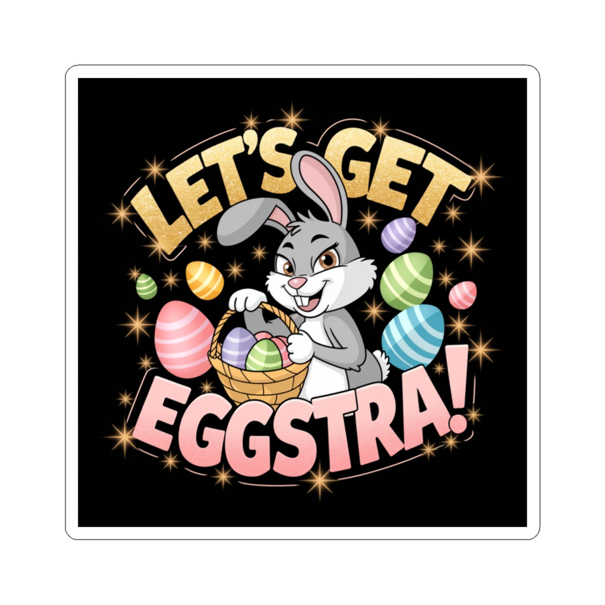 Get ready to hop into the Easter spirit with our "Let's Get Eggstra" sticker! This adorable sticker features a cute bunny with a basket full of colorful Easter eggs, surrounded by sparkling stars. It's the perfect way to add some festive fun to your laptop, water bottle, or any surface that needs a touch of Easter cheer.