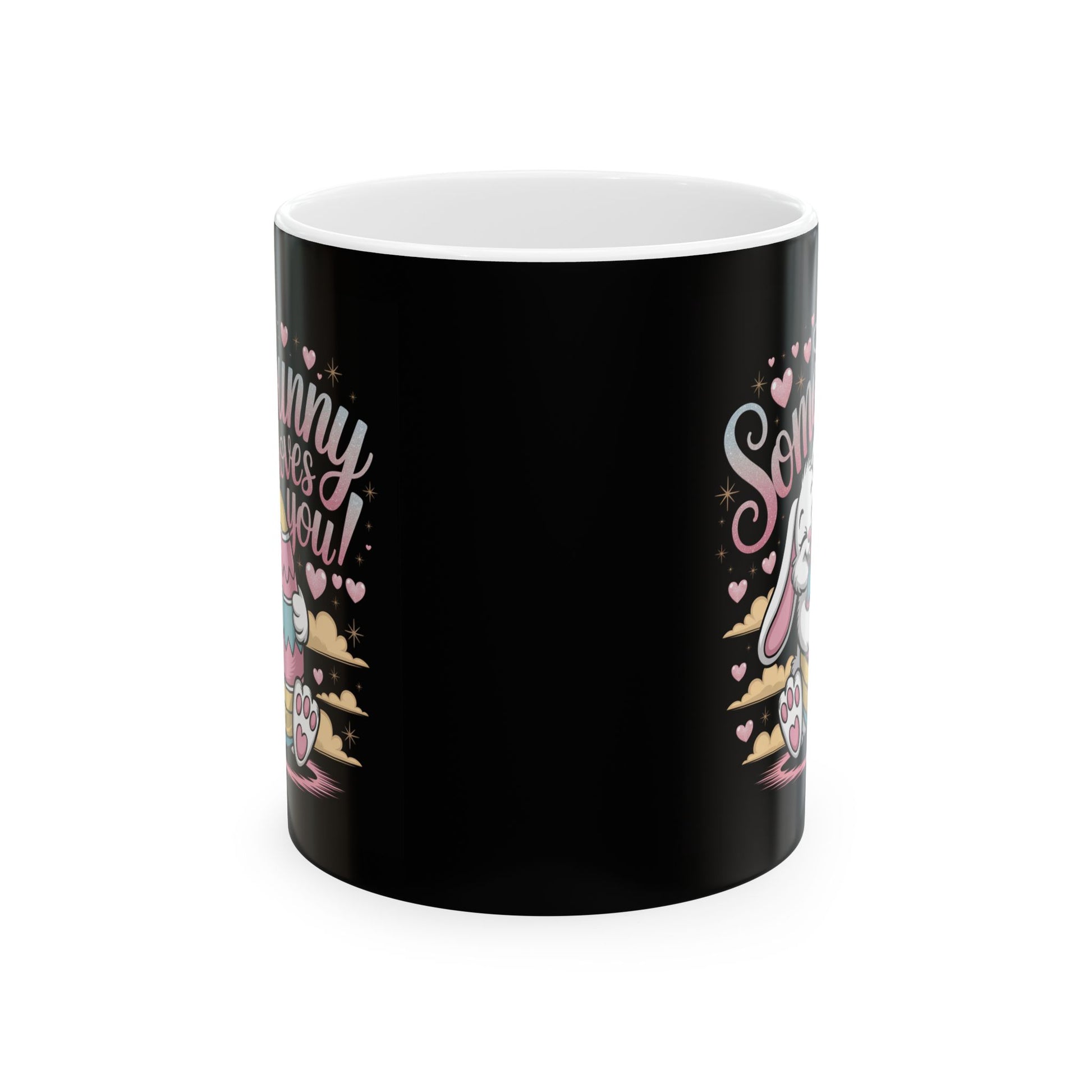 A fun ceramic mug with the Easter Bunny design that states 'Somebunny Loves You'. Perfect for Easter celebrations and a great gift to show love and appreciation to someone special. Suitable for daily use for coffee, tea, or any hot beverage.