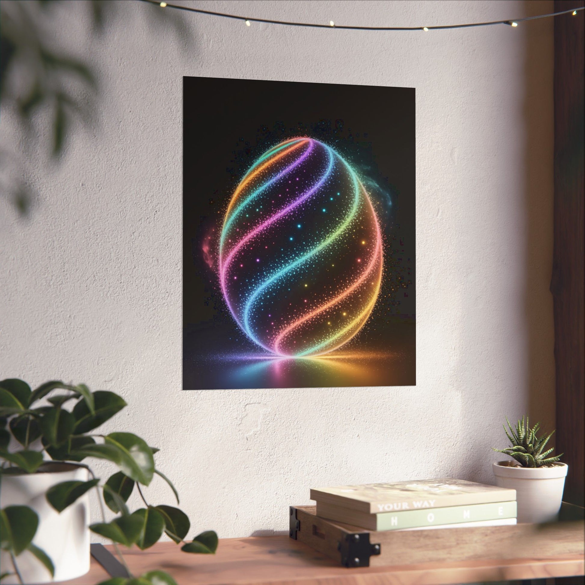 Add a touch of radiant spring magic to your walls with this eye-catching Bioluminescent Easter Egg Poster. This stunning matte poster features a vibrant Easter egg design, brought to life with mesmerizing bioluminescent effects. The colorful display is sure to brighten up any room and add a festive, modern touch to your home decor. Perfect for Easter celebrations or year-round enjoyment!