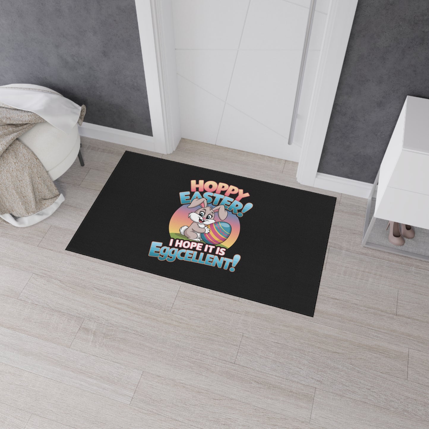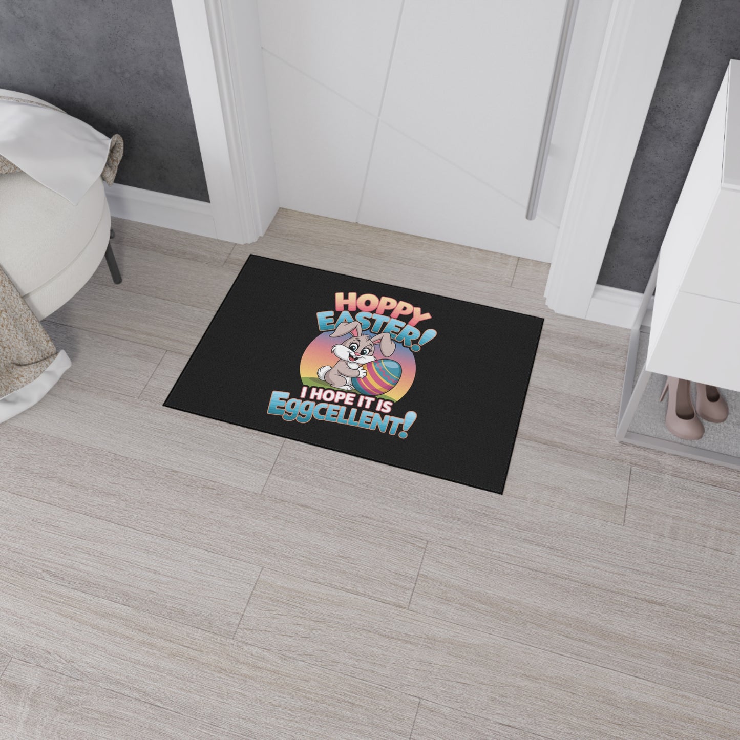 Add a festive touch to your home this Easter with the Hoppy Easter Floor Mat! Featuring a cheerful bunny holding a colorful Easter egg and playful text that reads "I hope it is Eggcellent!", this mat is perfect for welcoming guests and spreading holiday cheer. Made from durable materials, it’s ideal for high-traffic areas while keeping your floors clean and stylish.